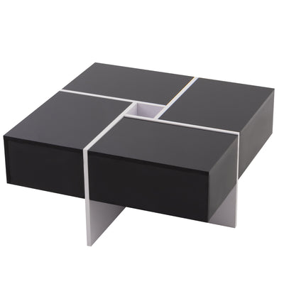 Table basse carrée noir brillant et blanc avec 4 tiroirs 70x70x35cm SUBSTRATE