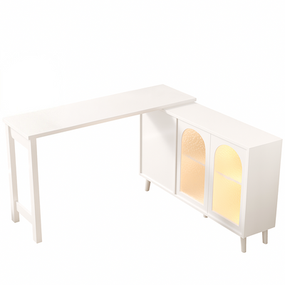 Bureau rétratable blanc 360° avec armoire vitrine acrylique et éclairage LED TOPAZFACET