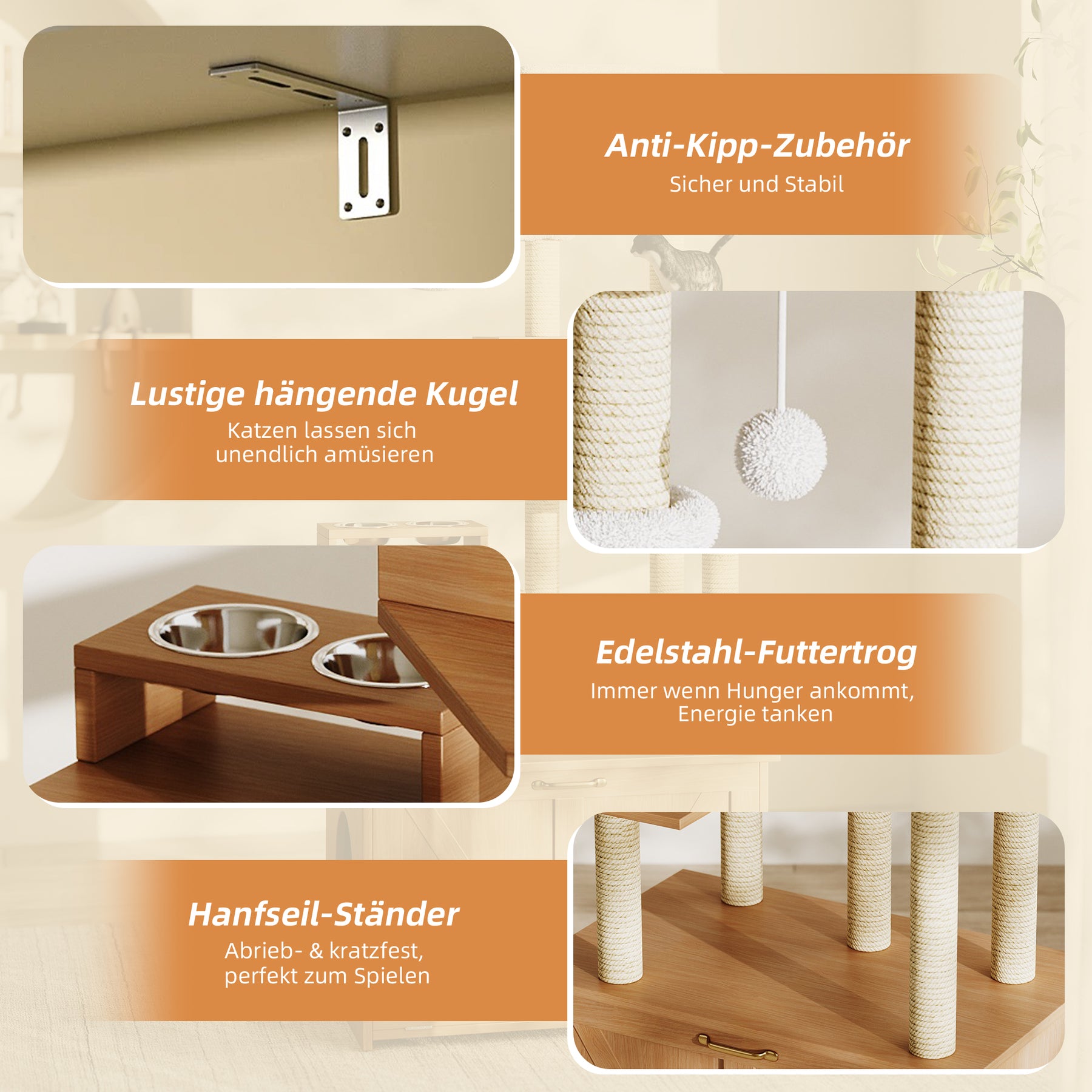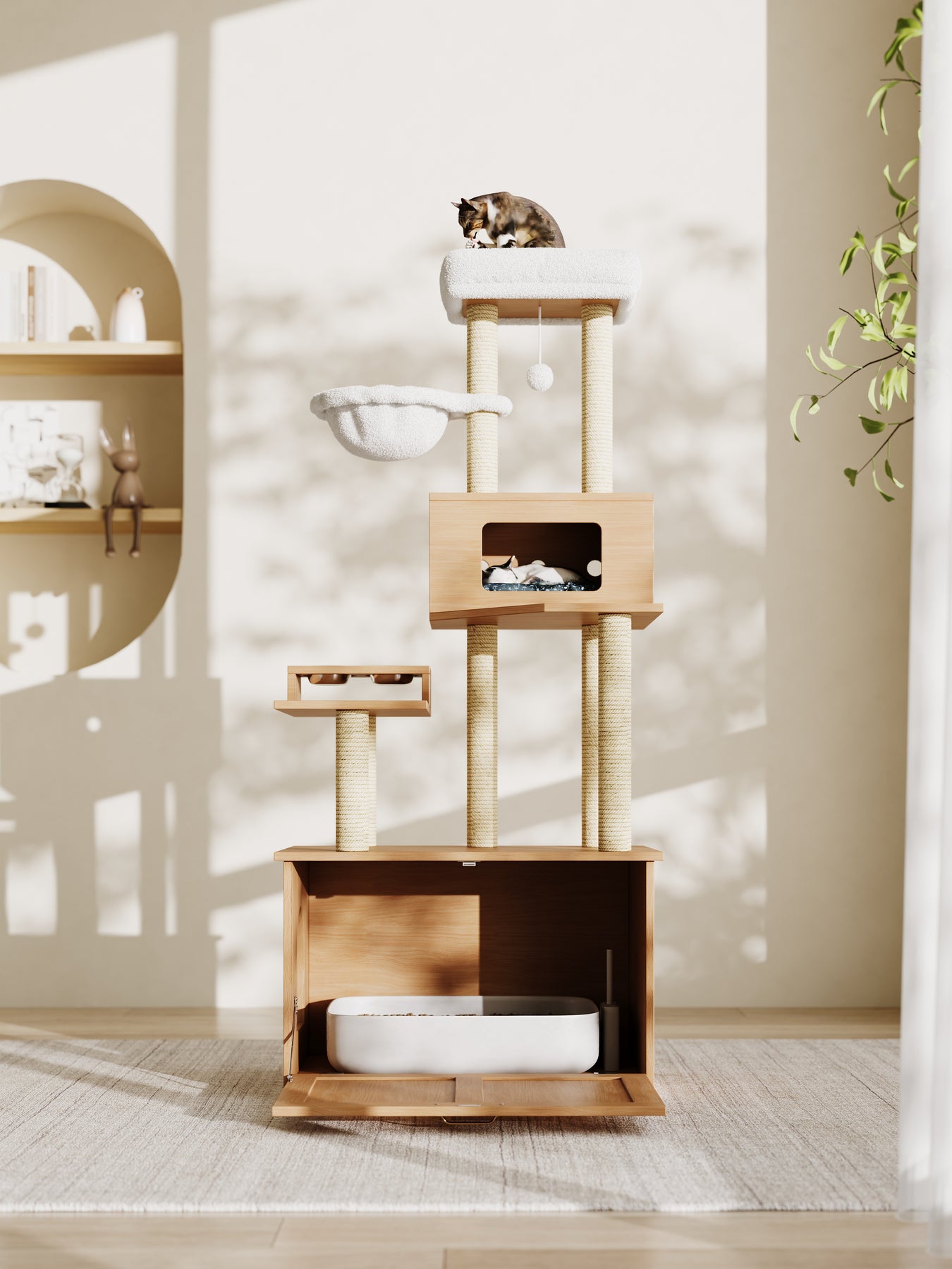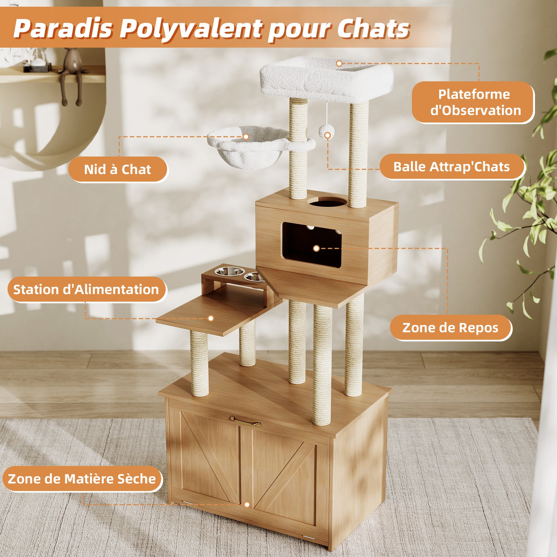 Avec cet arbre à chat multifonction, vous apportez confort, sécurité et style à votre chat… et à votre maison !