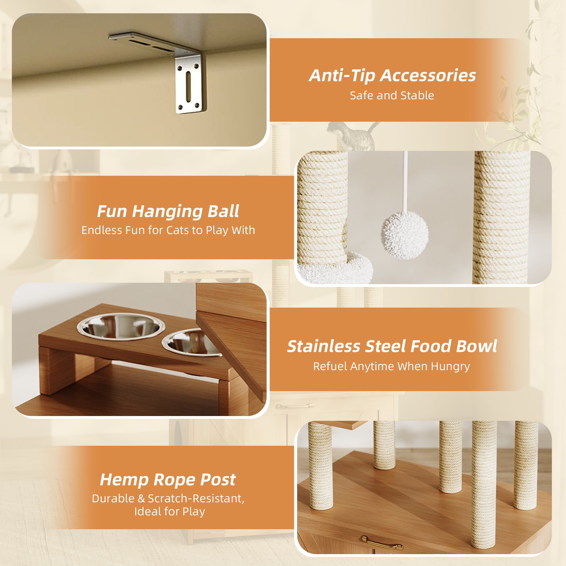 • Zone de repas pratique et élégante : La gamelle en acier inoxydable incluse est amovible et facile à nettoyer, garantissant à votre chat un espace repas sain et toujours net.