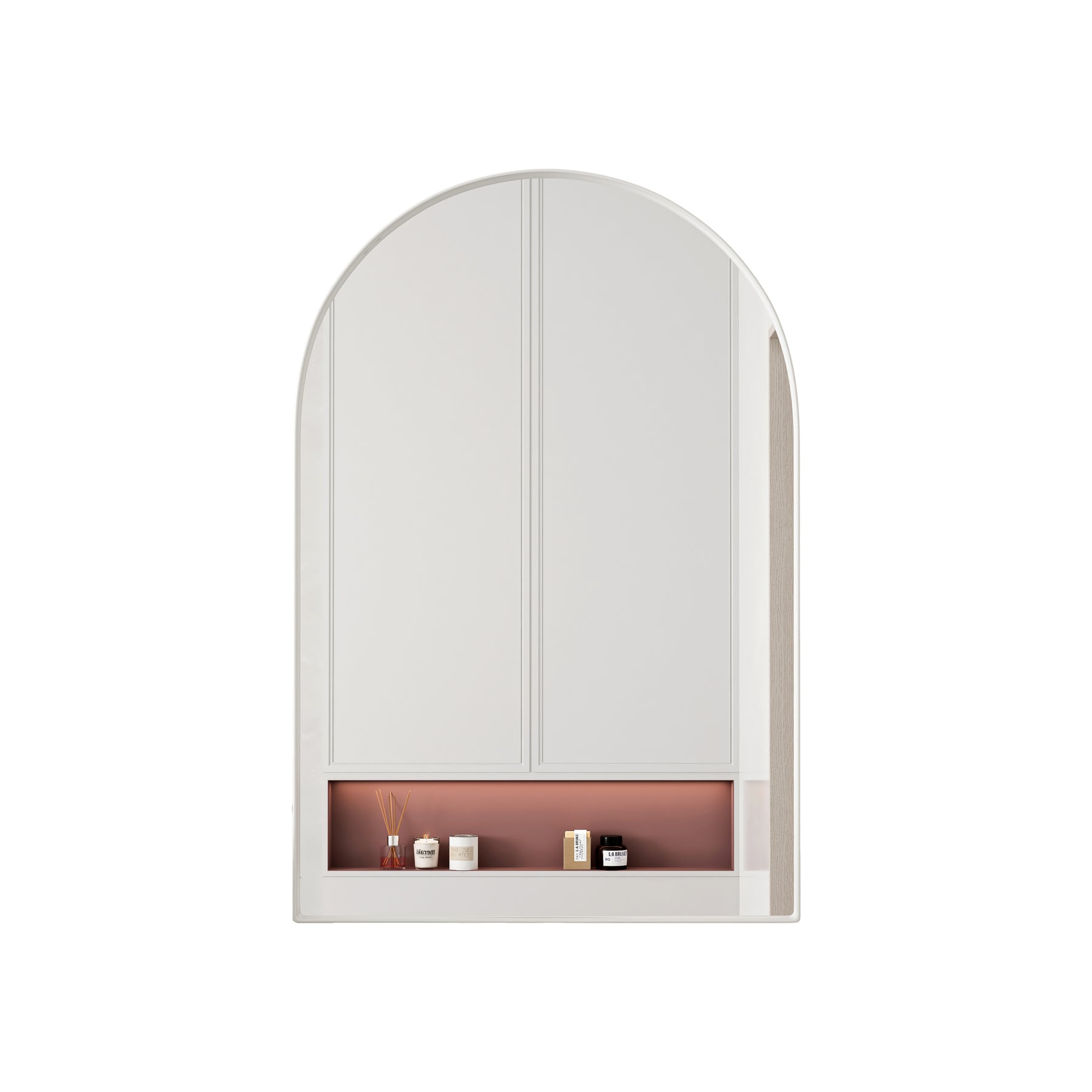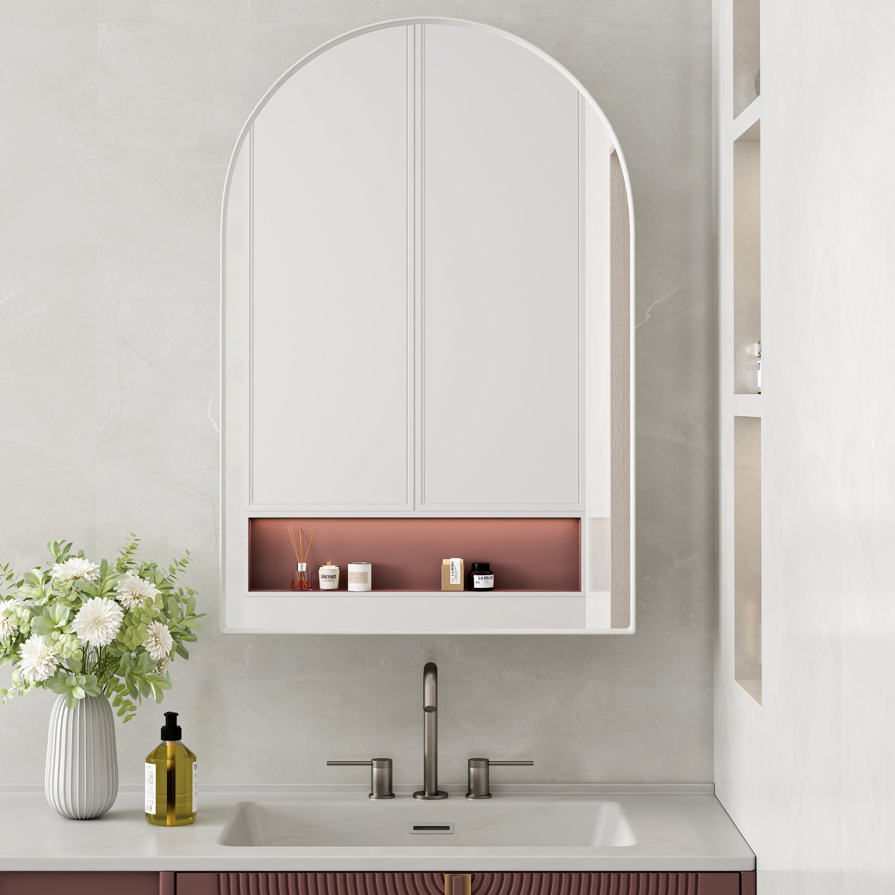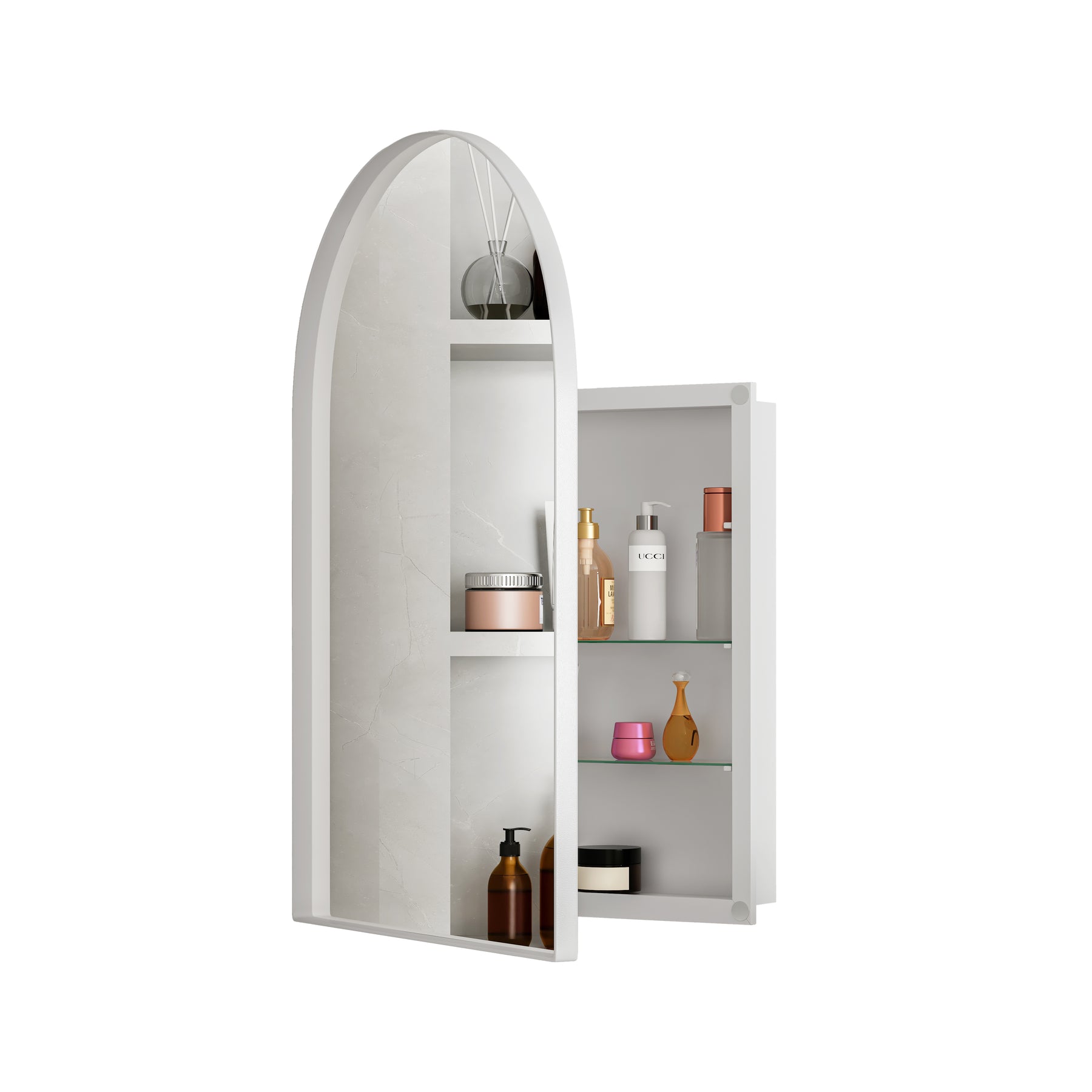 Armoire de toilette blanche avec miroir arqué, rangement mural ou encastré 91x61cm