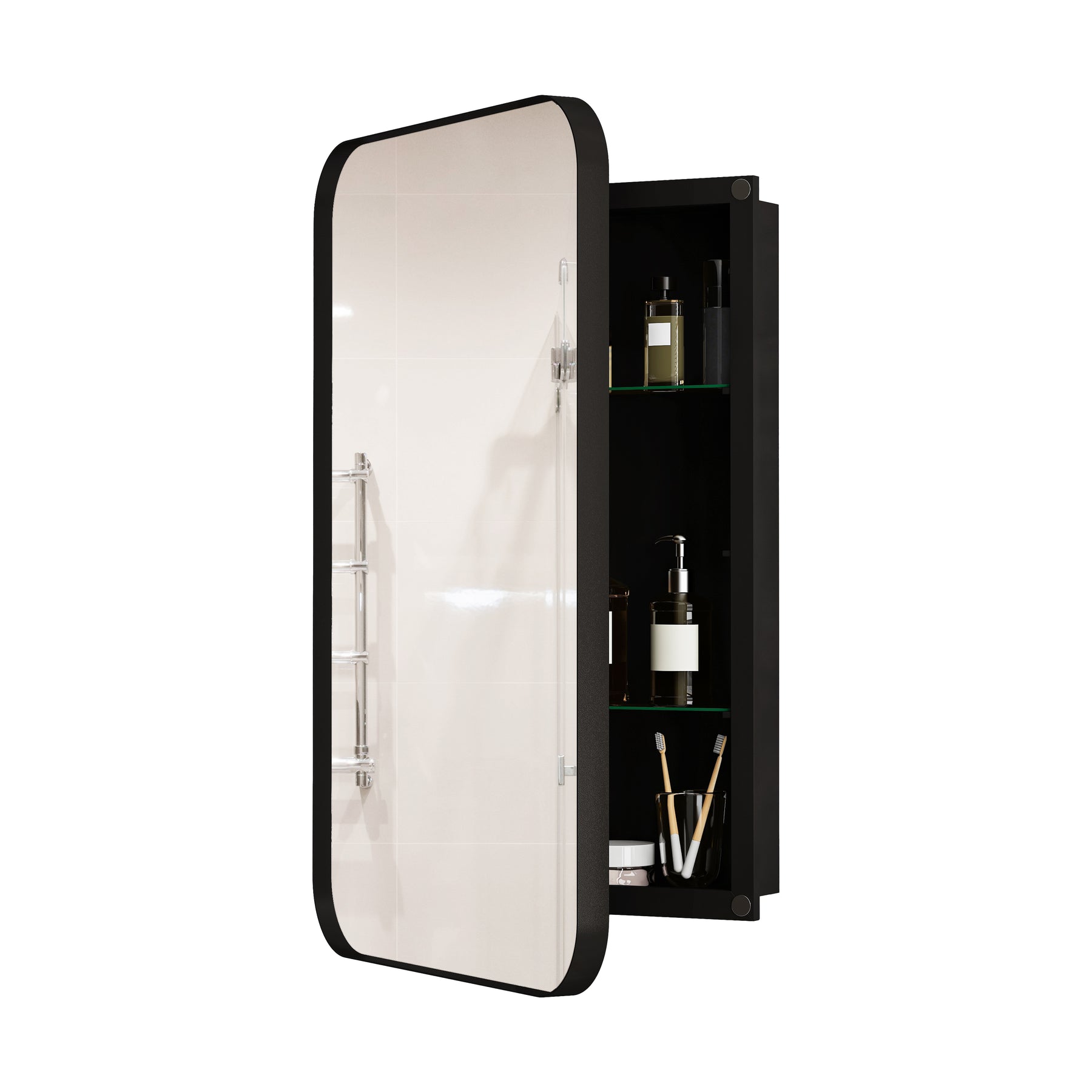 Armoire de toilette rectangulaire avec miroir, cadre noire, mural ou encastré 76x51cm