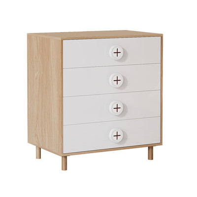 Commode 4 tiroirs bicolore blanc effet bois poignées décoratives PROCUTICL