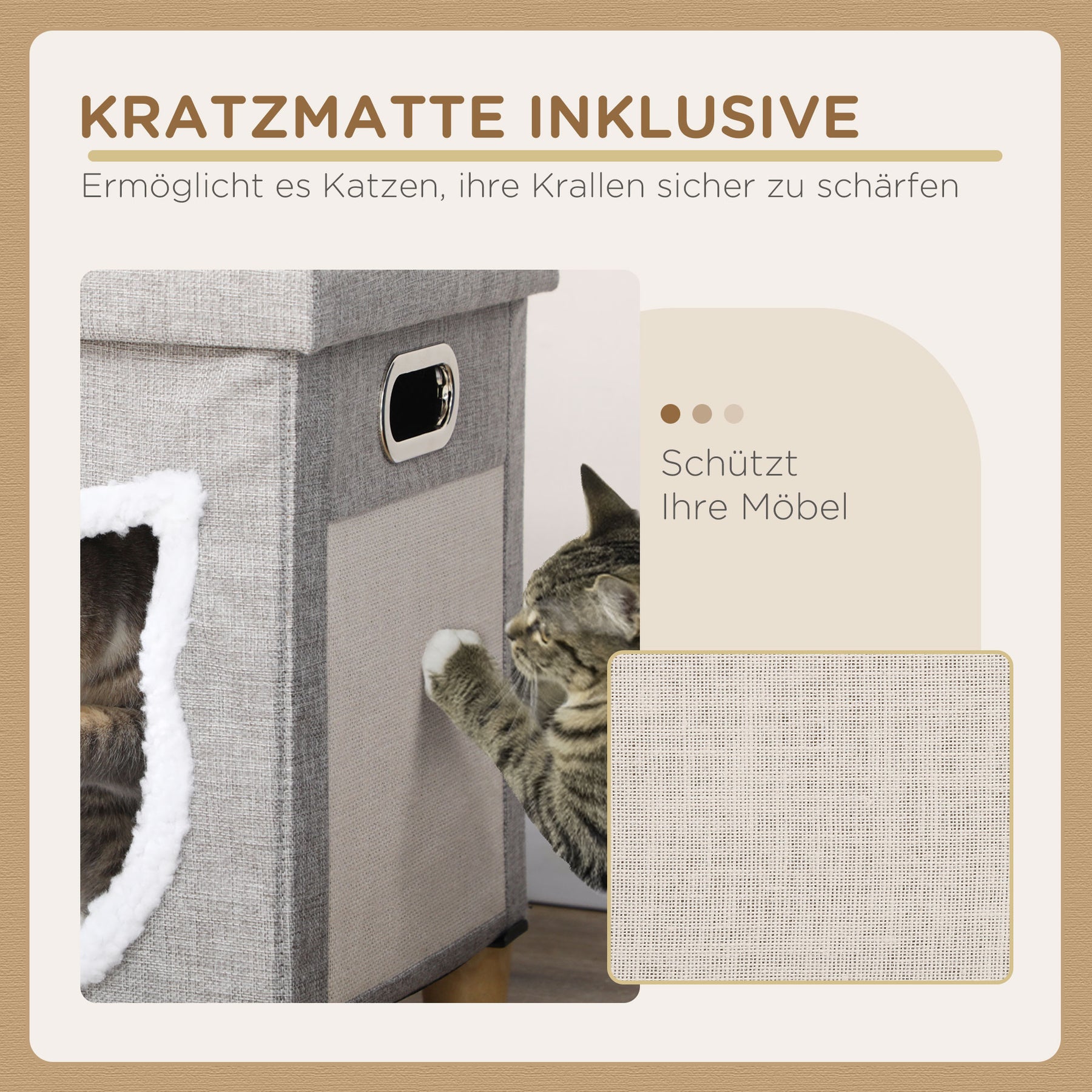 Ottomane gris maison pour chat avec coussin, tapis à griffer, balle de jeu, jusqu’à 5kg,  35,5x35,5x42,5cm