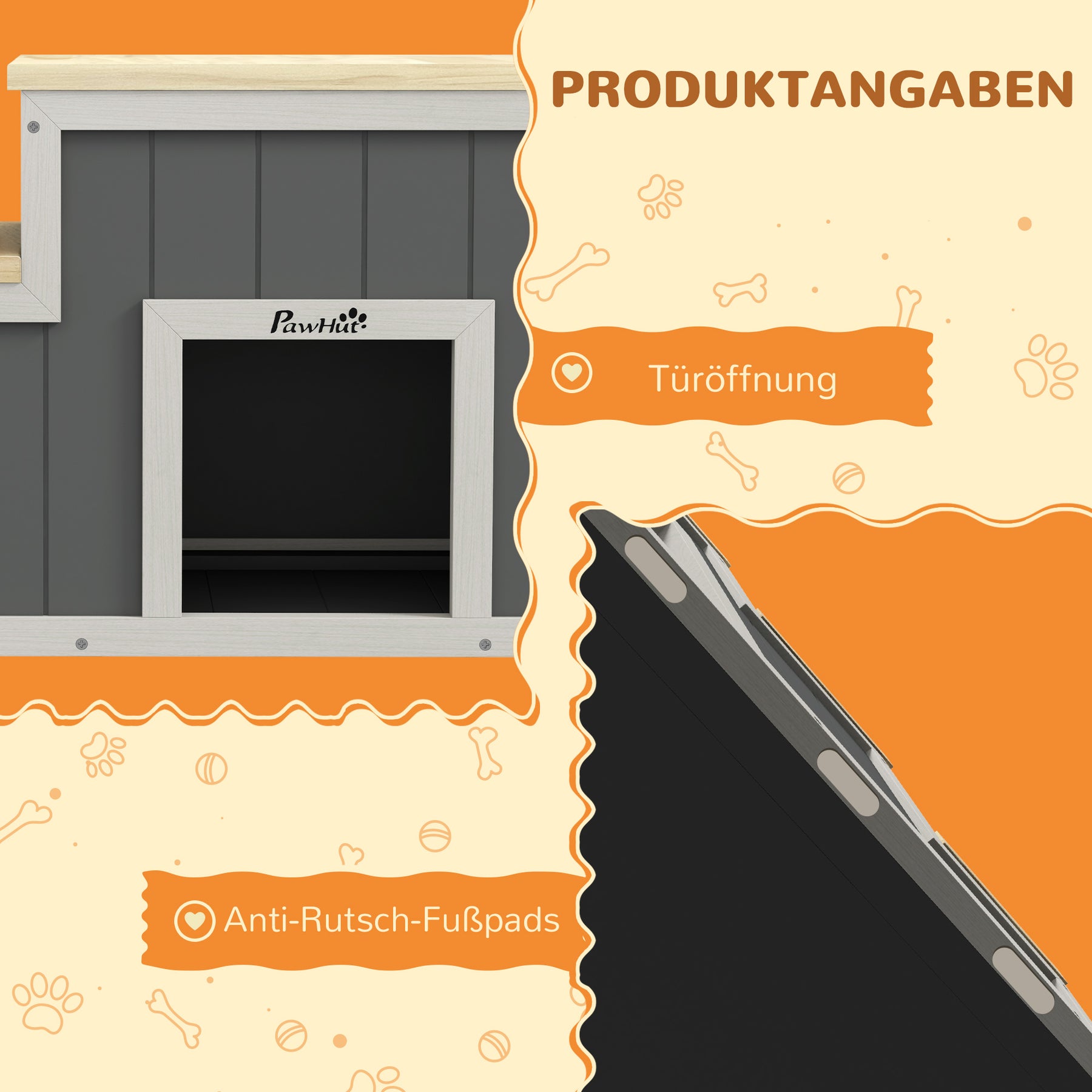 Rampe 3 marches et niche 2-en-1 bois naturel, jusqu'à 30kg, 79x38,5x45cm