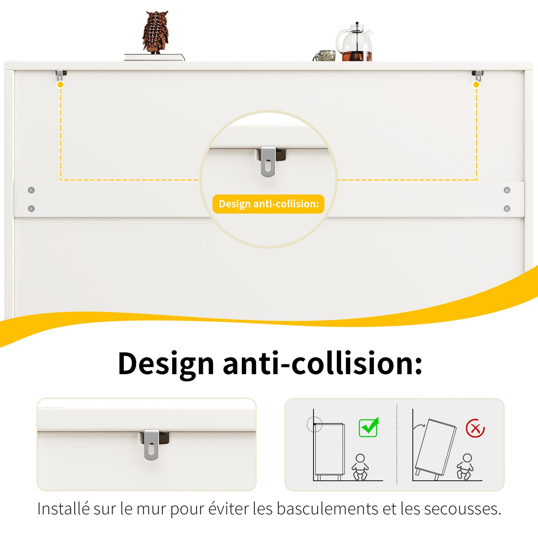 - Sécurité renforcée avec système anti-basculement : Fixation murale solide pour éviter tout risque de chute, idéale pour les familles avec enfants ou animaux domestiques.