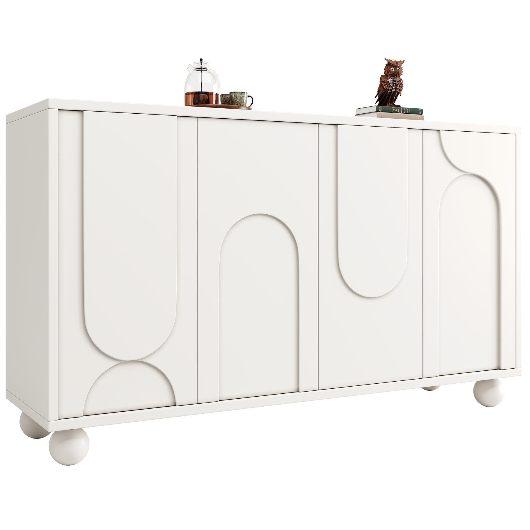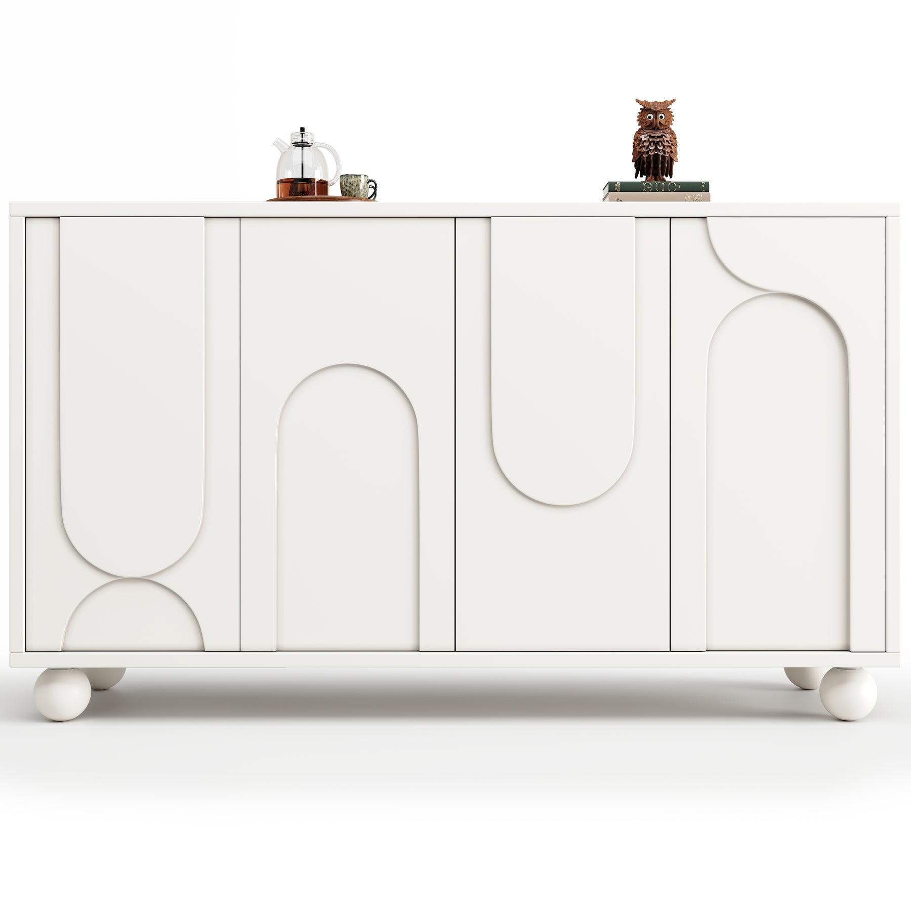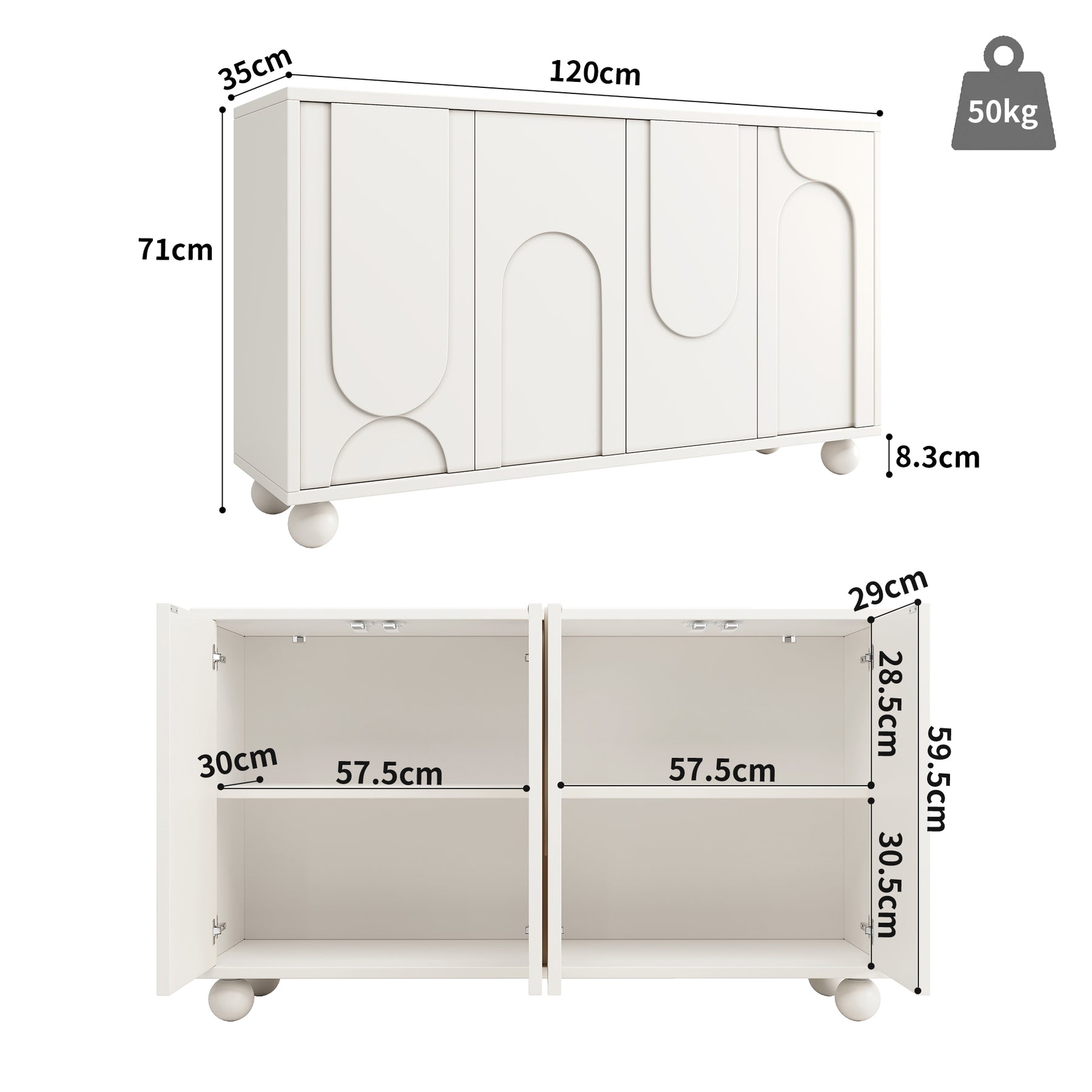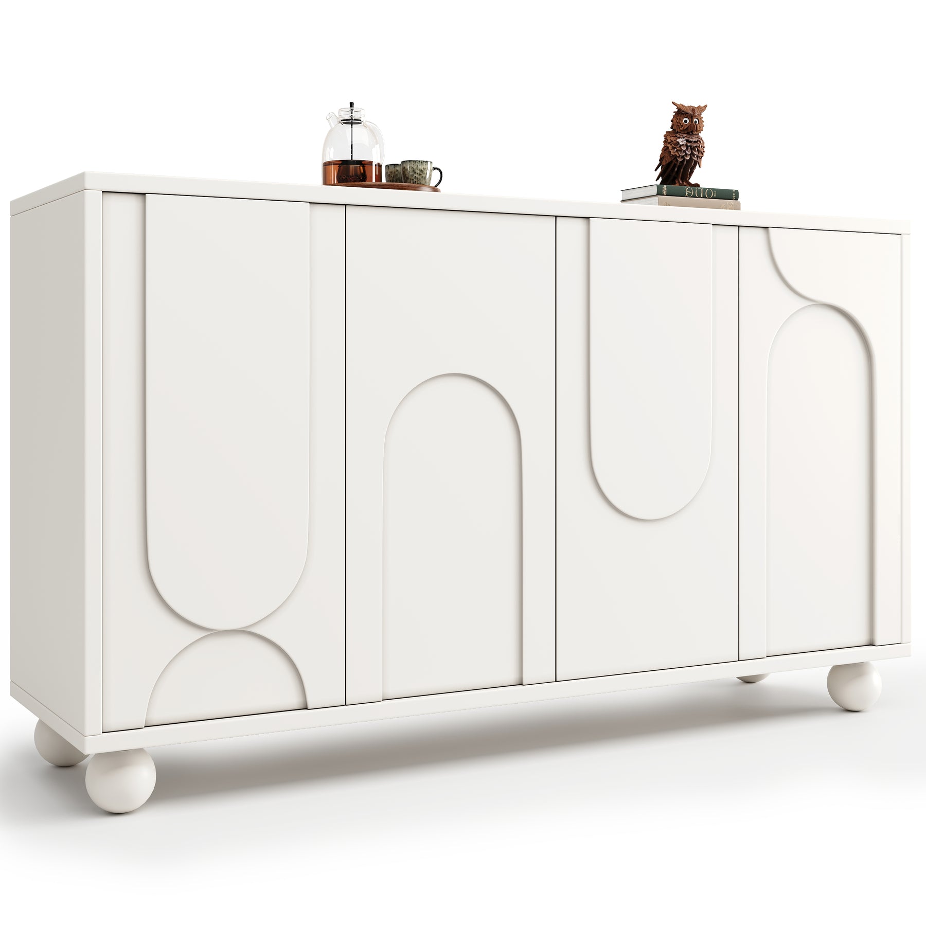 - Design moderne et finitions soignées : Portes crème à motif unique, pieds en pin massif et fermeture douce pour un style contemporain et une utilisation silencieuse.