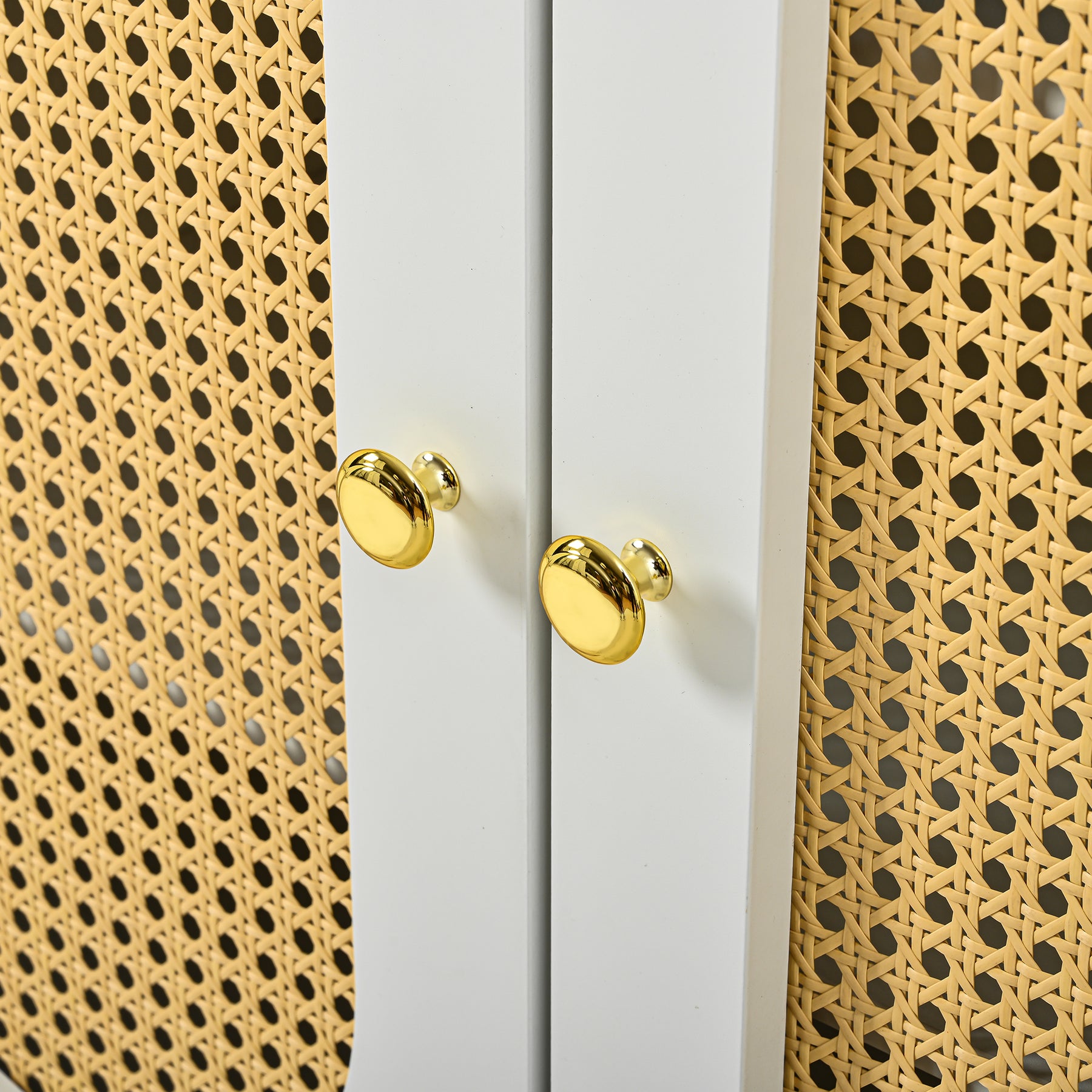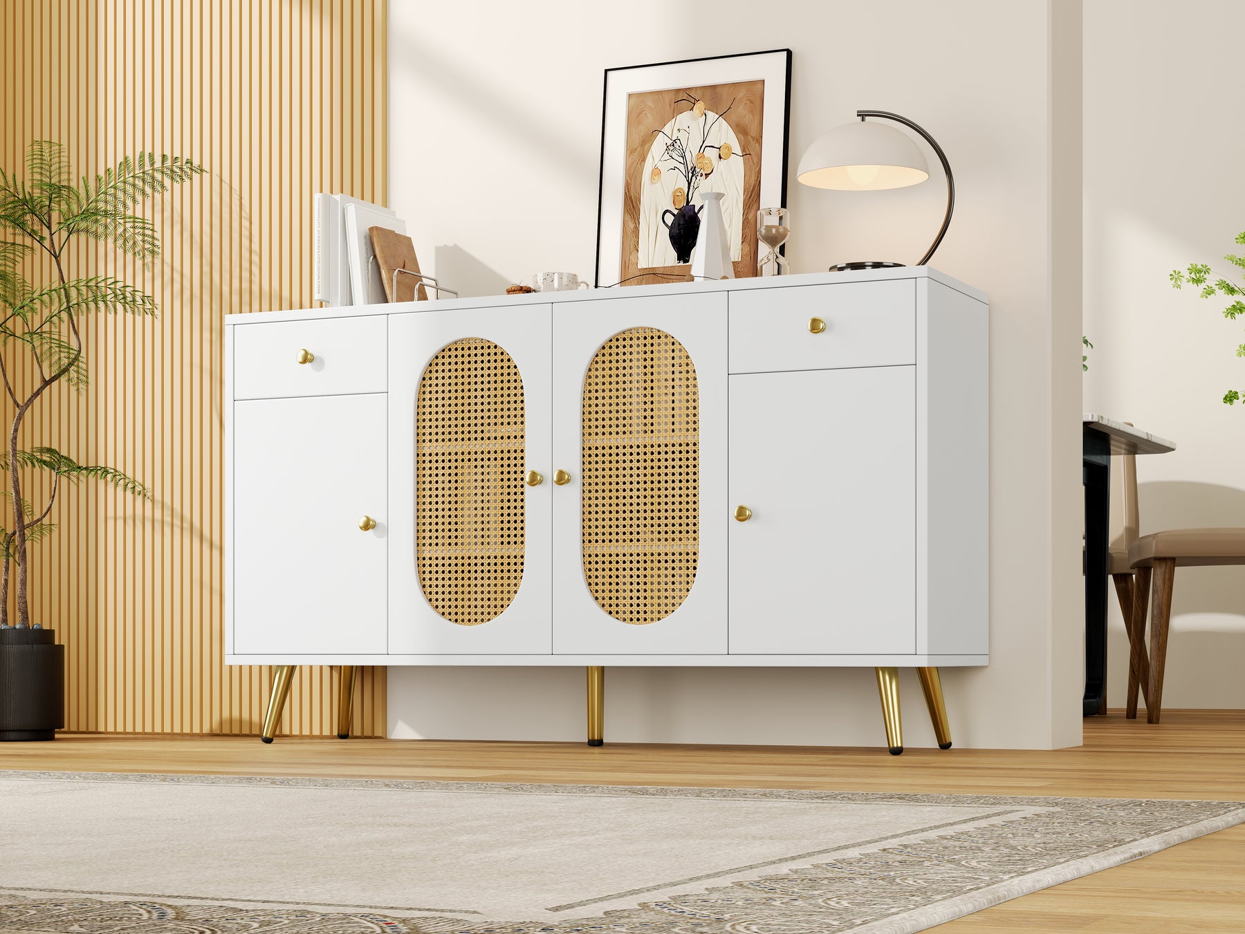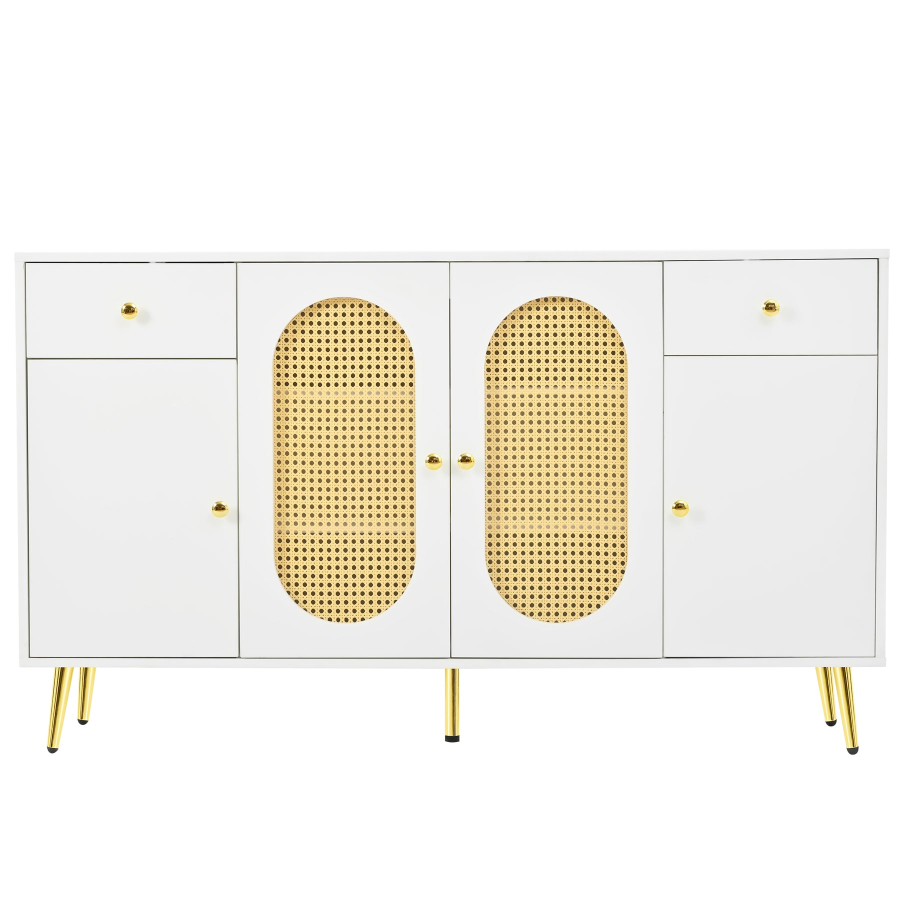 Buffet blanc rotin 2 tiroirs 4 portes 140x35x82cm HALOORA