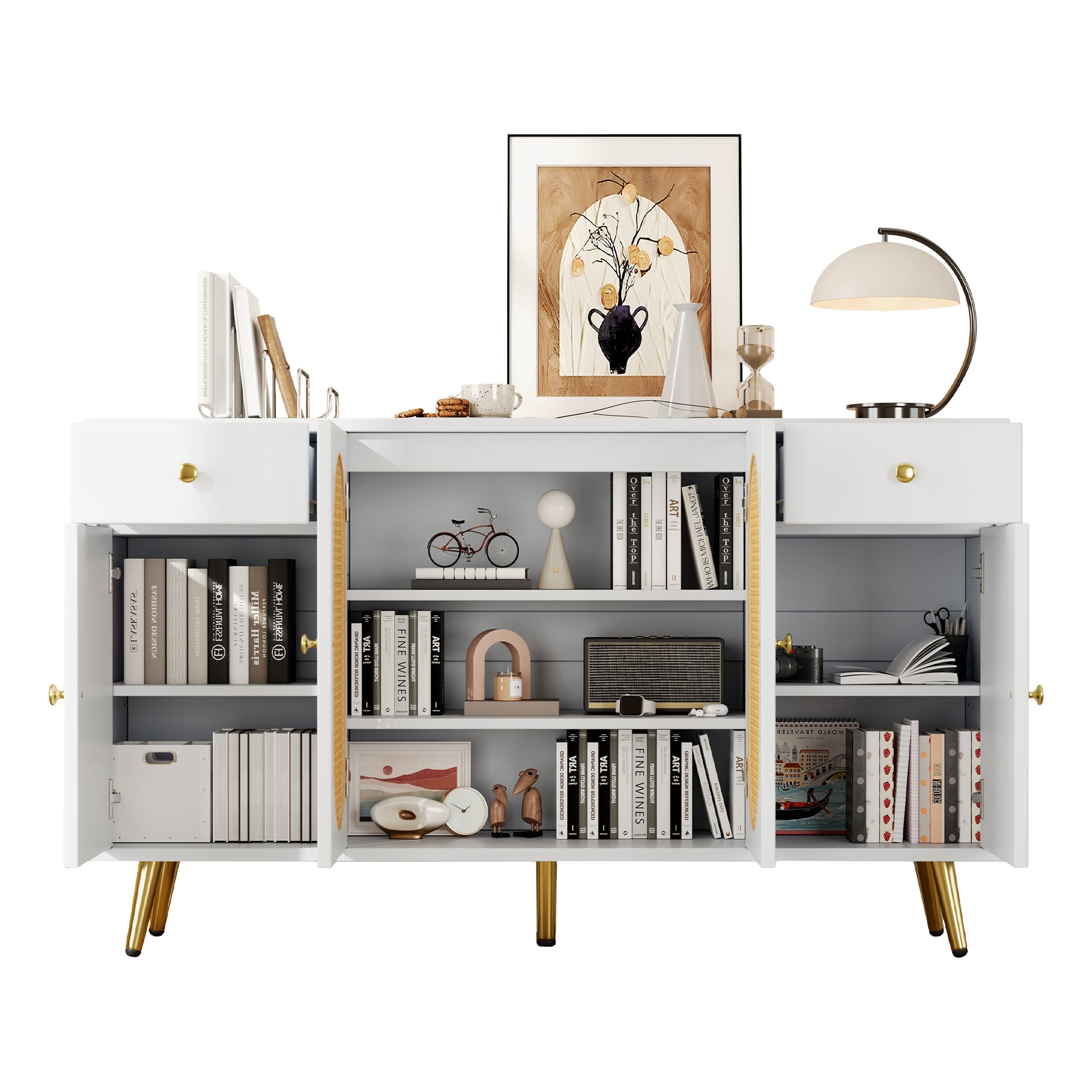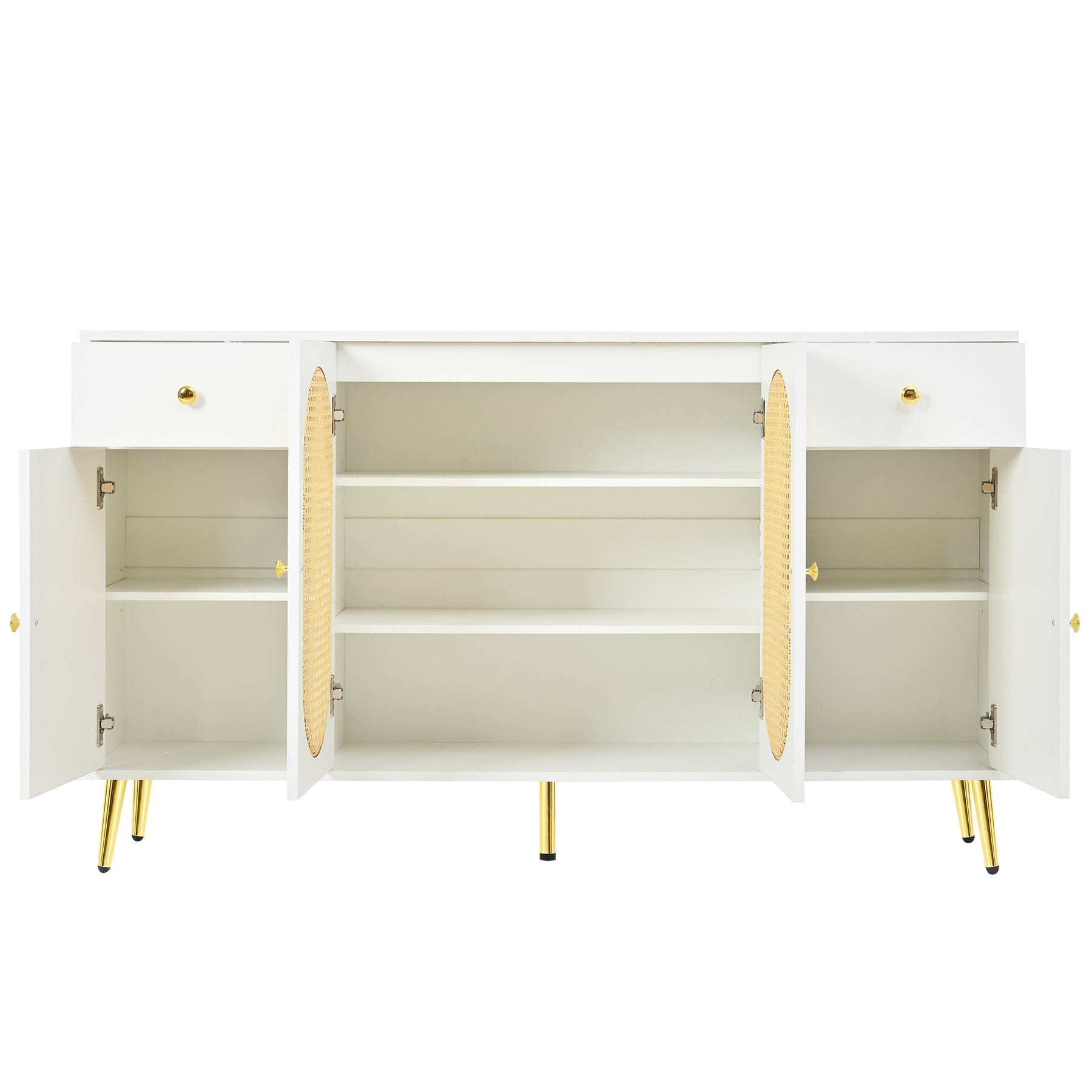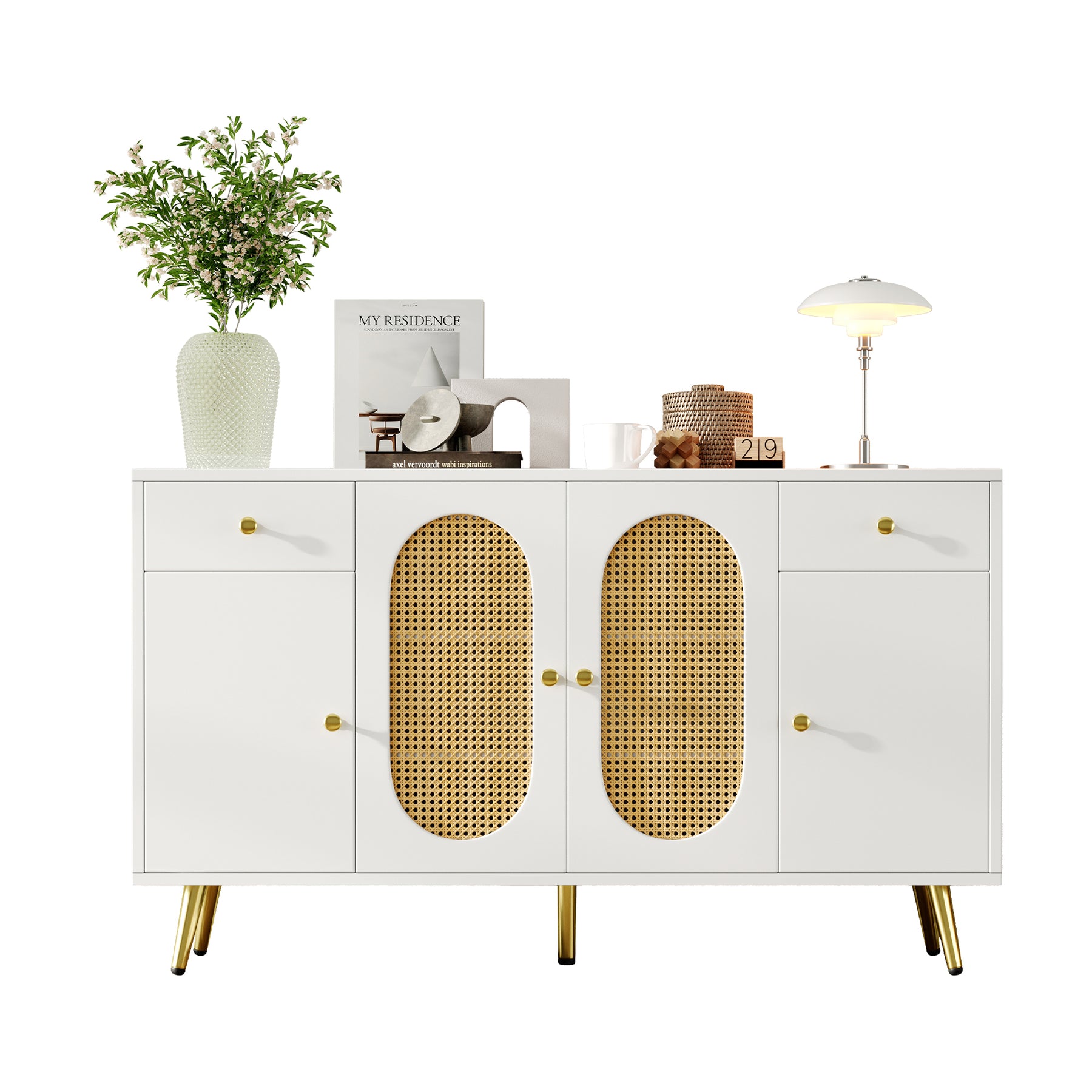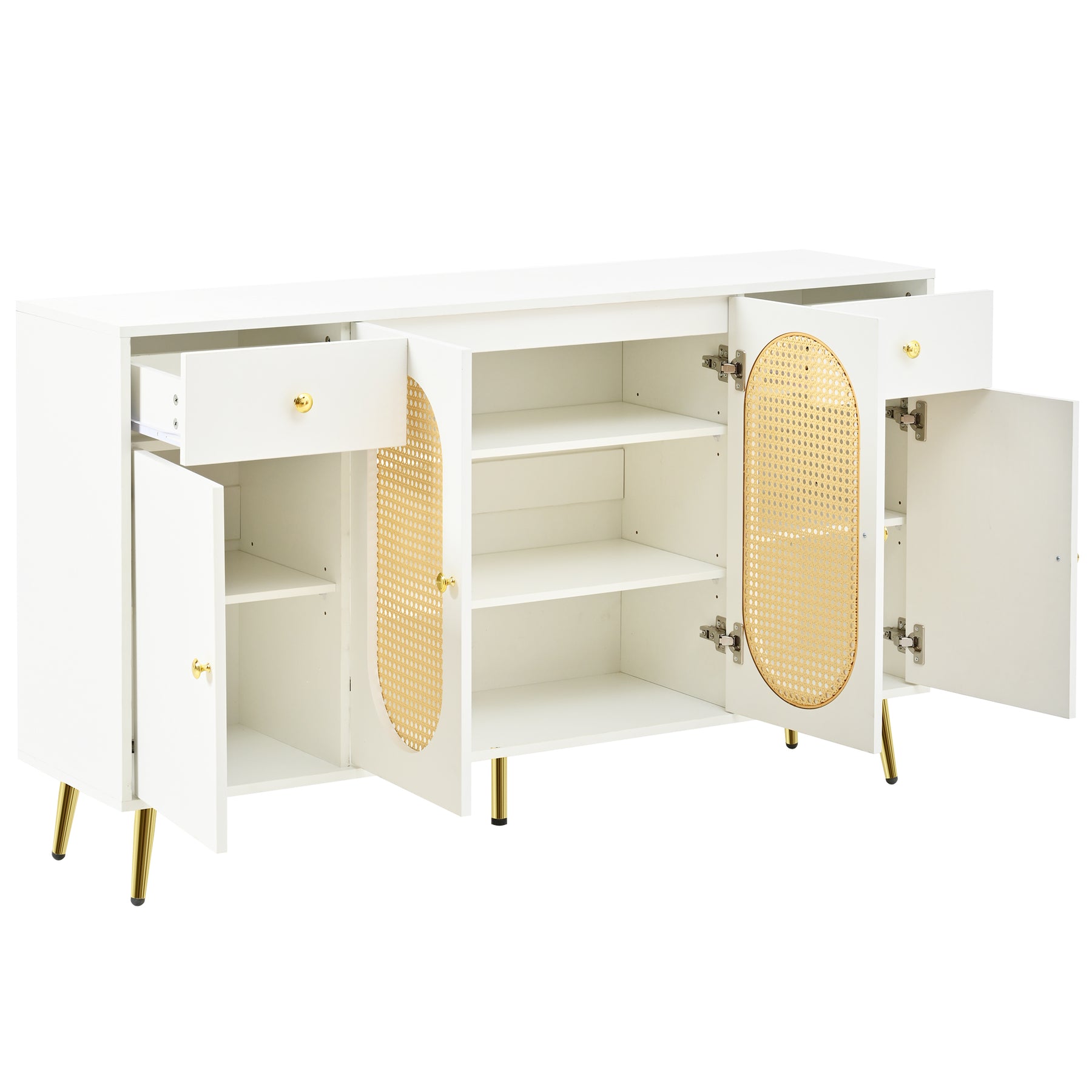 Buffet blanc rotin 2 tiroirs 4 portes 140x35x82cm HALOORA