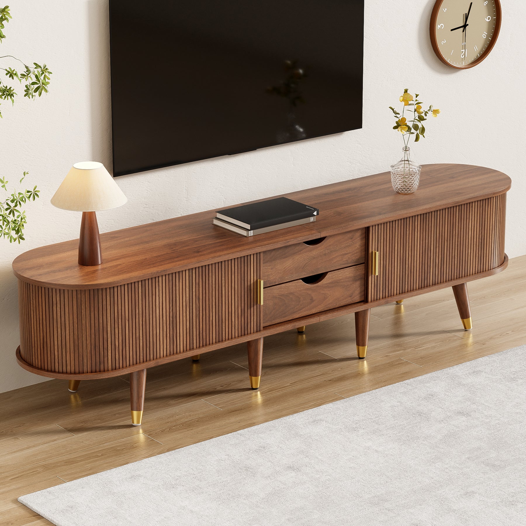 • Style naturel et chaleureux : Le meuble TV avec porte coulissante en rotin et finition noyer crée une atmosphère cosy et tendance, parfaite pour les salons qui veulent conjuguer authenticité et design.