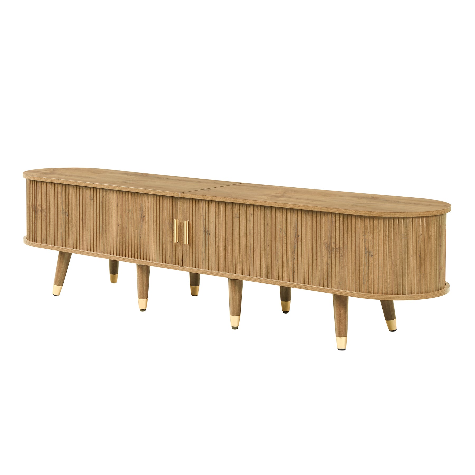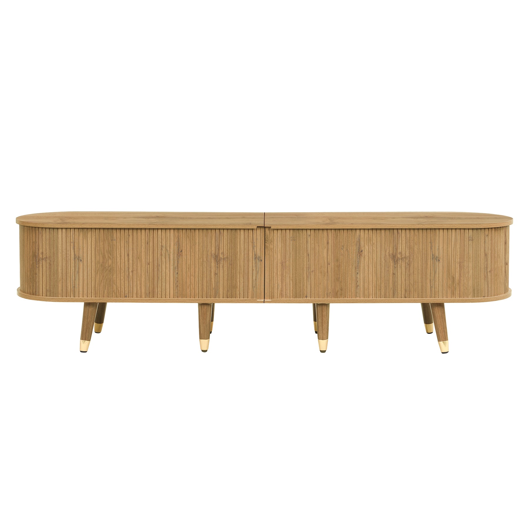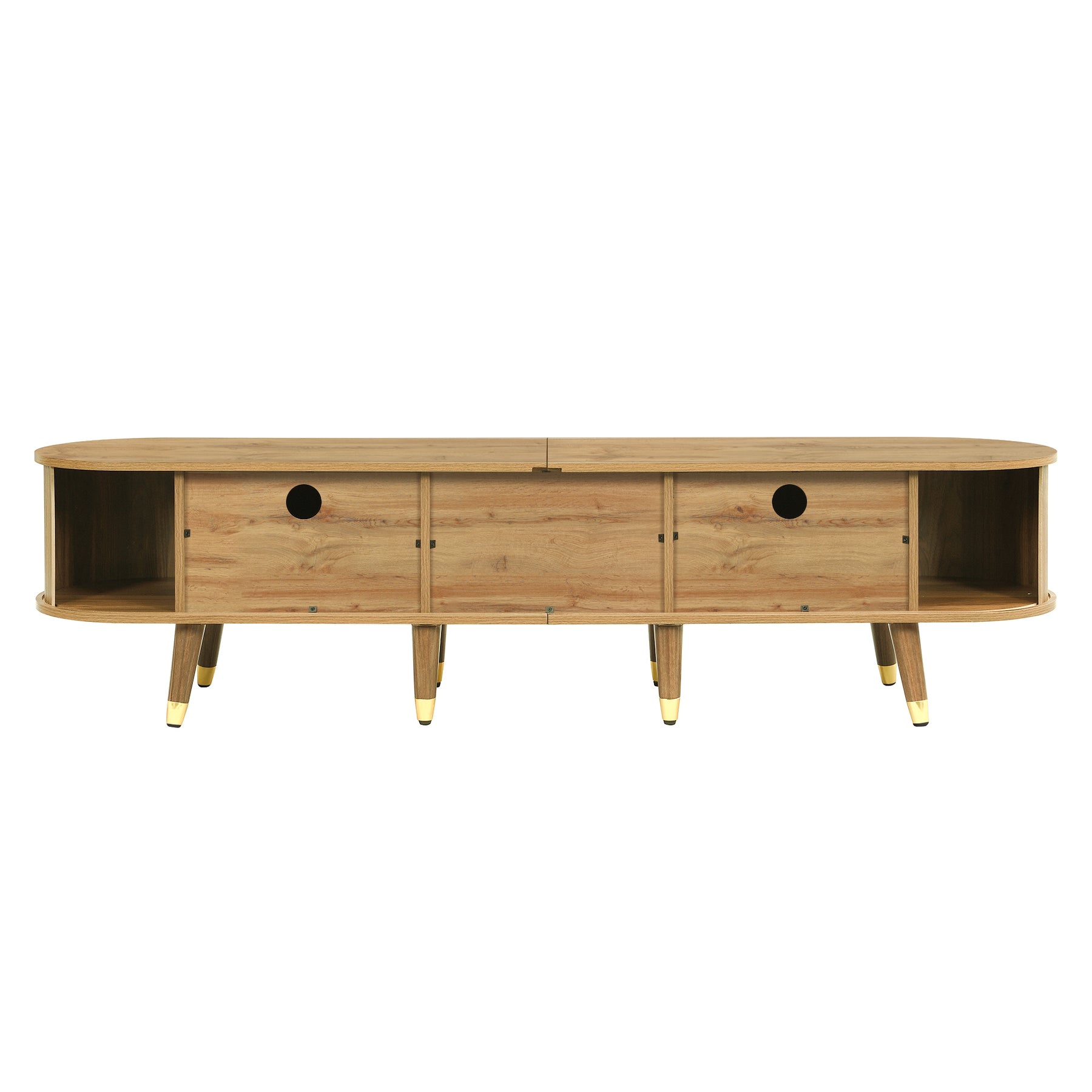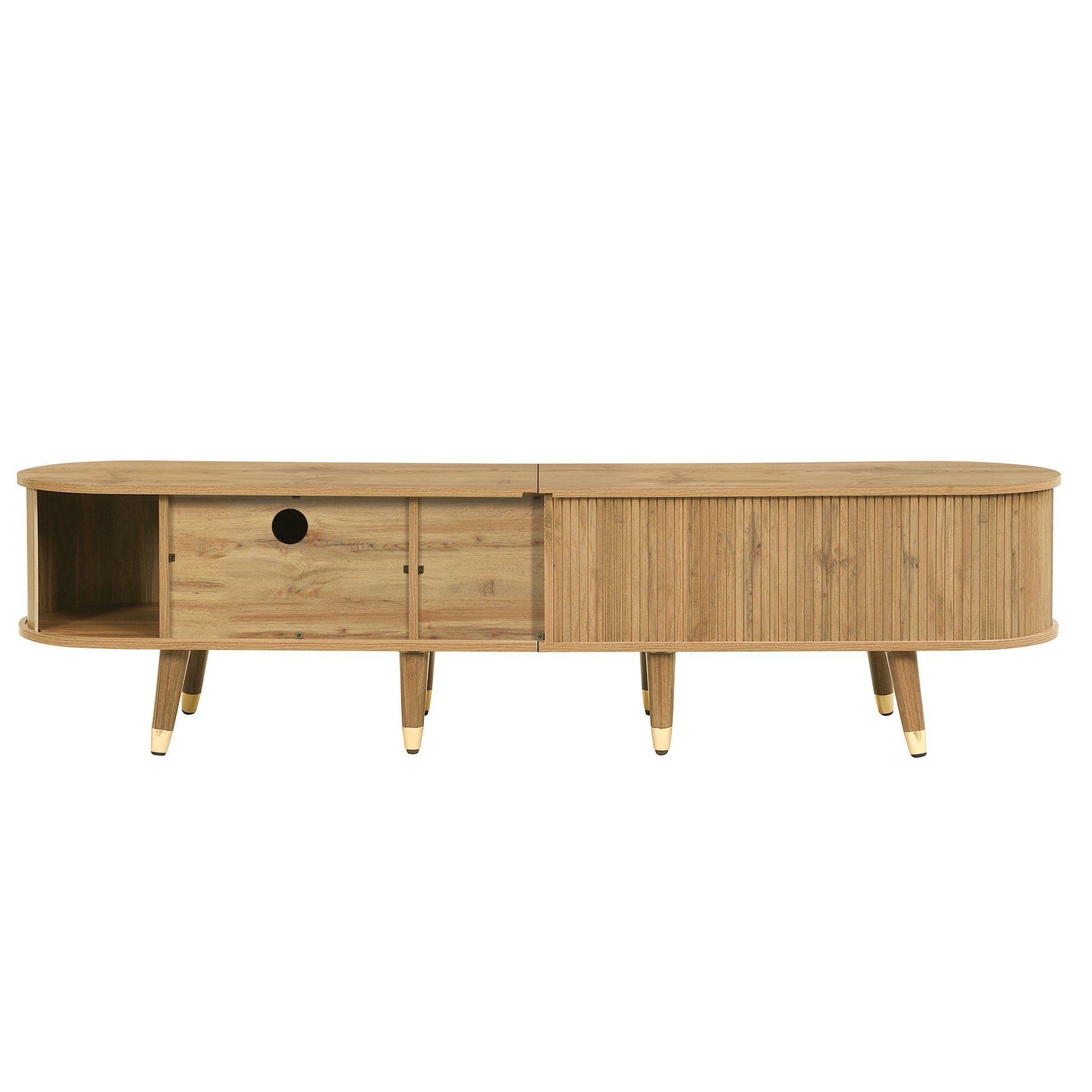 Meuble TV effet bois clair avec portes coulissantes et accents dorés 175x38x45 cm SUNPILLAR