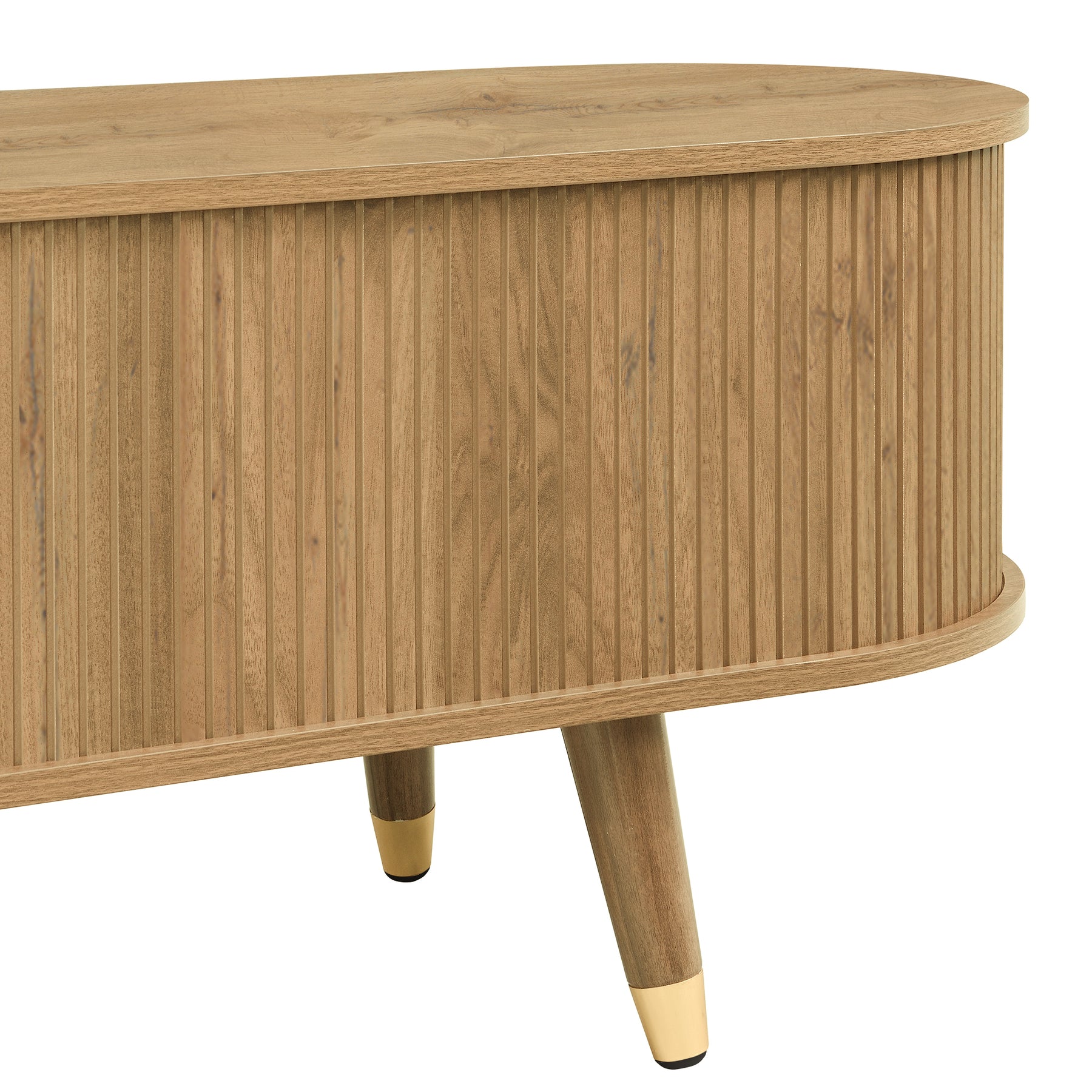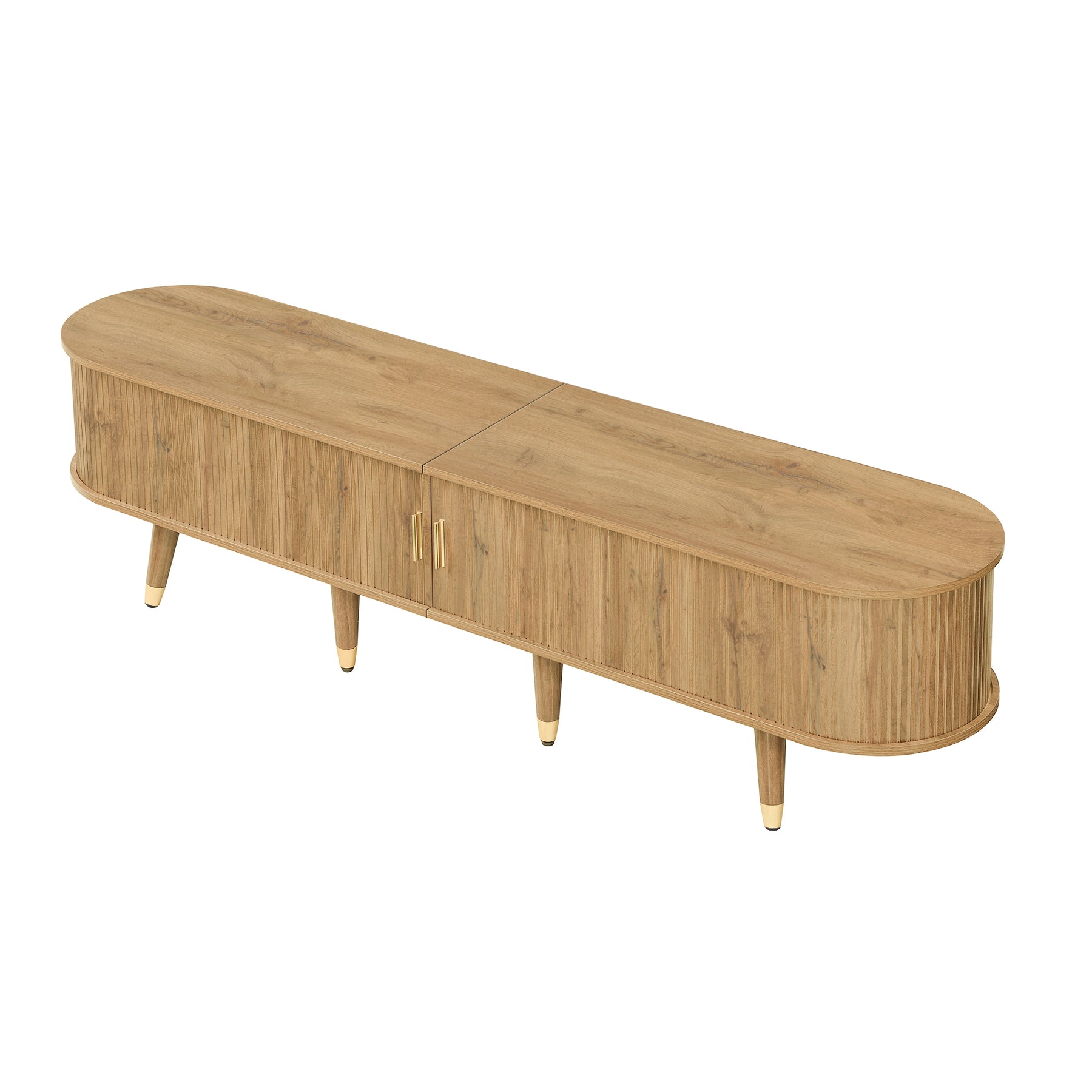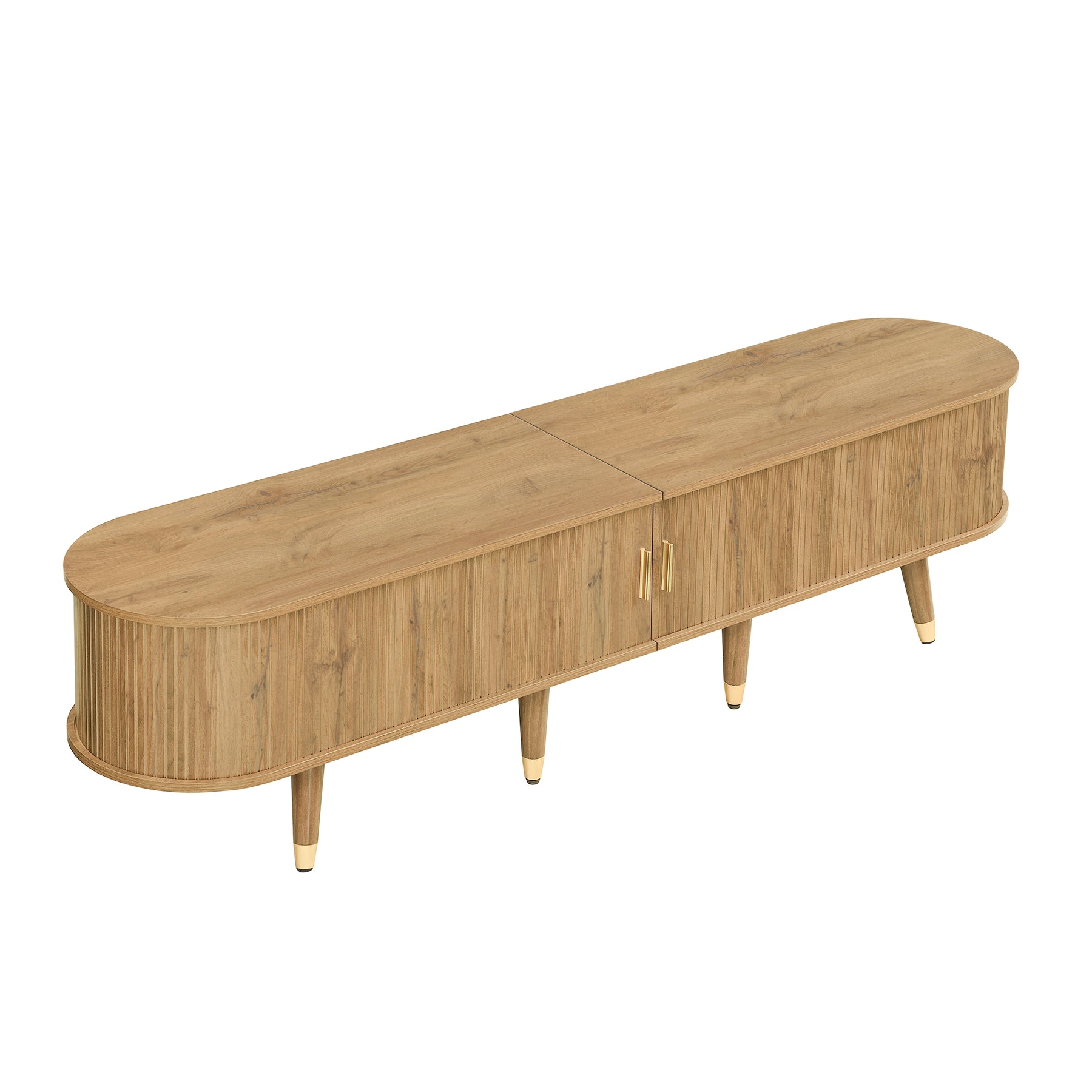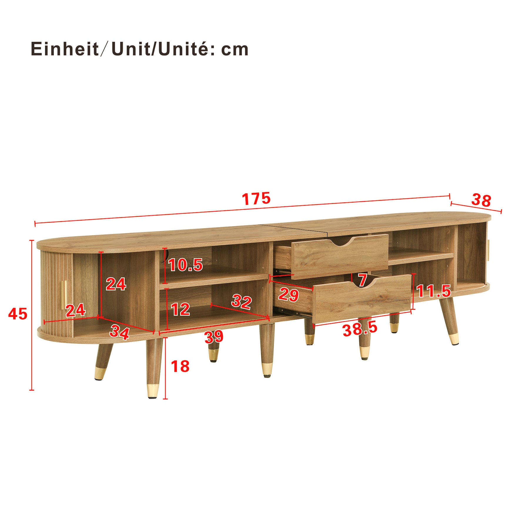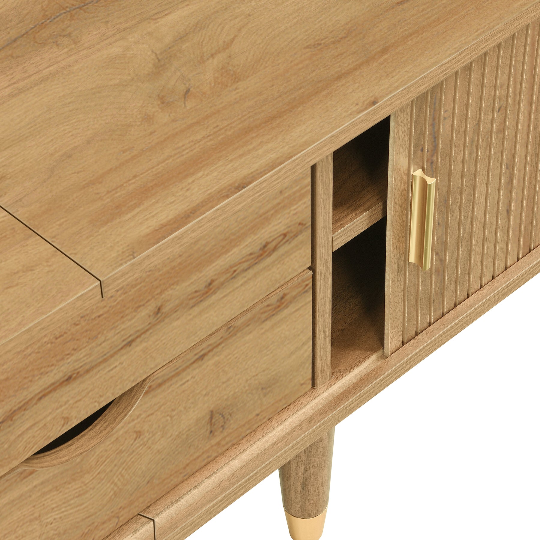 Meuble TV effet bois clair avec portes coulissantes et accents dorés 175x38x45 cm SUNPILLAR