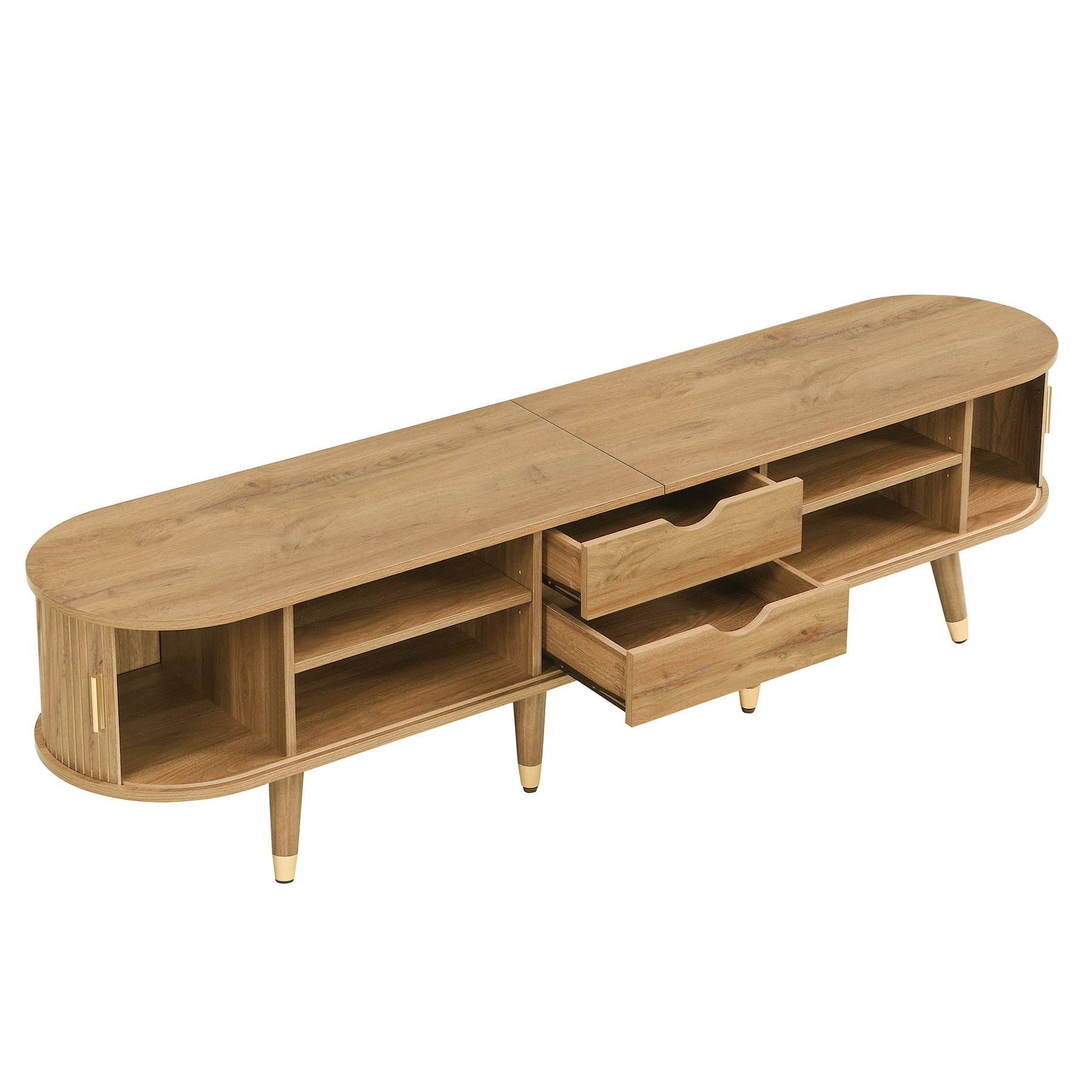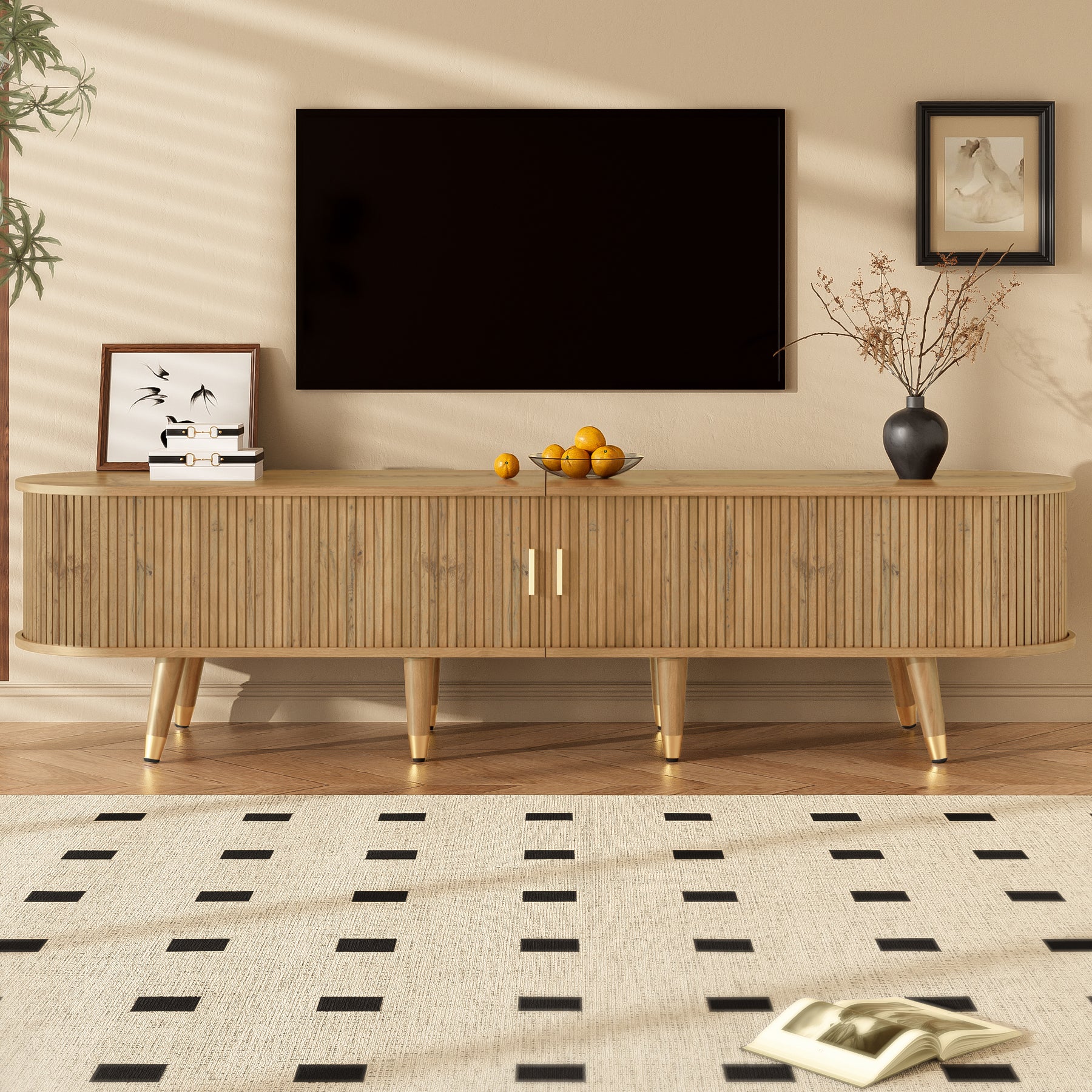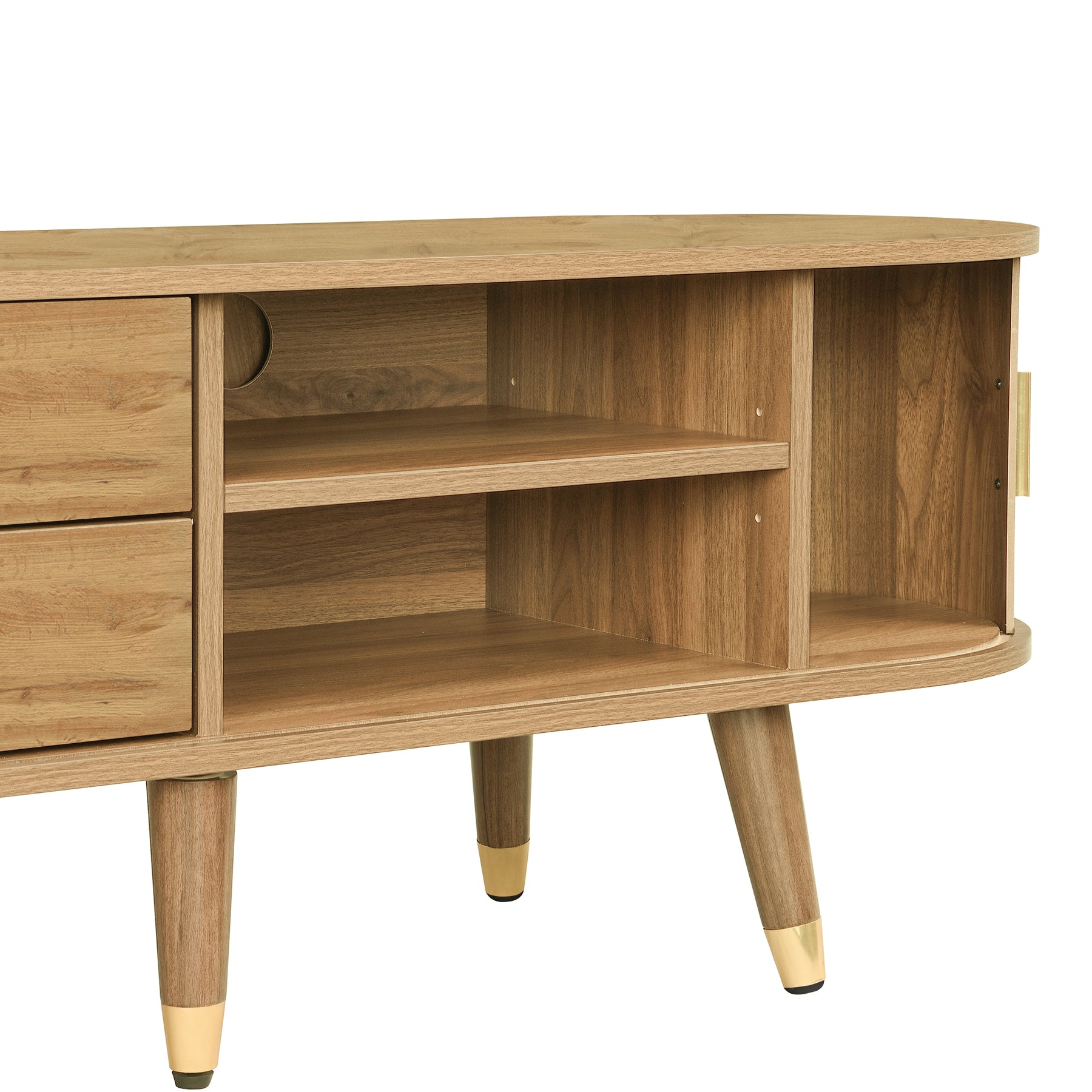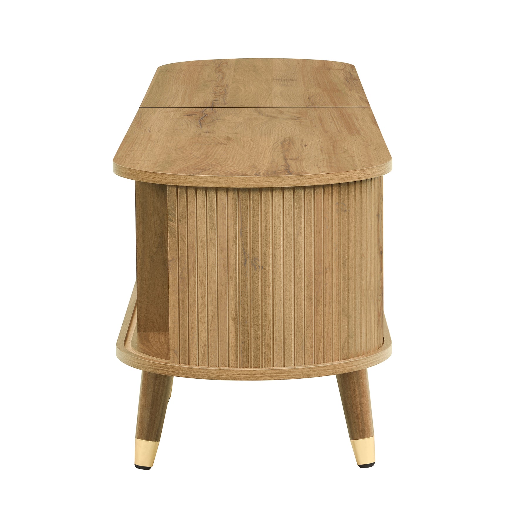 Meuble TV effet bois clair avec portes coulissantes et accents dorés 175x38x45 cm SUNPILLAR