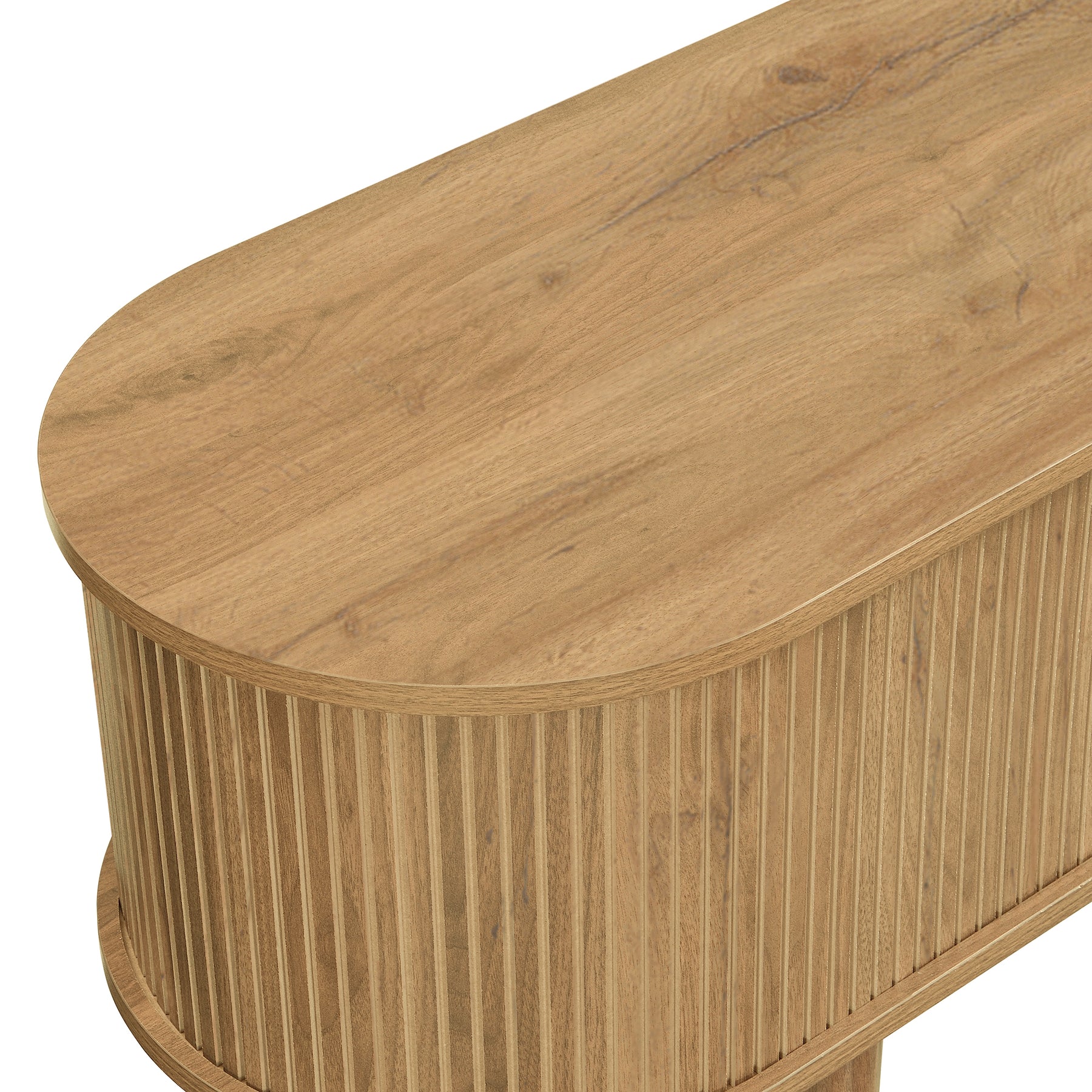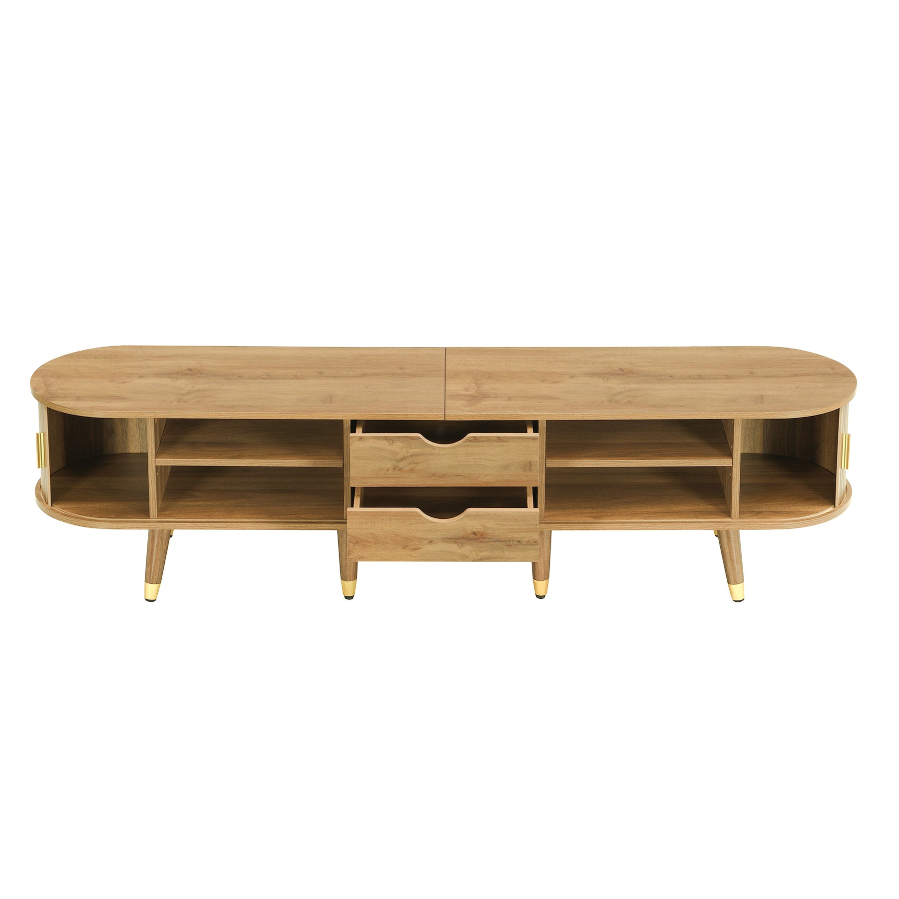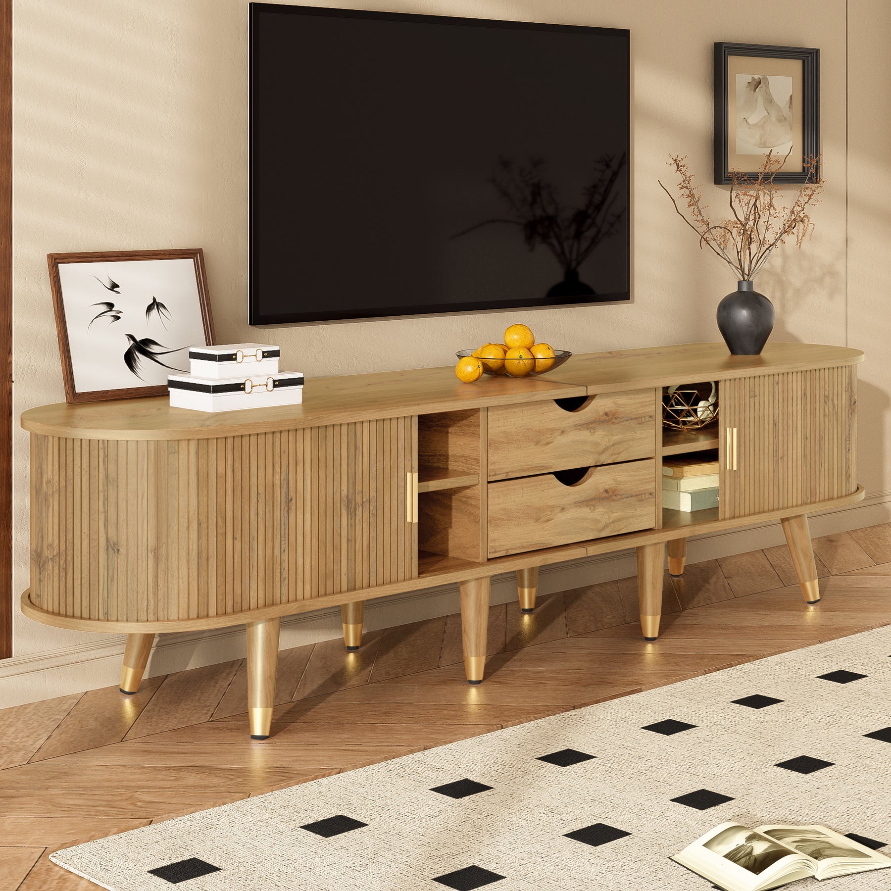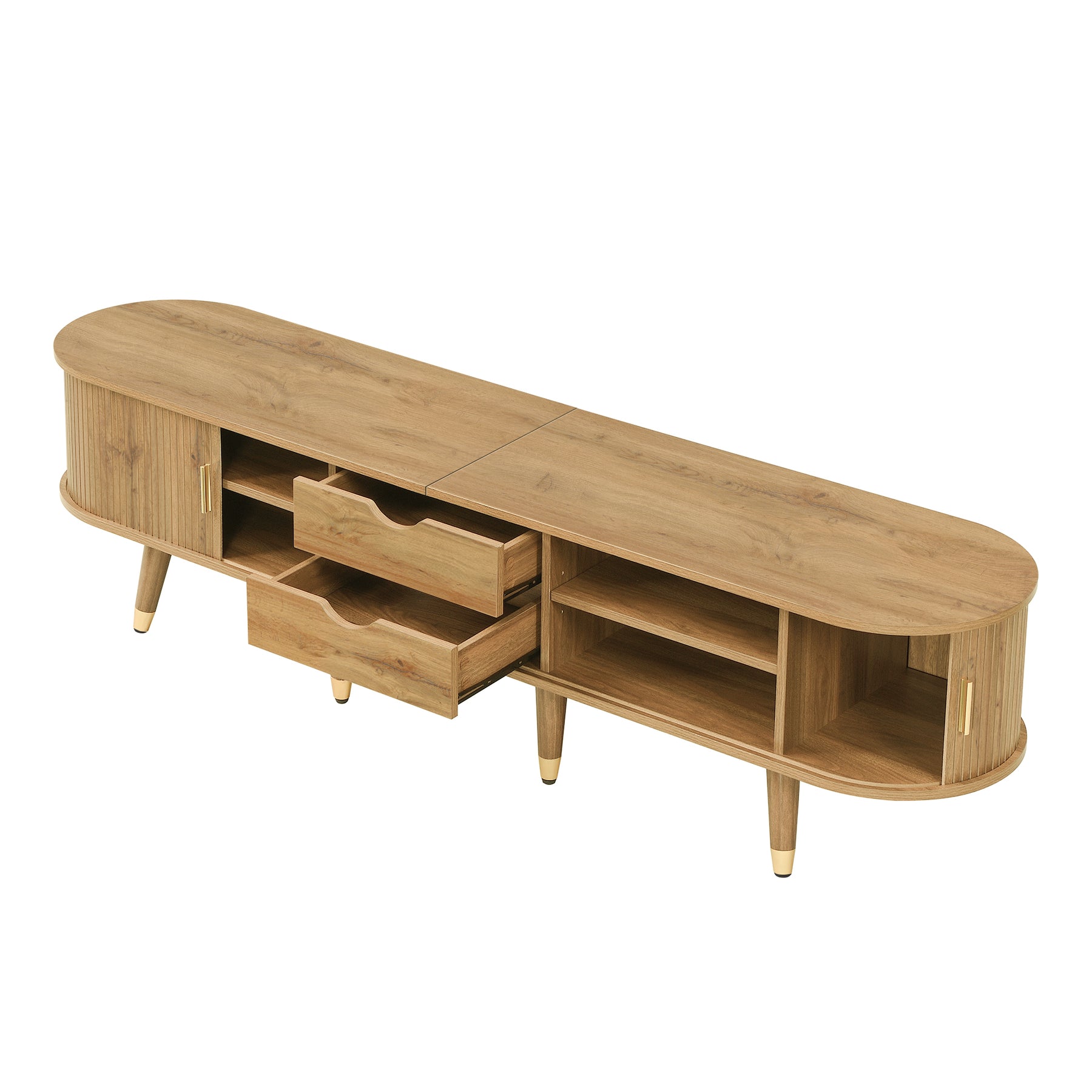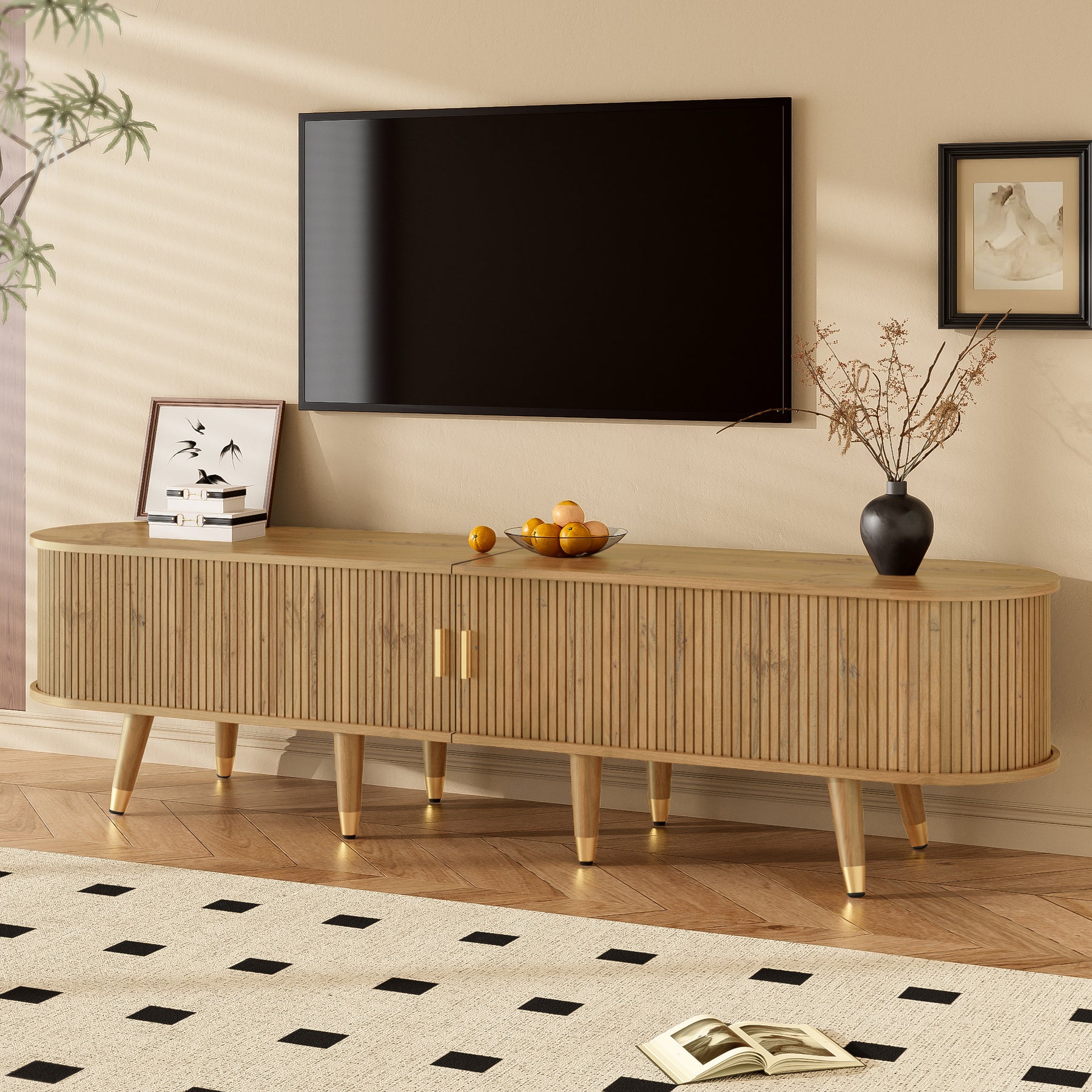 Meuble TV effet bois clair avec portes coulissantes et accents dorés 175x38x45 cm SUNPILLAR
