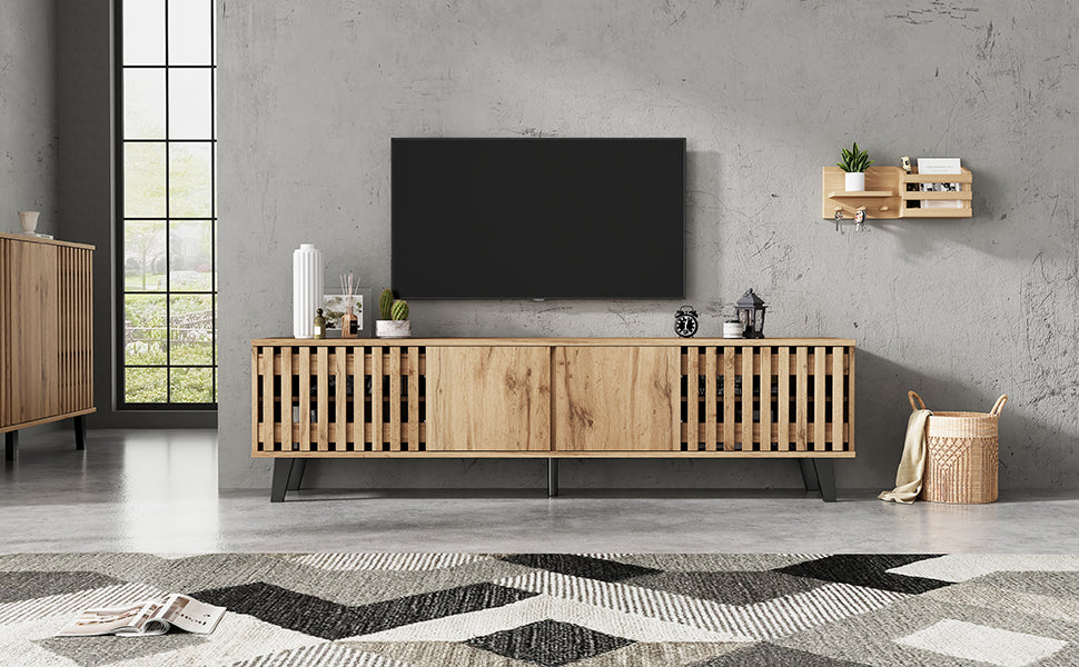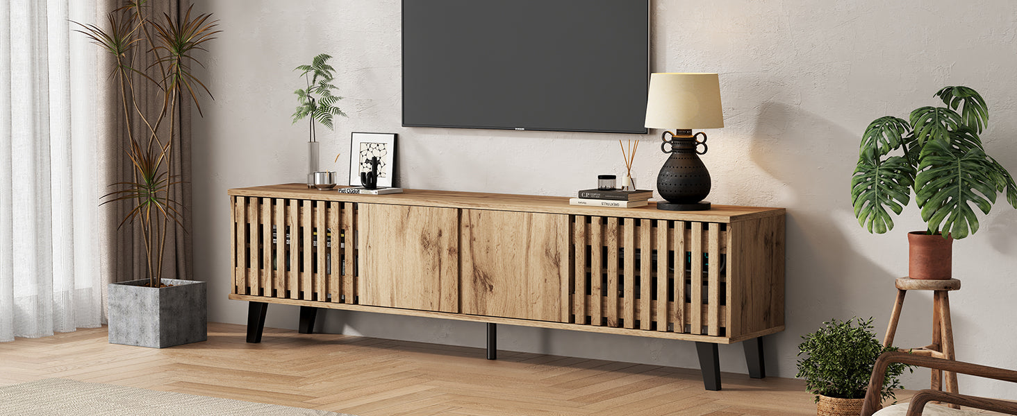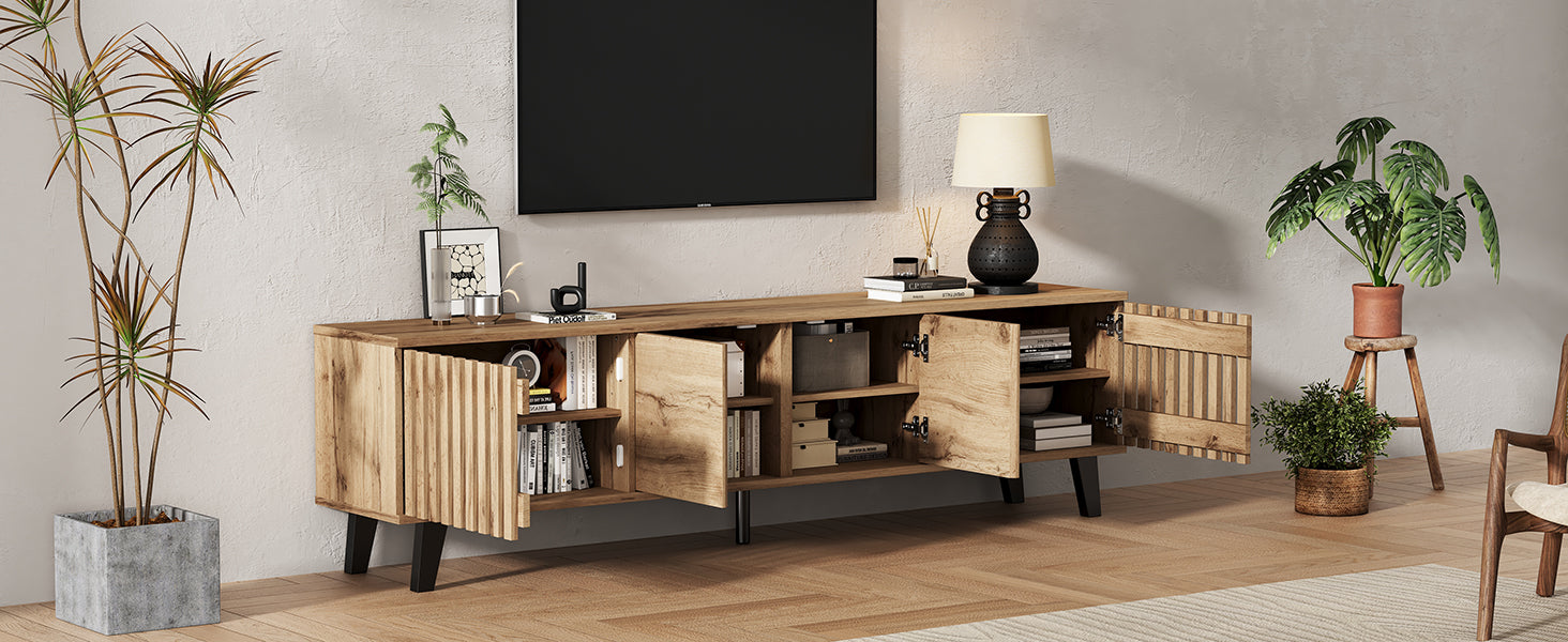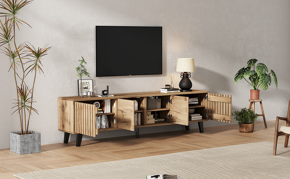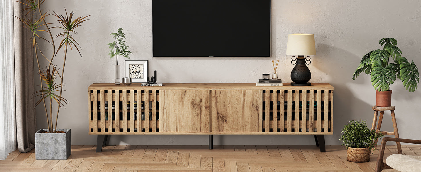 Transformez votre salon en un espace élégant et organisé avec ce meuble TV en bois naturel RIFTSYLTHYNOR