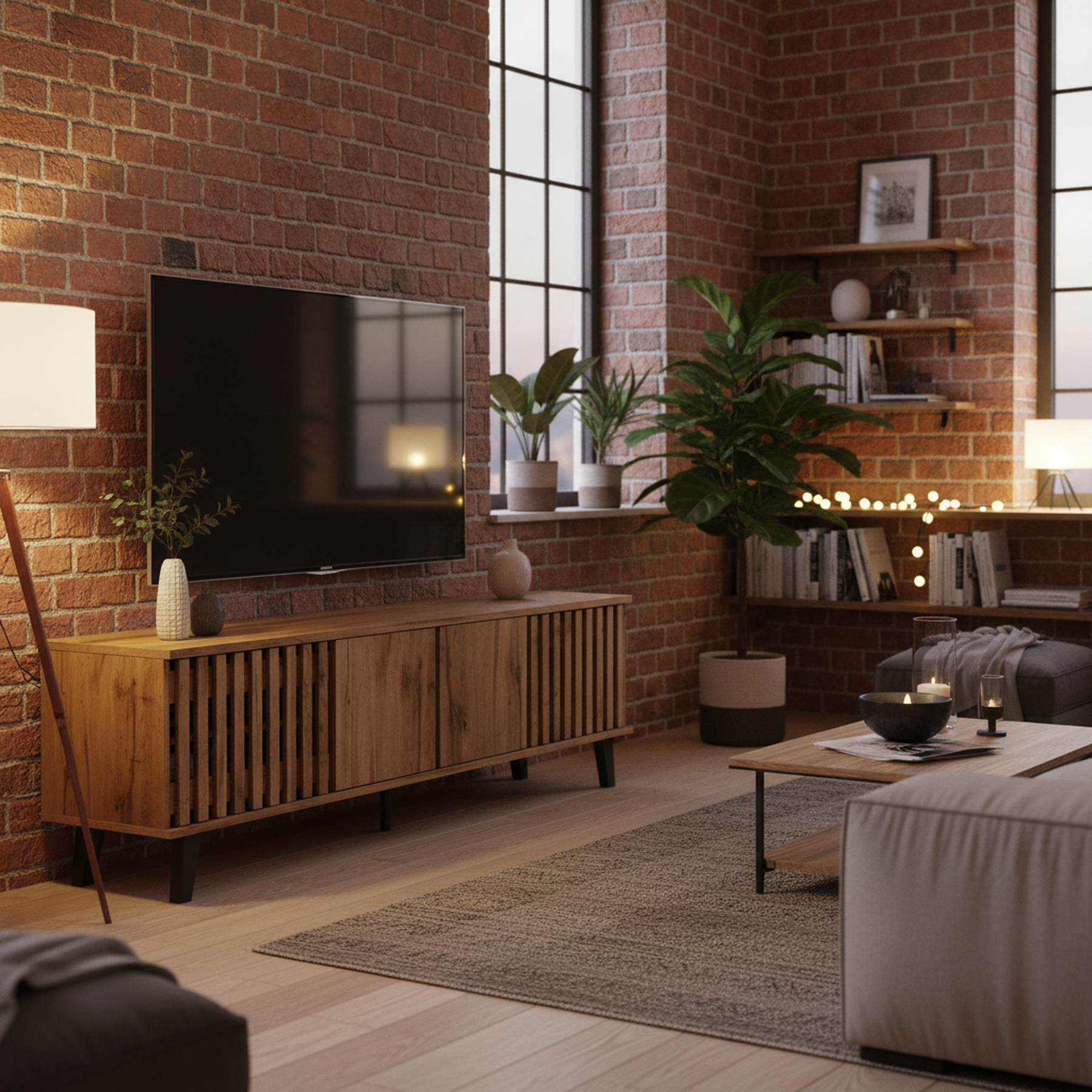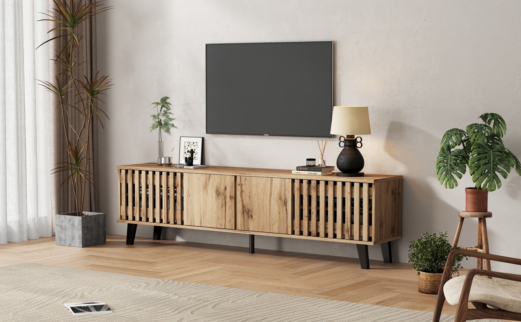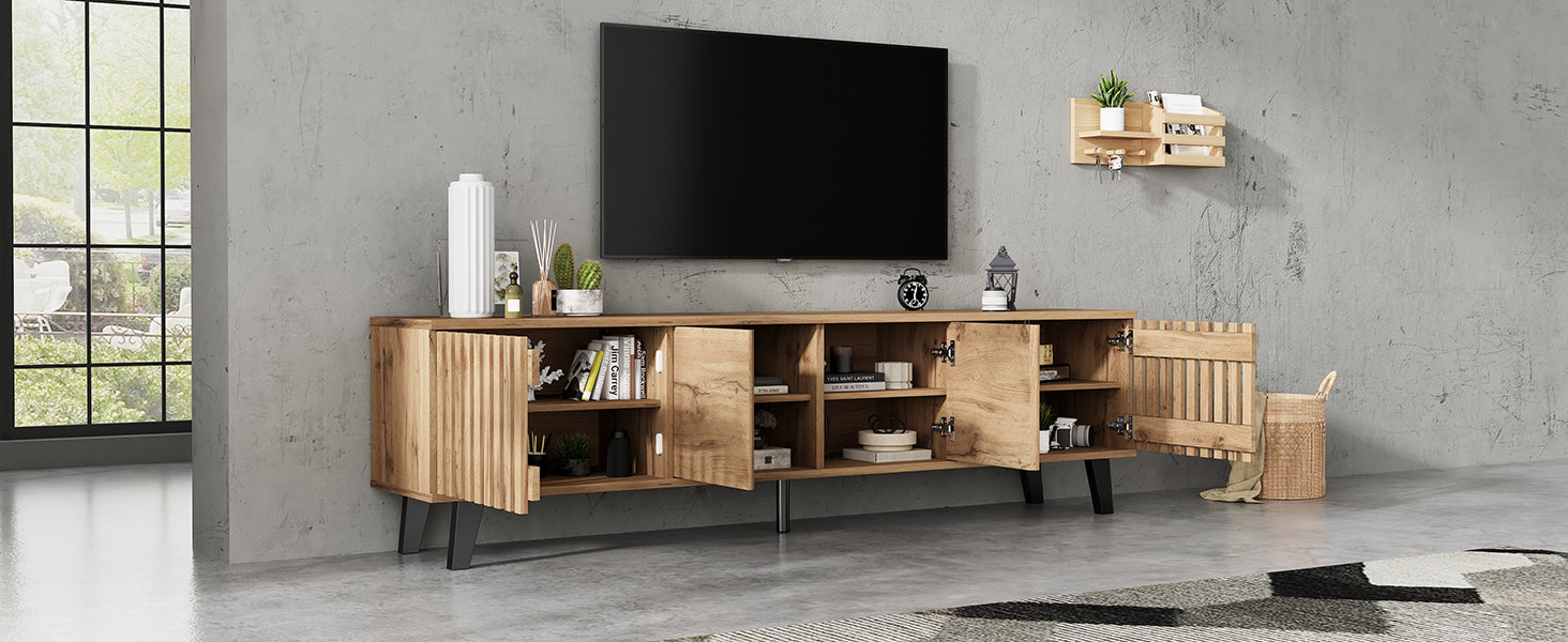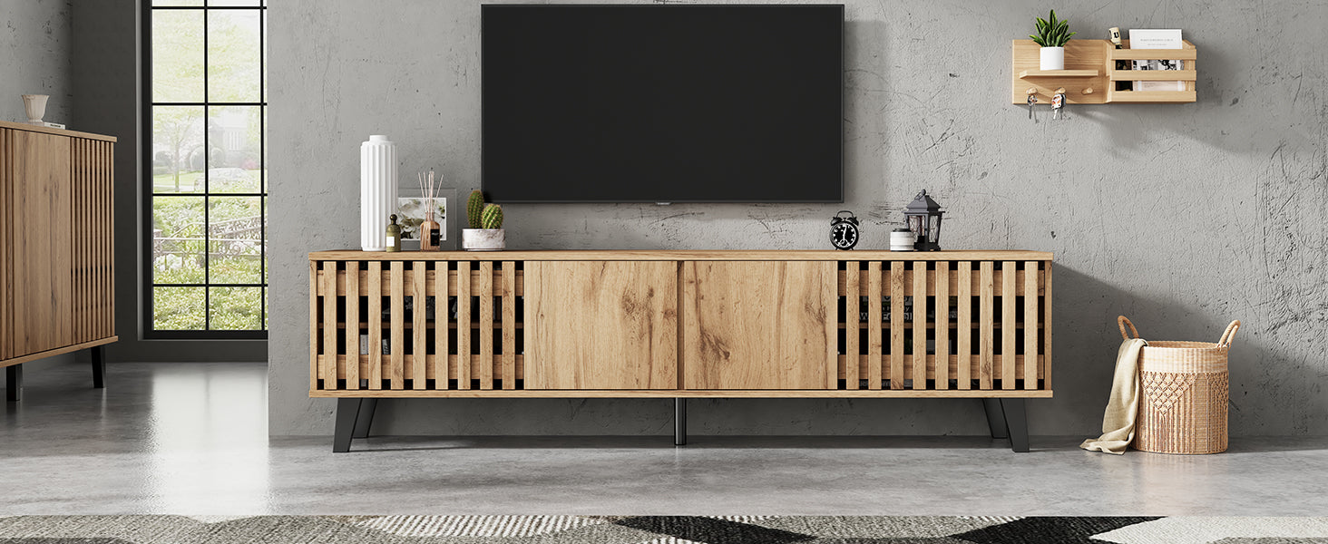 Transformez votre salon en un espace élégant et organisé avec ce meuble TV en bois naturel RIFTSYLTHYNOR