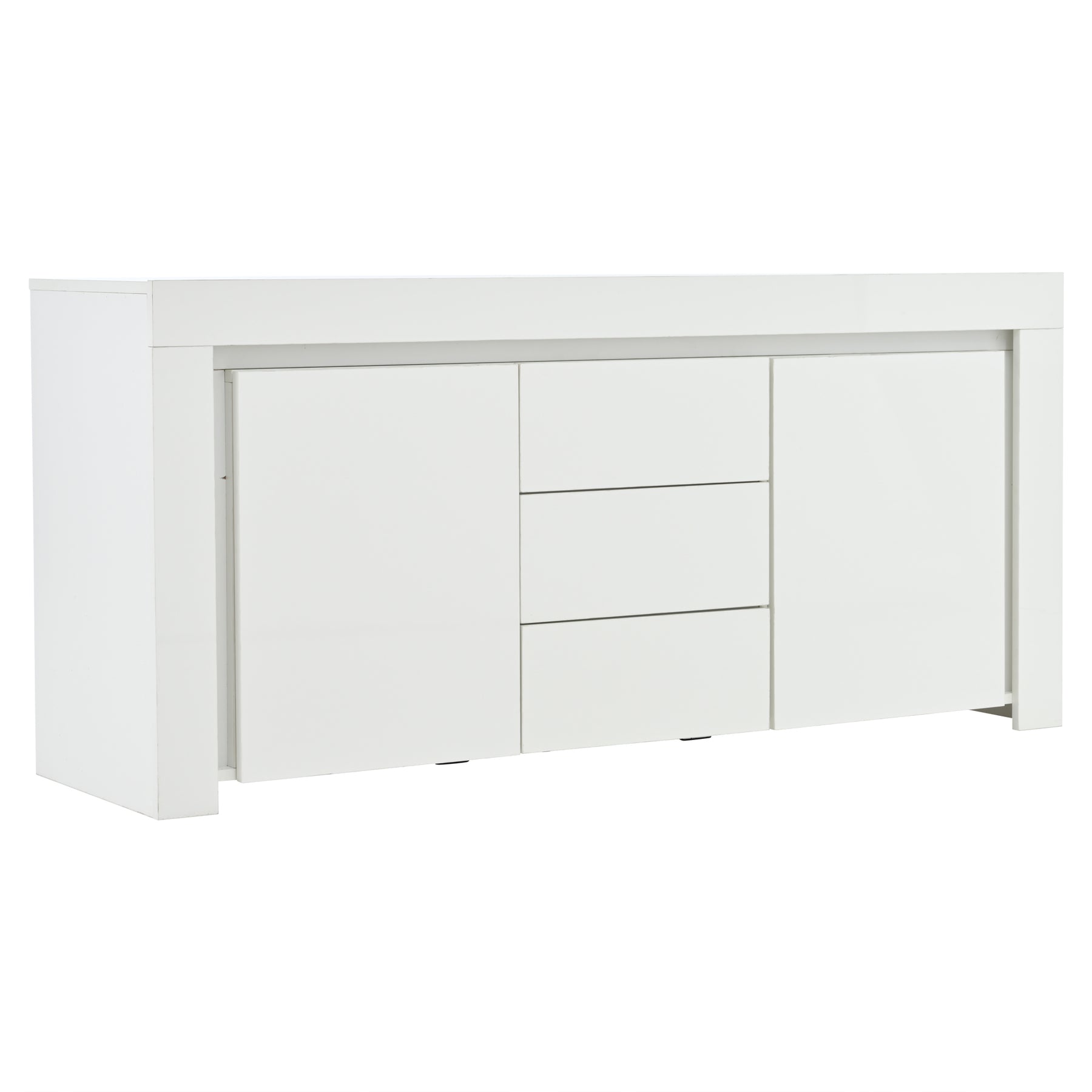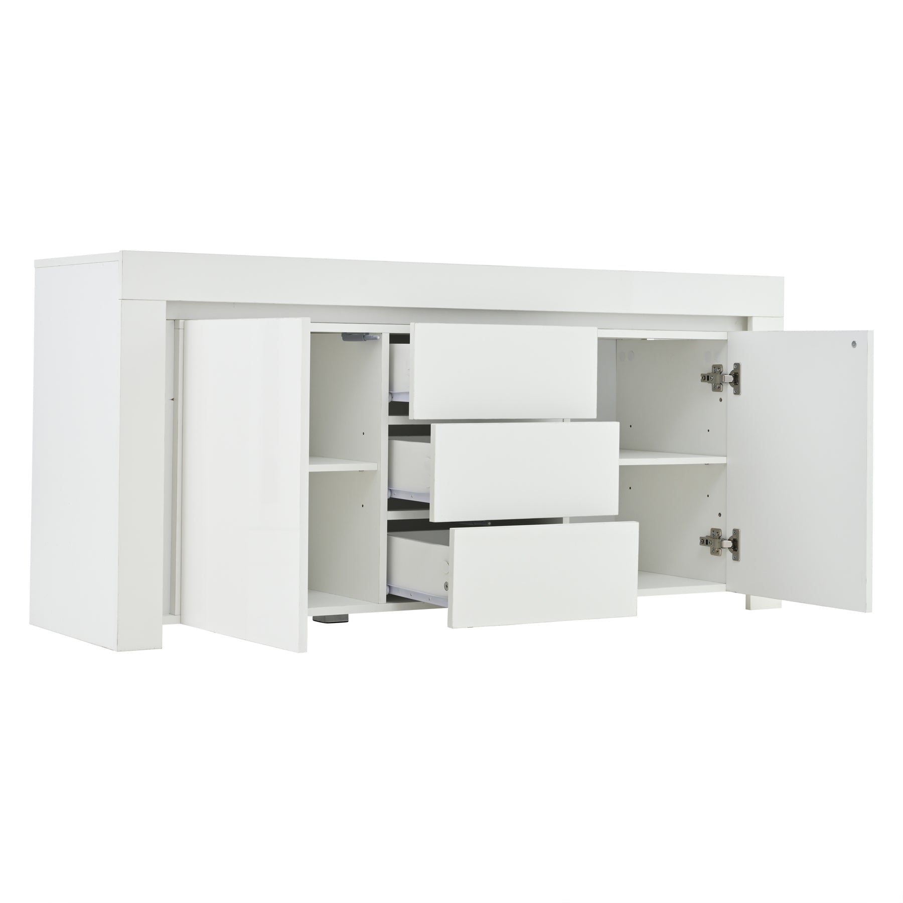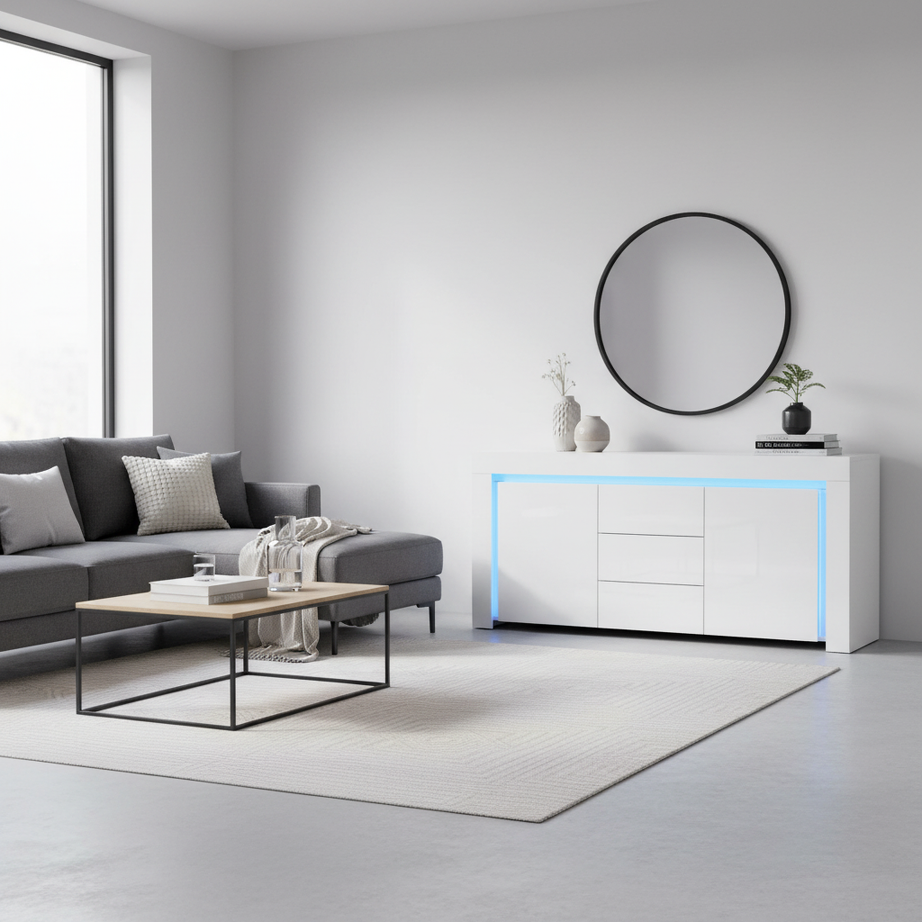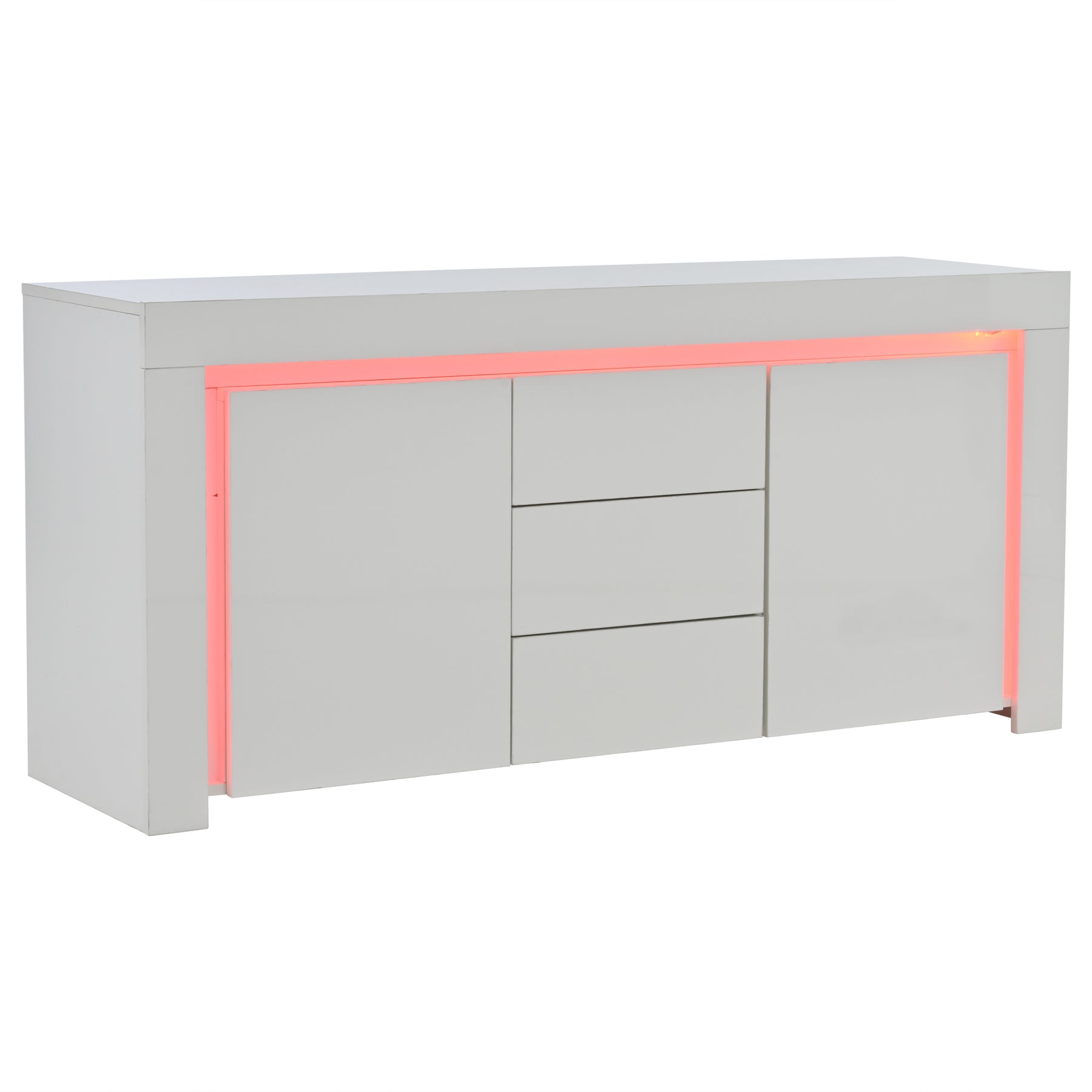 Buffet blanc laqué brillant avec éclairage LED 2 portes 3 tiroirs EUGLENOID