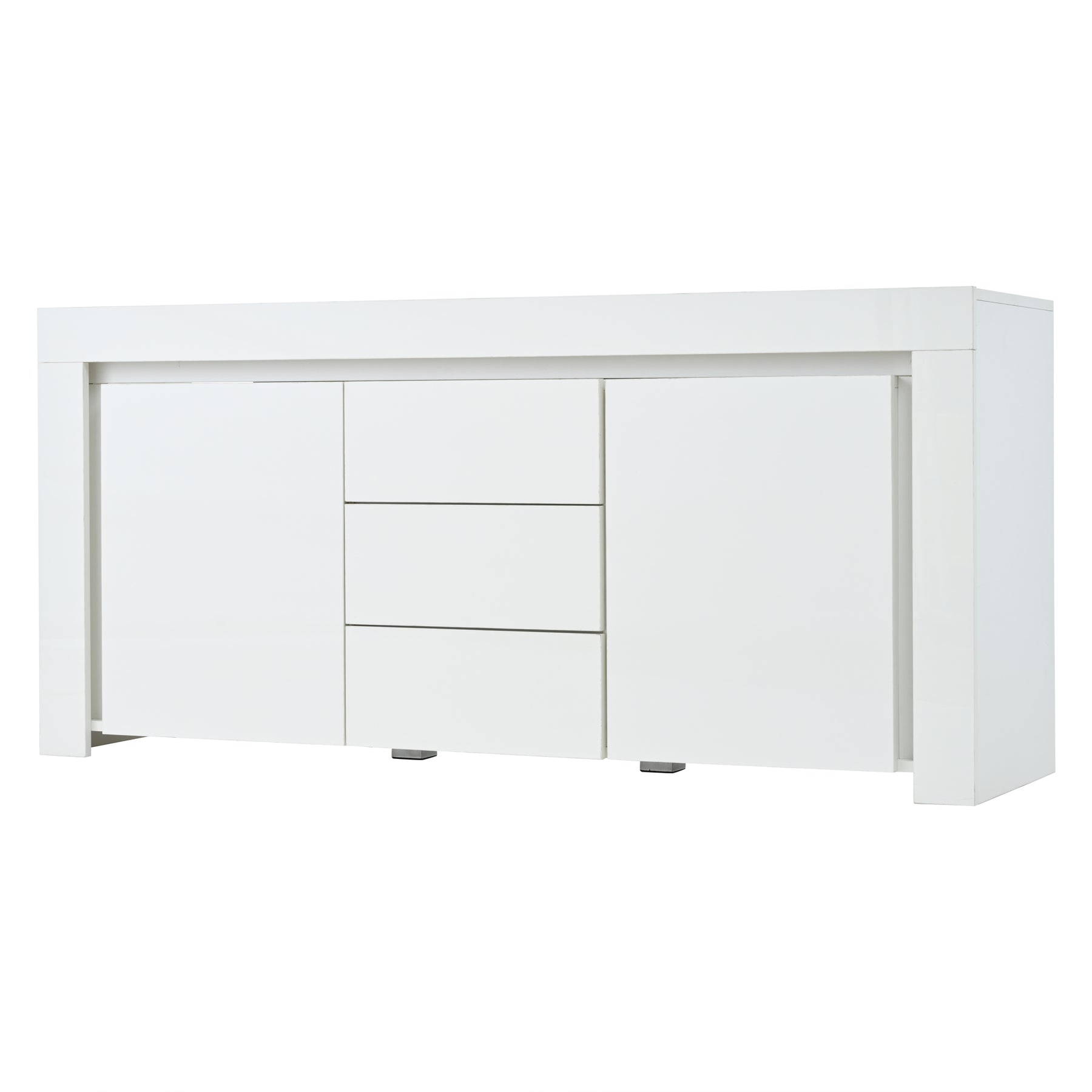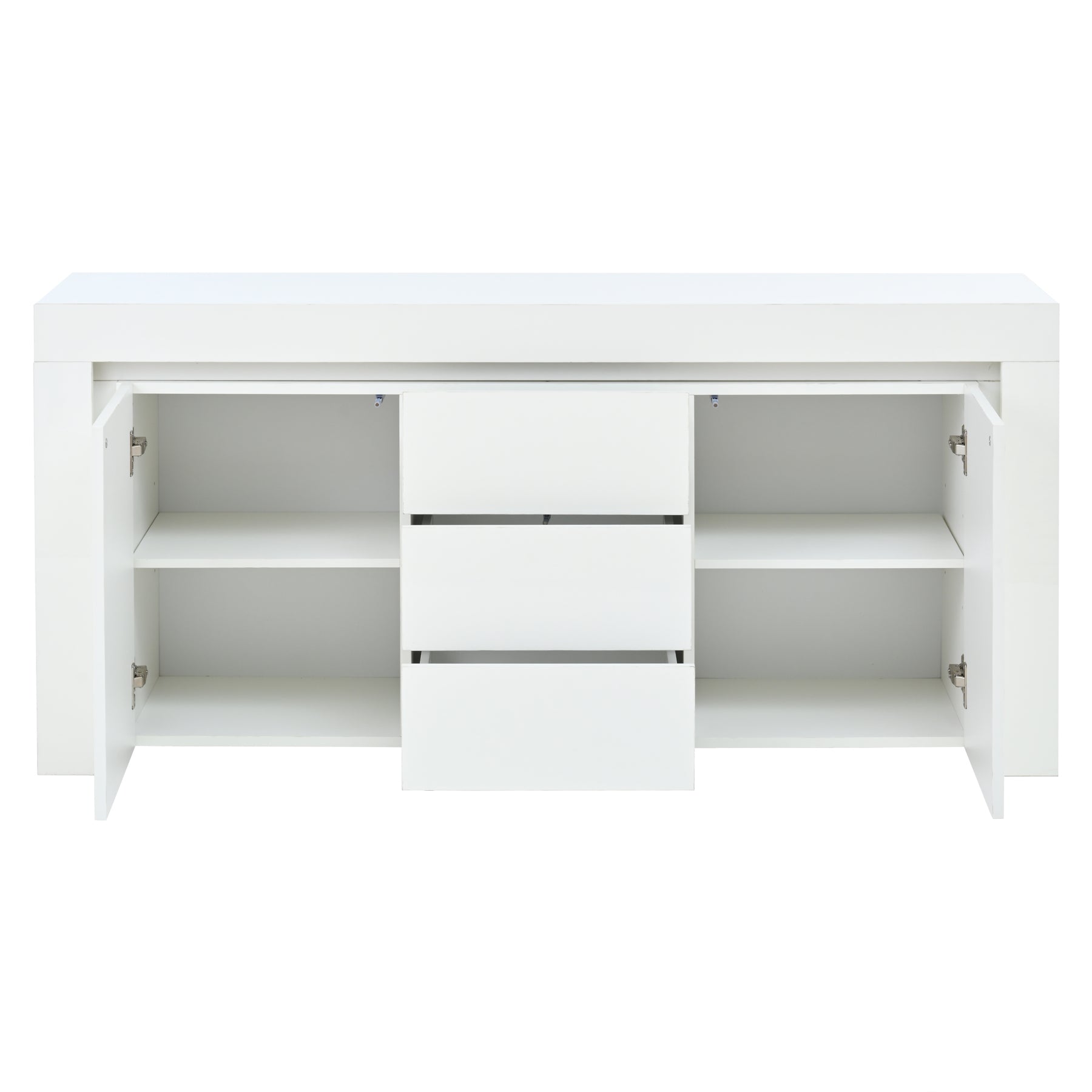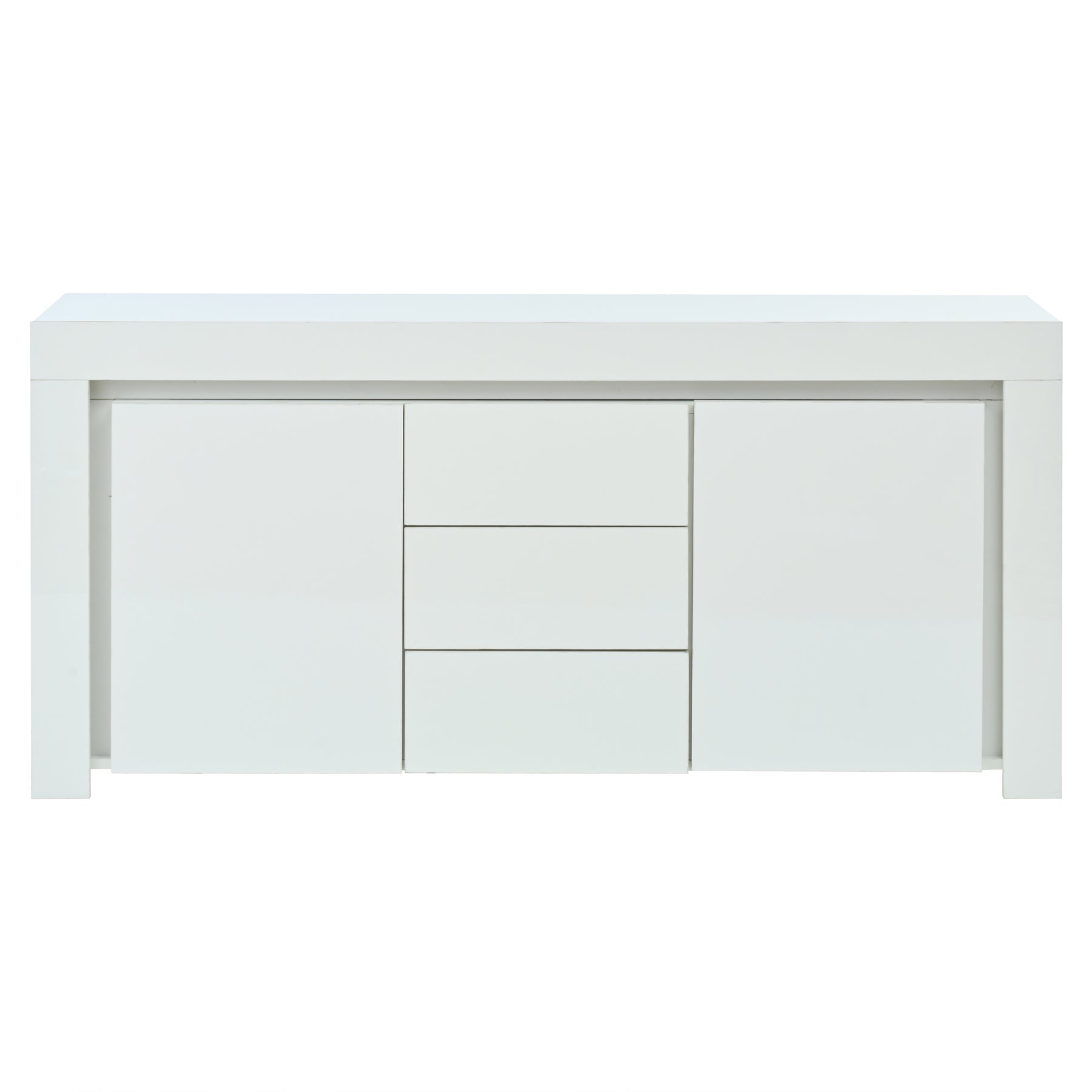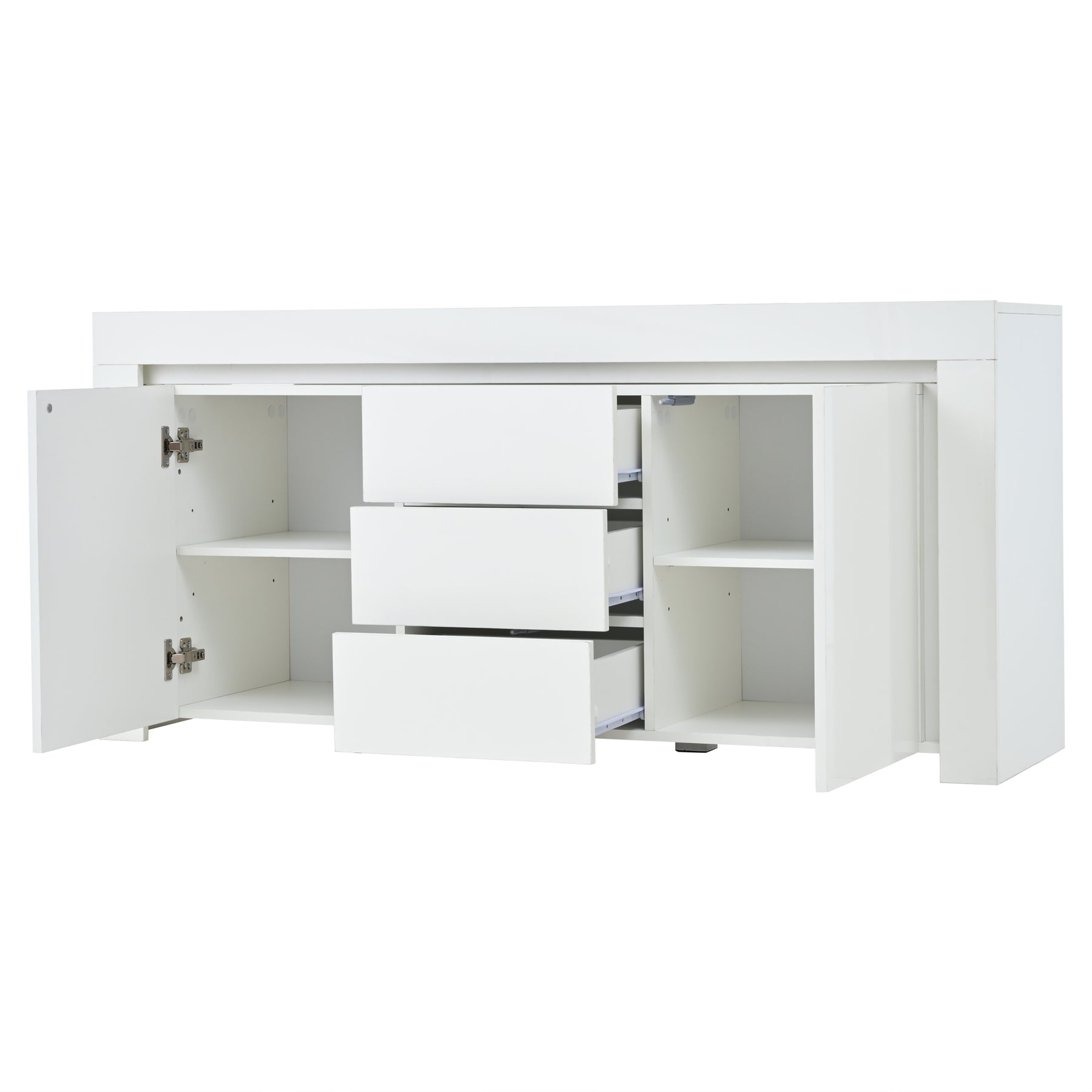 Buffet blanc laqué brillant avec éclairage LED 2 portes 3 tiroirs EUGLENOID