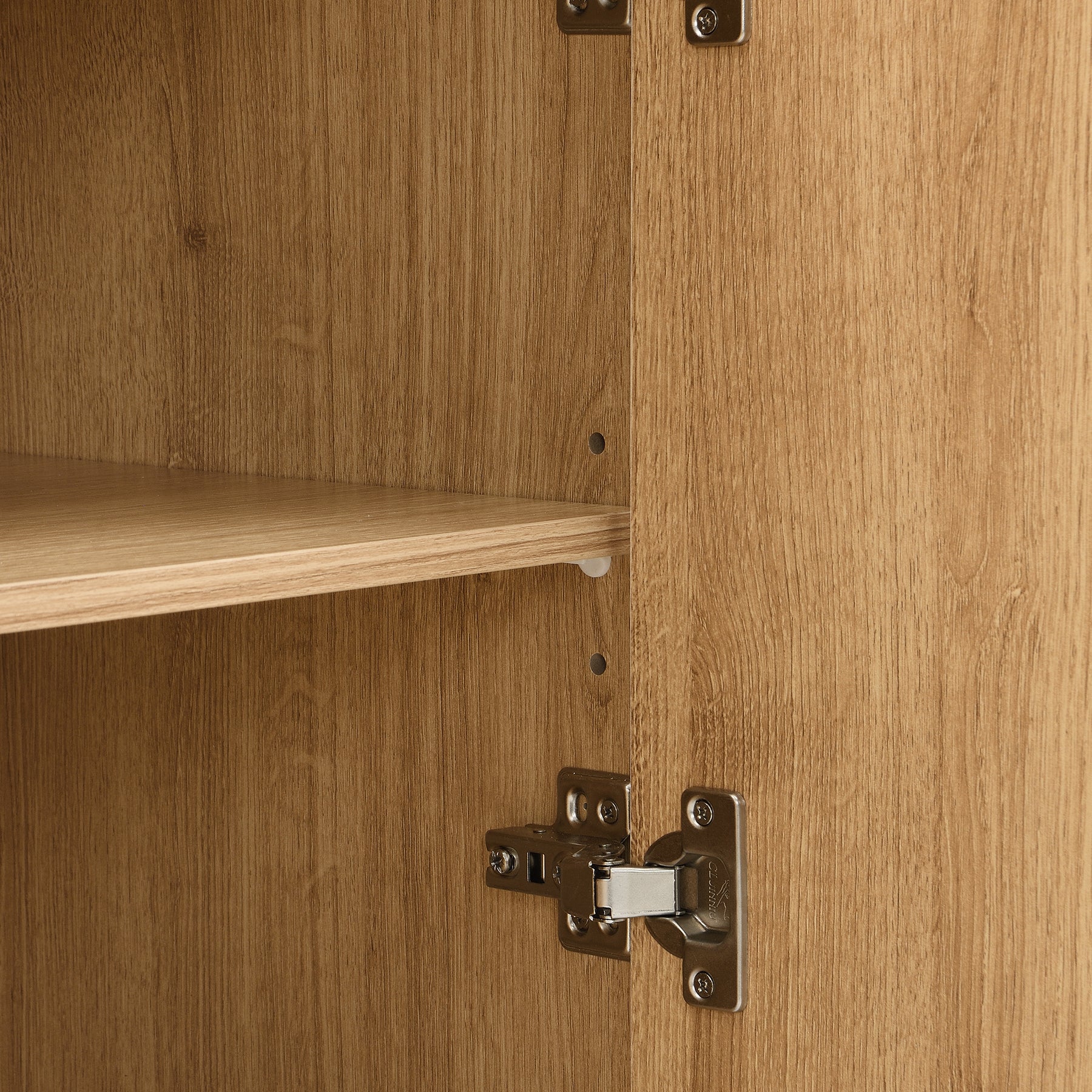 Grand espace de rangement flexible : les quatre portes de l'armoire donnent accès à un vaste espace intérieur avec des étagères réglables, permettant de personnaliser le rangement selon les besoins.