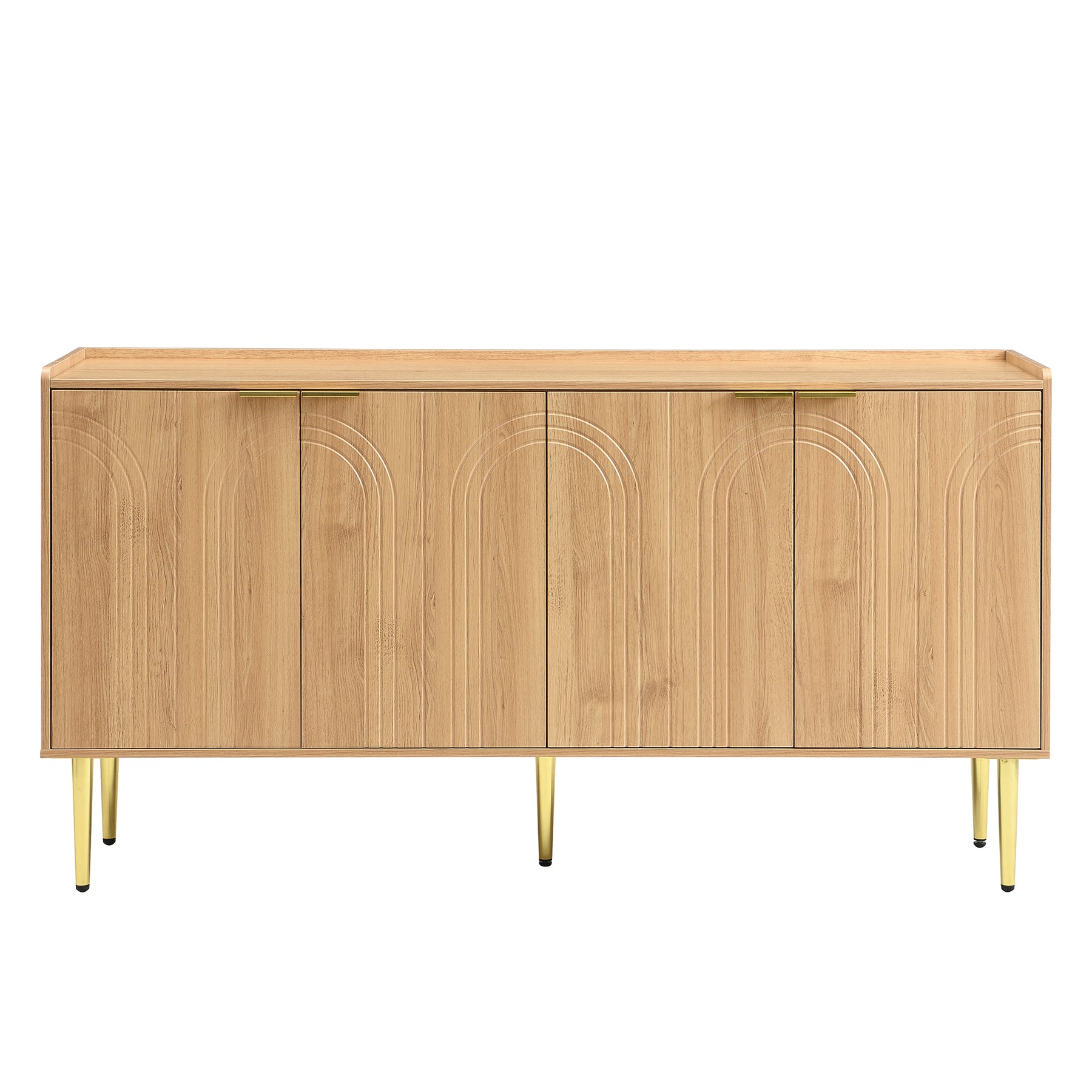 Buffet effet bois avec portes arquées sculptées, 4 portes et pieds en métal doré SORUSDOT