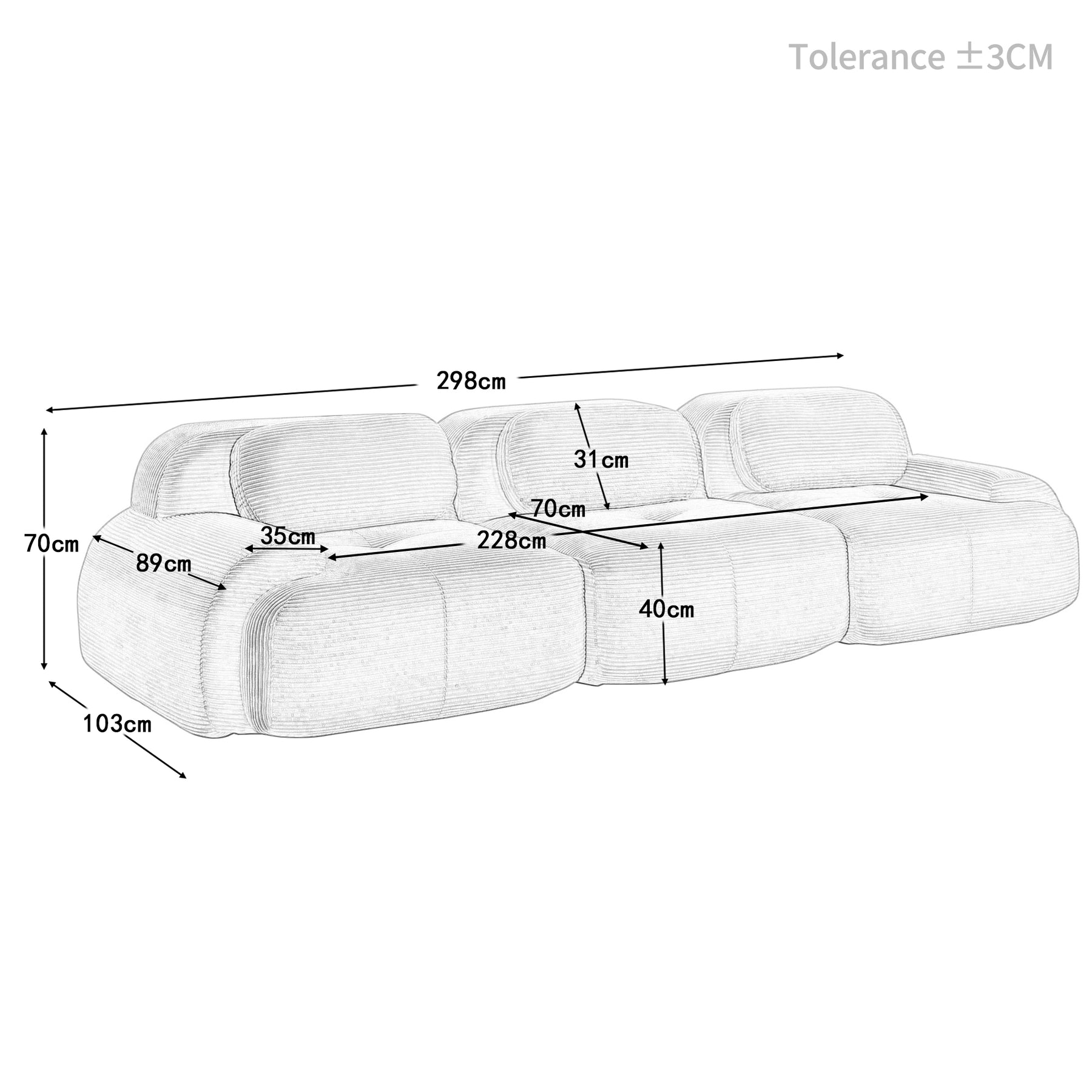 Dimensions du produit : 298*103*75 cm