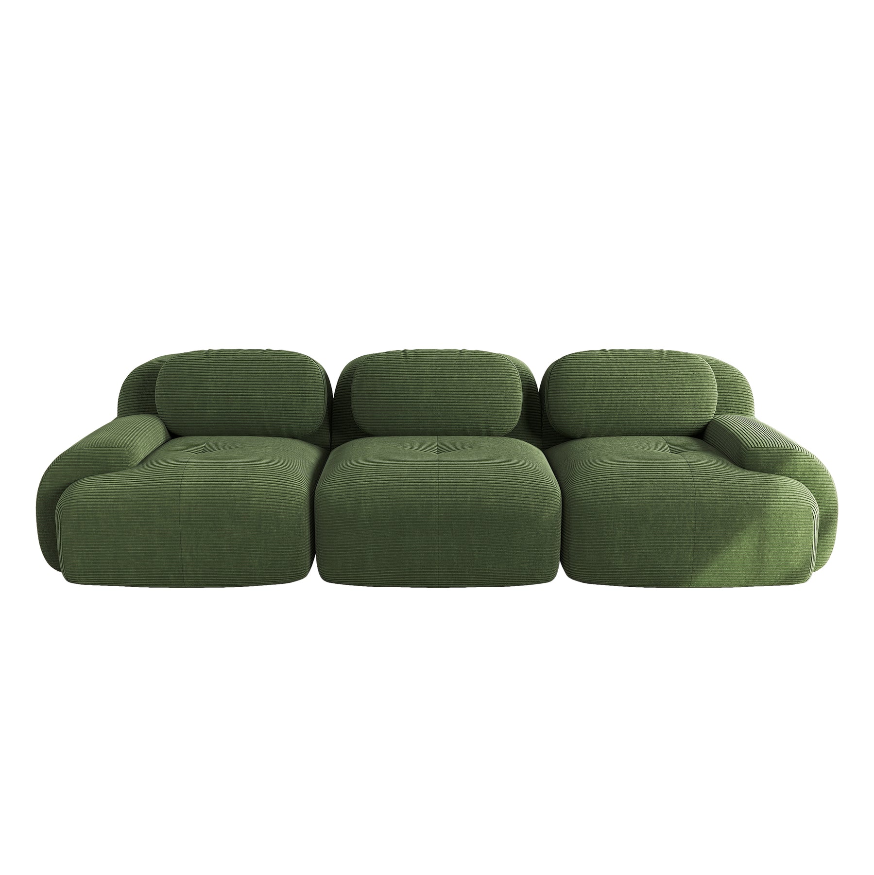 Canapé 3 places modulable en velours côtelé vert kaki et accoudoirs courbés, sans montage MERISTEM
