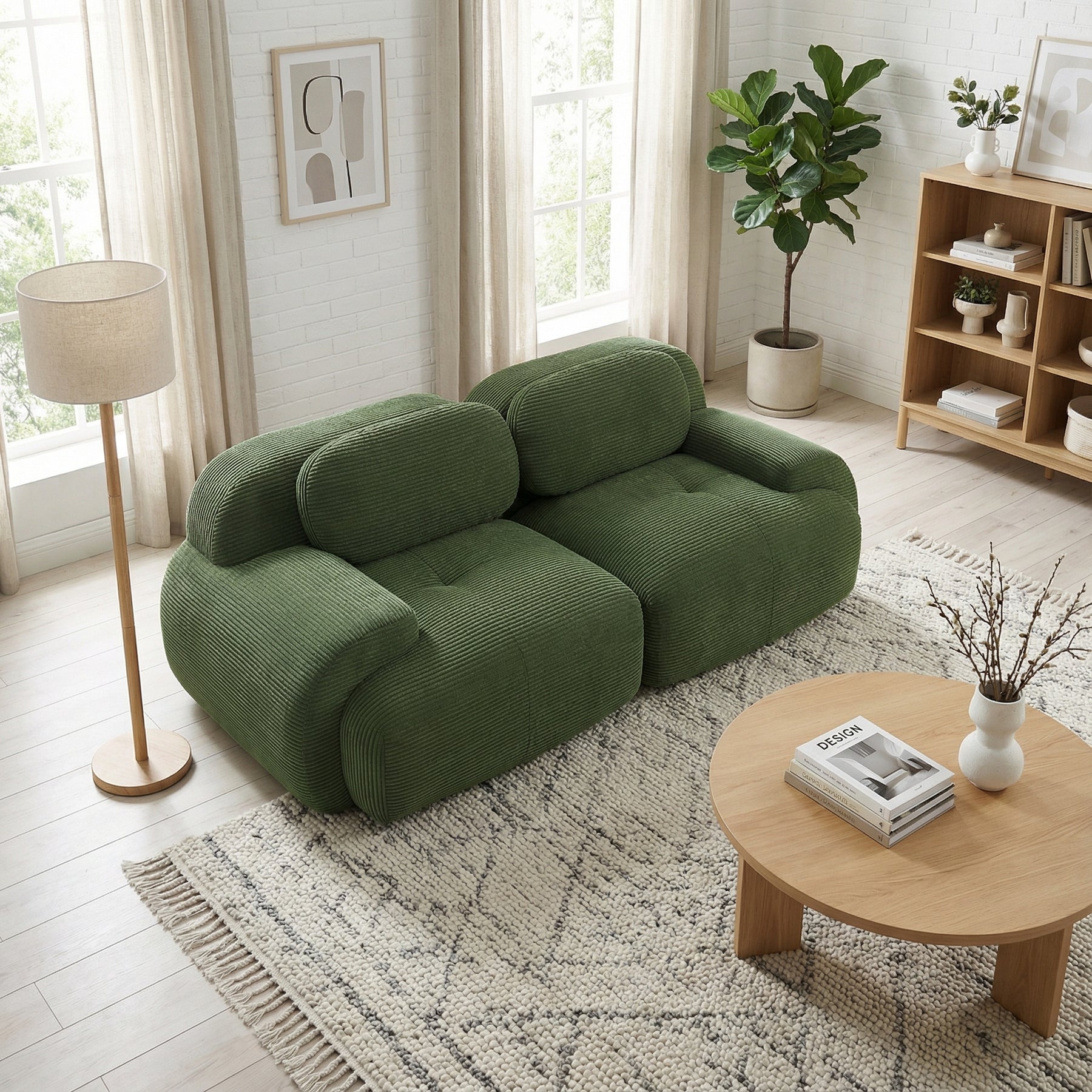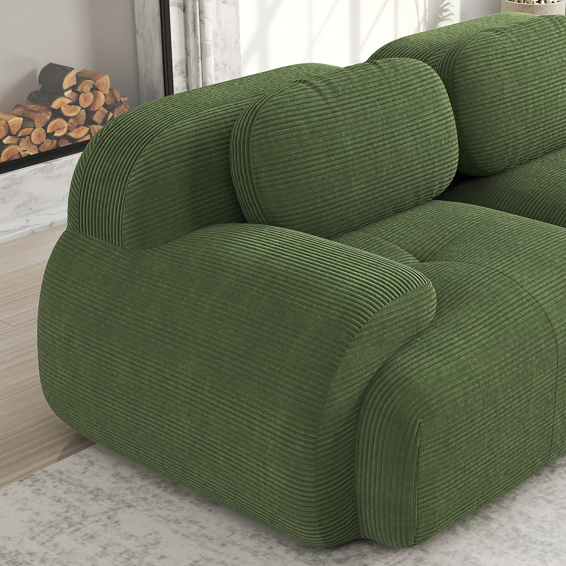 Canapé 2 places loveseat modulable en velours côtelé vert kaki avec accoudoirs courbés, confort premium, sans montage WRINKLECREST