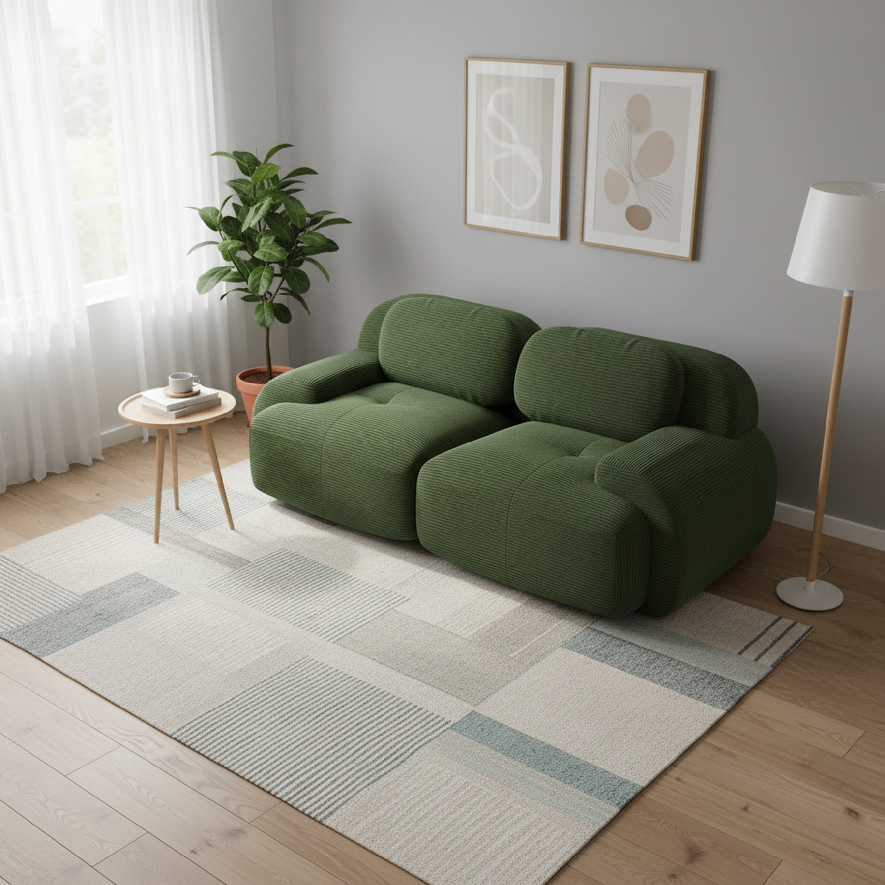 Ce canapé modulaire sophistiqué en velours côtelé vert apporte une touche d'élégance contemporaine et une polyvalence exceptionnelle à votre intérieur. conçu pour offrir un confort luxueux grâce à son rembourrage haute densité et son tissu soyeux, il s'adapte parfaitement à votre salon, chambre ou salle de cinéma privée sans nécessiter de montage complexe. sa conception intelligente inclut une base antidérapante pour une stabilité totale et des lignes incurvées qui invitent à la détente, créant ainsi un espace de repos chaleureux et esthétique qui s'intègre harmonieusement à tout style de décoration.