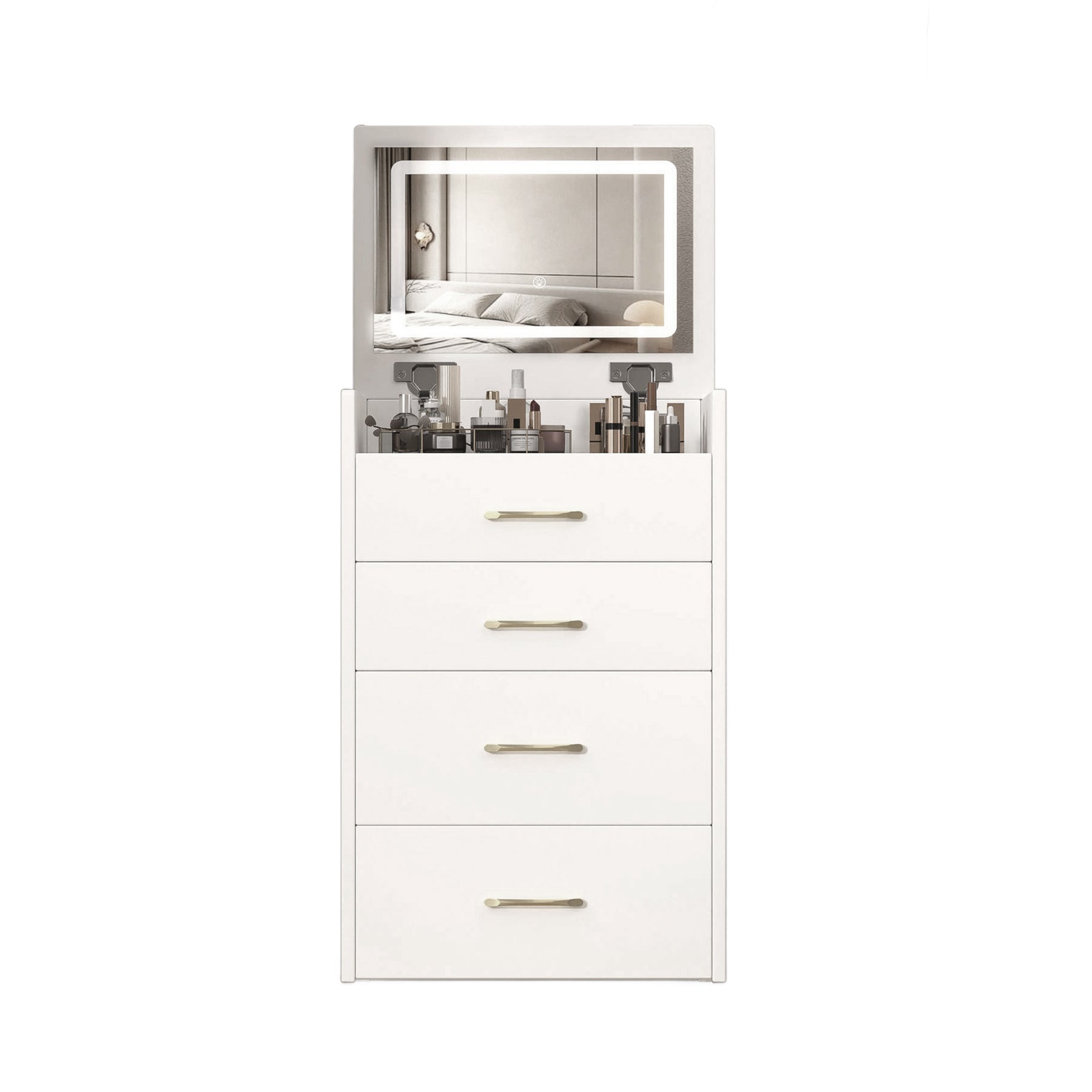 Vaste espace de rangement organisé : comprend des tiroirs, un organisateur de bijoux et un espace dissimulé pour les produits de soin de grande taille.