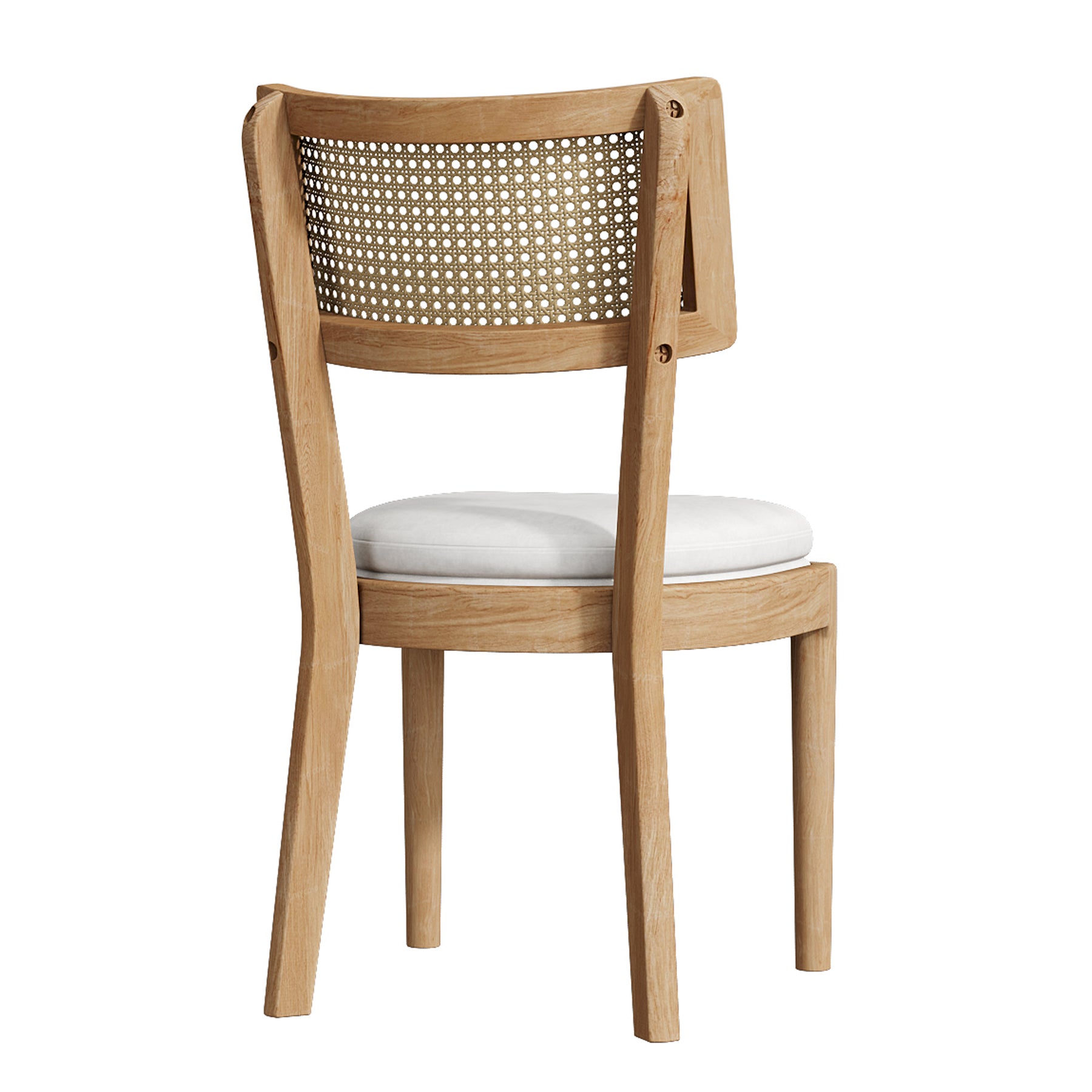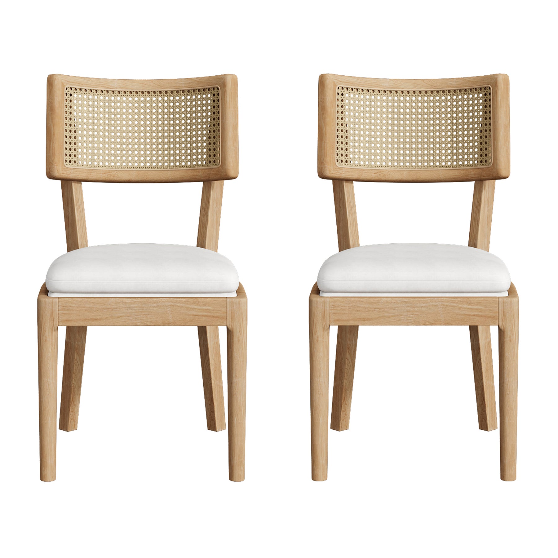 Lot de 2 chaises de salle à manger en bois massif, dossier en rotin tressé et coussins en lin beige COTYLEDON