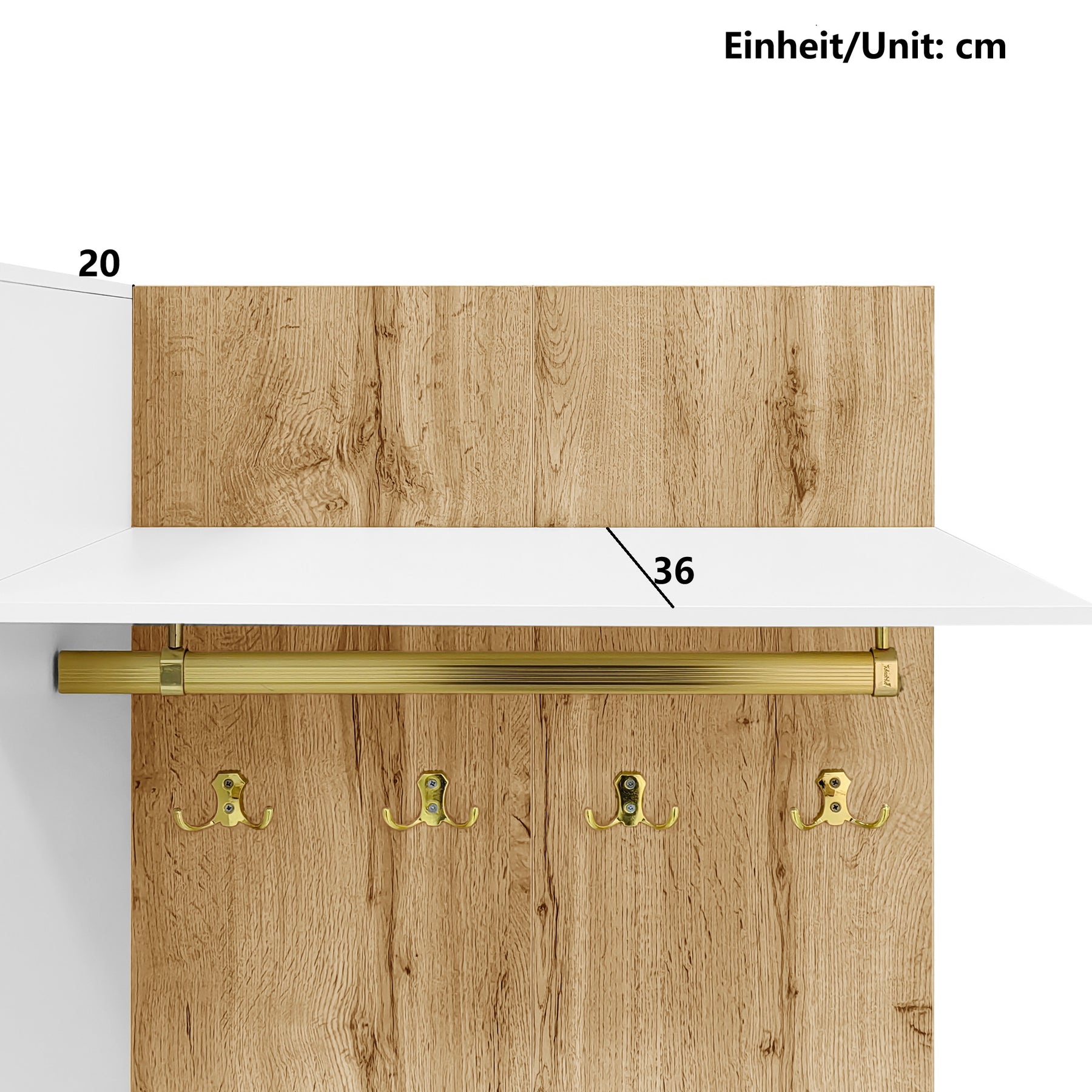 Vestiaires à l'entrée blanc effet bois avec miroir, éclairage LED et patères dorées ELEGANT SPHERE