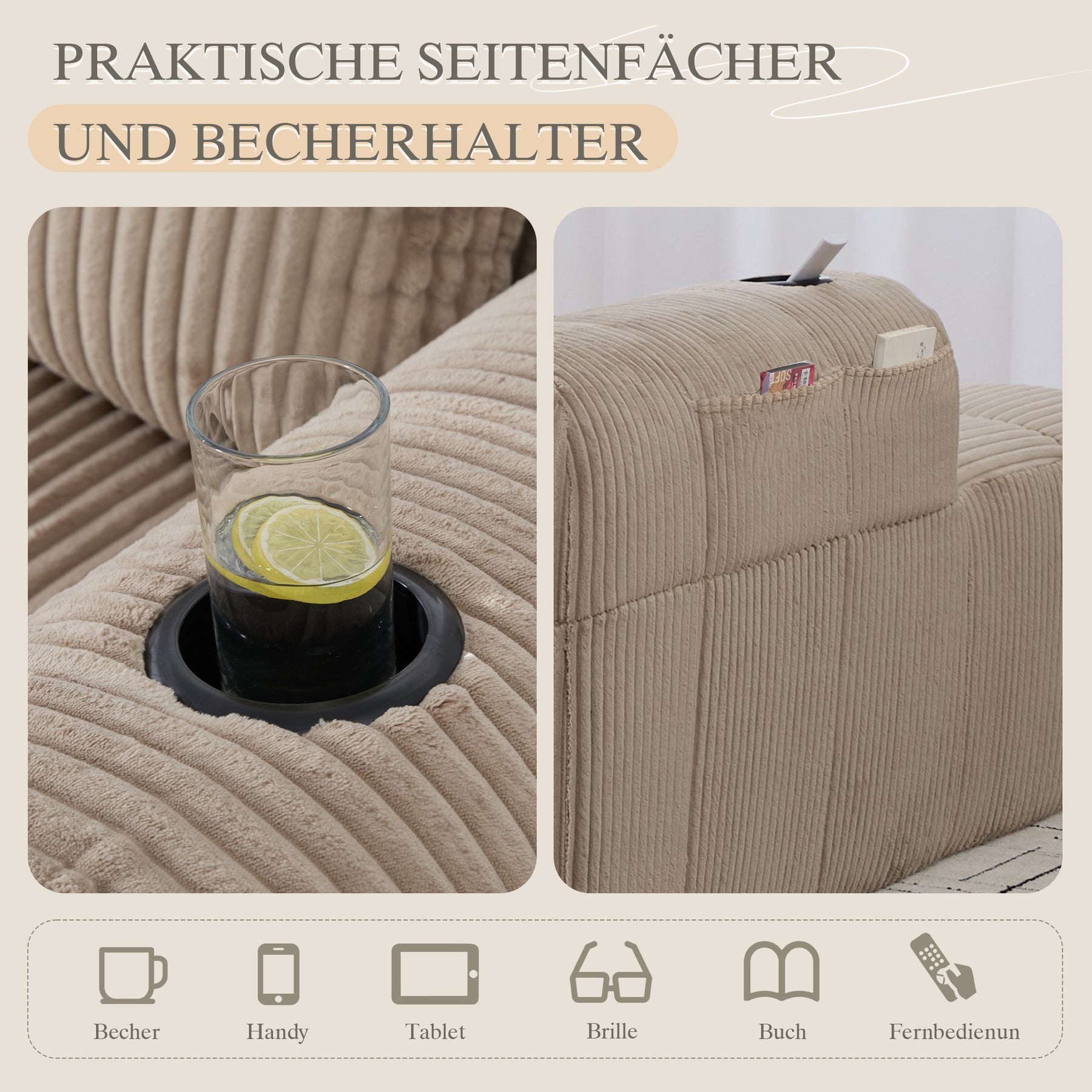 Méridienne droite en velours côtelé beige modulable avec porte-gobelet et poche latérale LAGOONOVAL