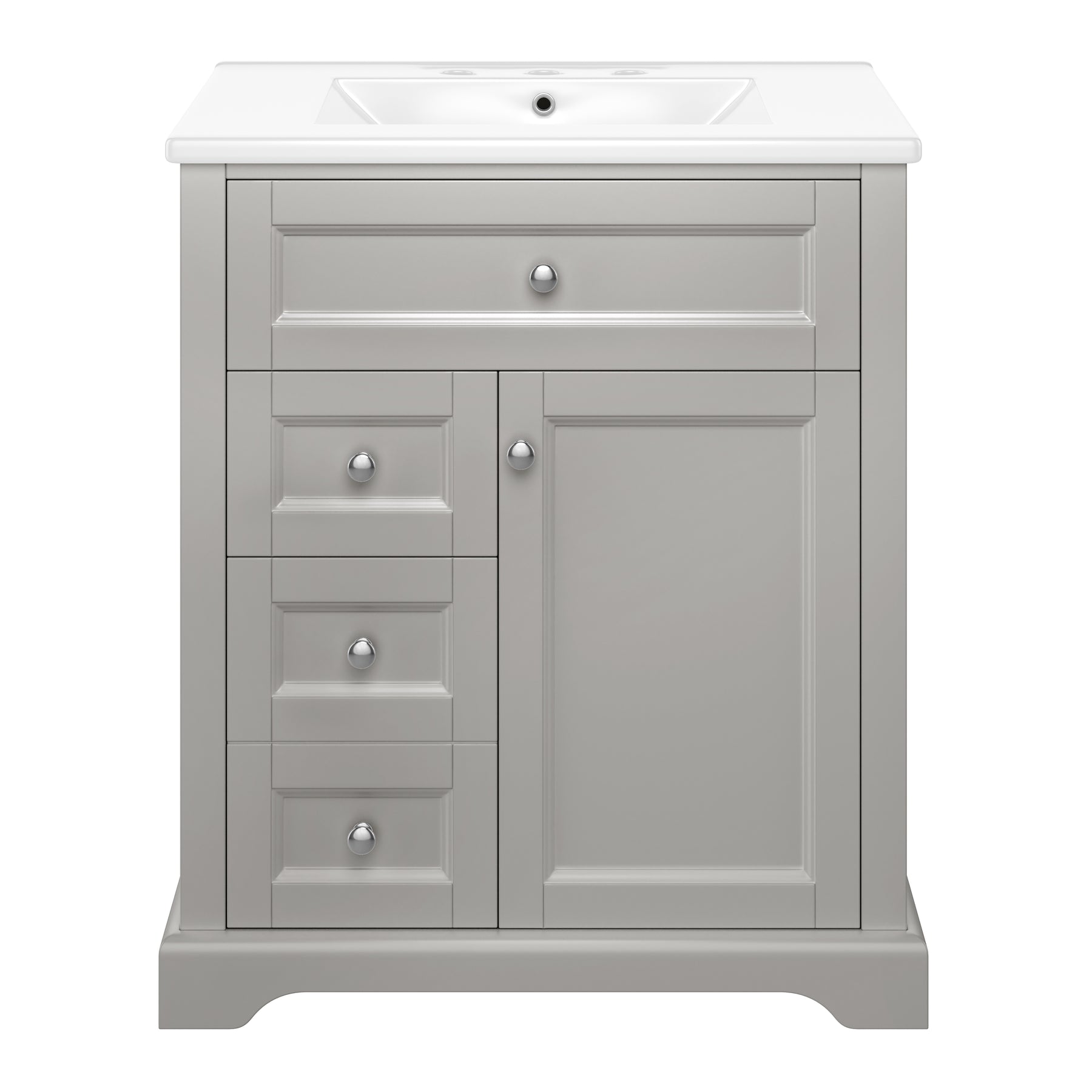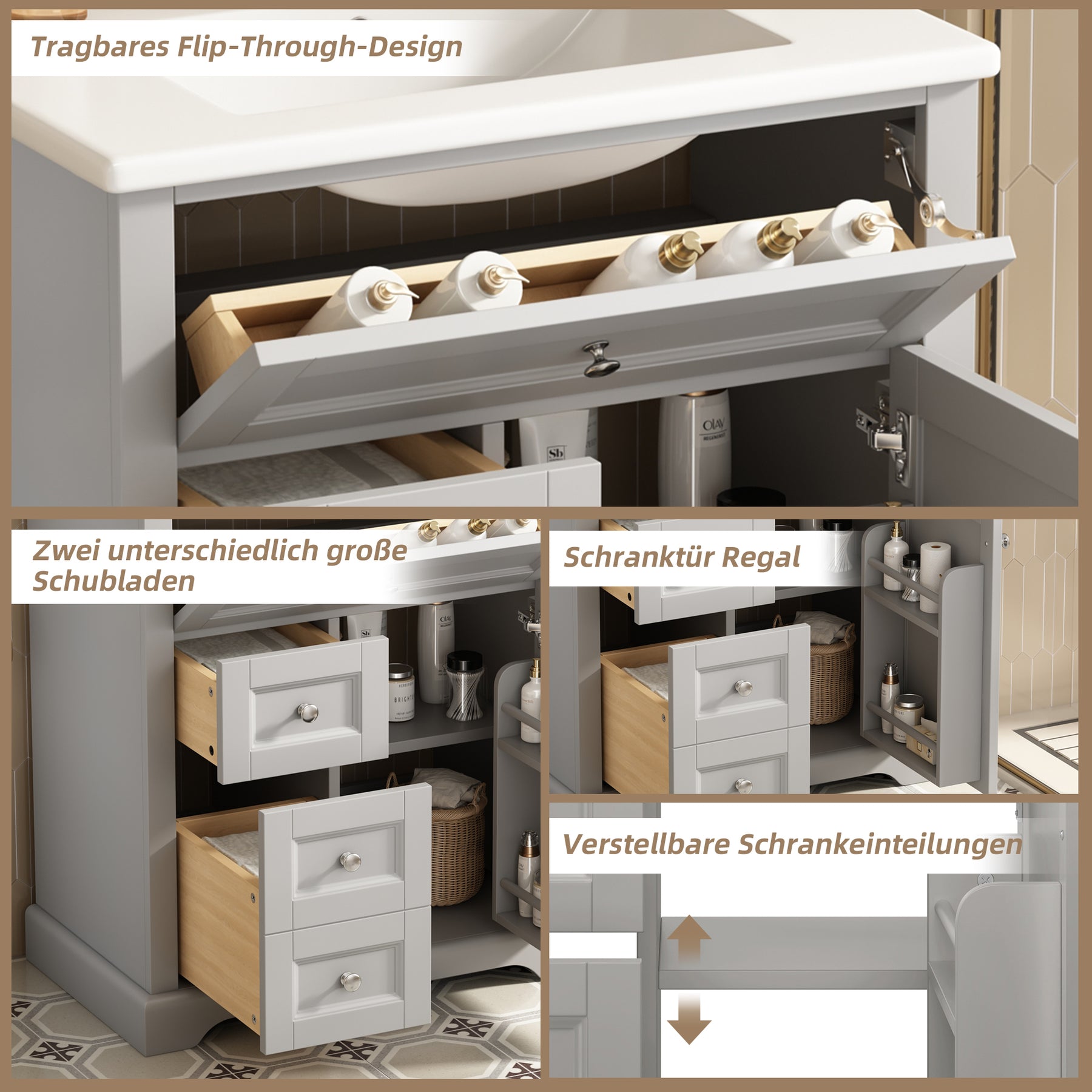 Meuble vasque gris sur pied, vasque en céramique intégrée, tiroirs à fermeture amortie et rangement (robinet non inclus) REPLICAT