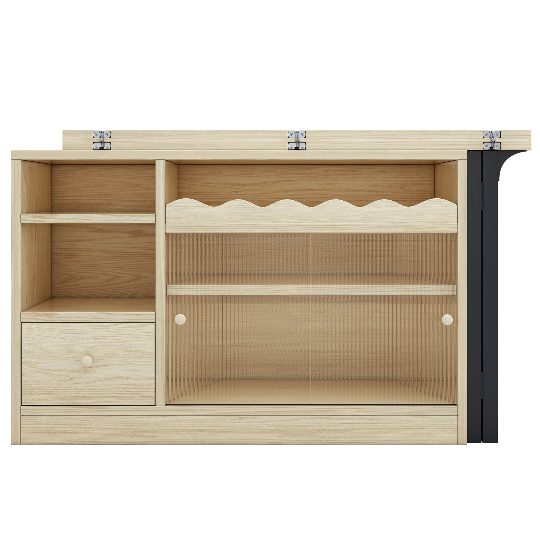 Rangement diversifié et élégant : comprend un tiroir, des étagères ouvertes et un compartiment fermé avec une porte coulissante en verre changhong, idéale pour les bouteilles et la vaisselle.