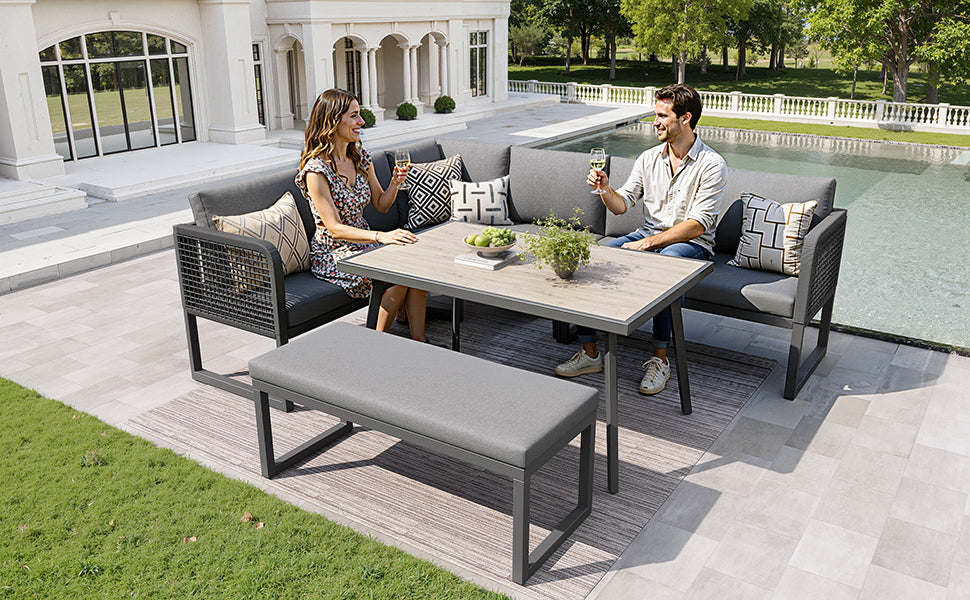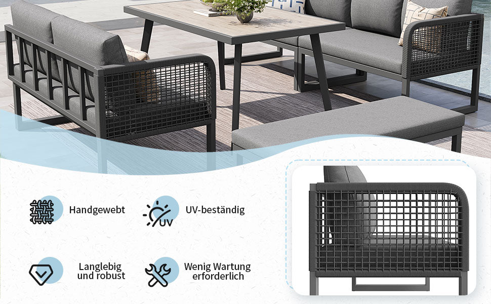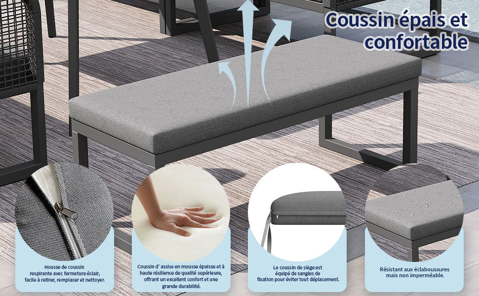 - Esthétique moderne et entretien simplifié : Le tressage soigné et la couleur grise élégante s’intègrent harmonieusement à tous les styles d’extérieur. Les housses déperlantes et zippées facilitent le nettoyage et assurent un aspect impeccable au fil des saisons.