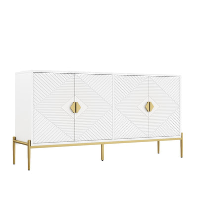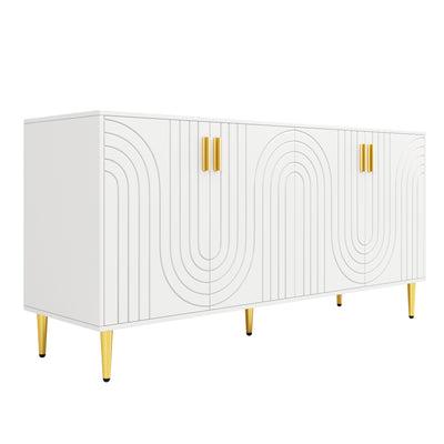 Buffet moderne blanc laqué motif floral pieds et poignées plaqués dorés GRIGAETS