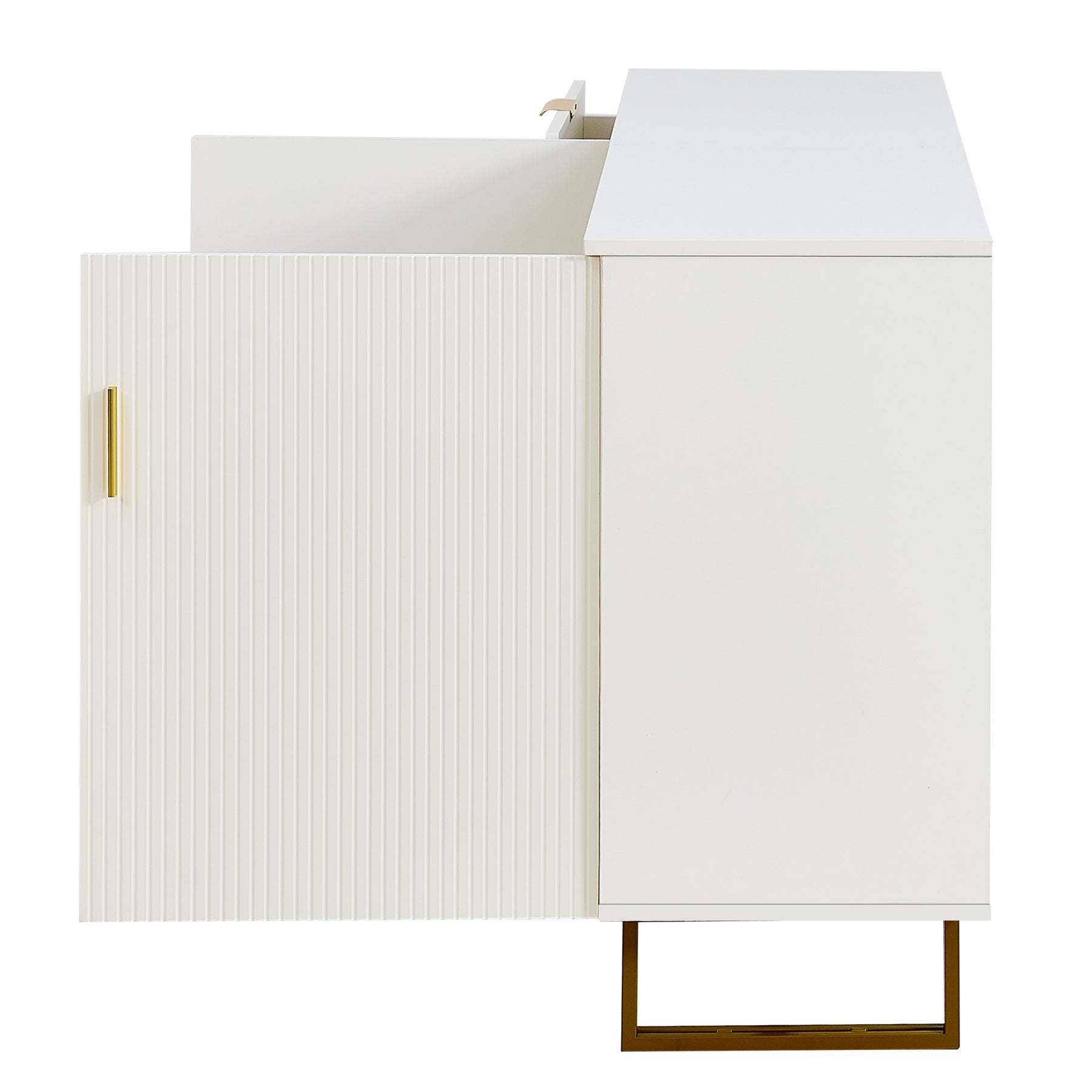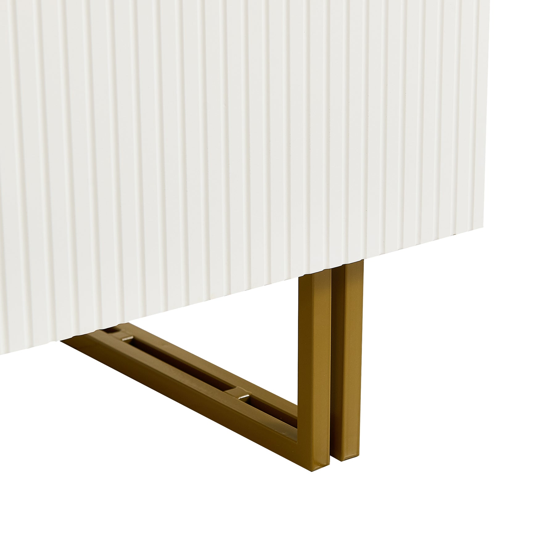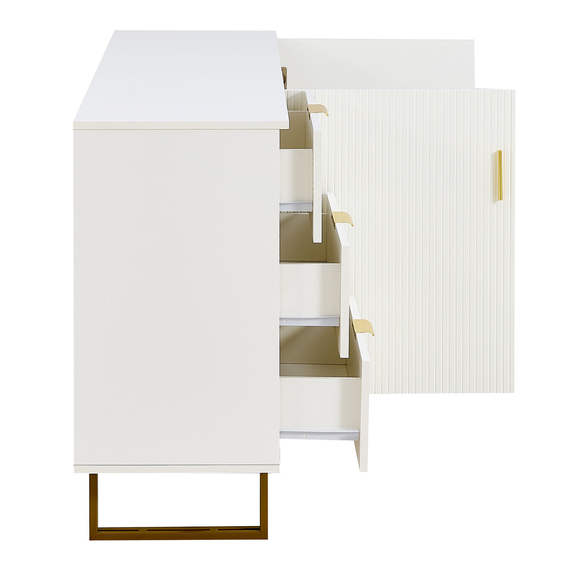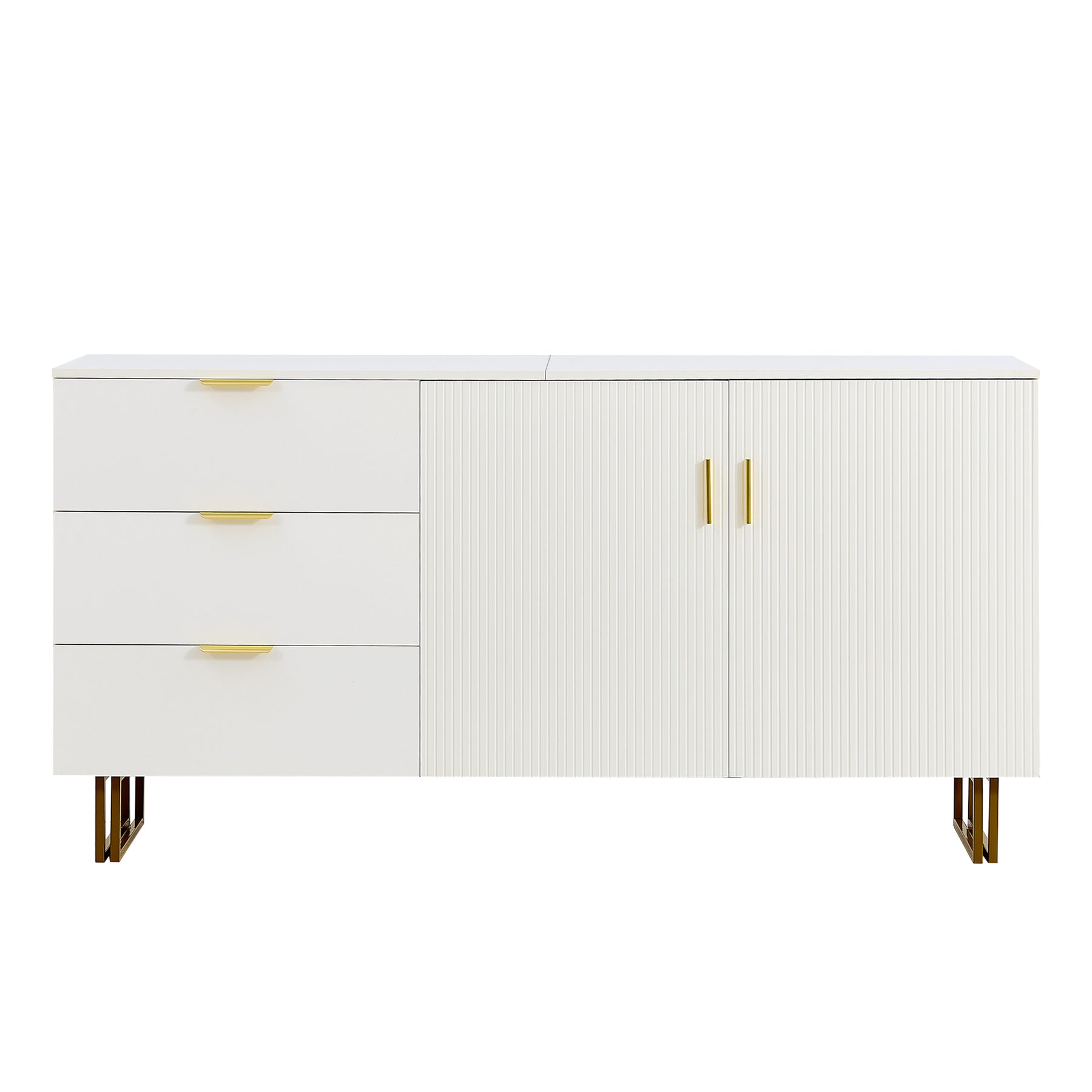 Buffet blanc laqué avec rainures verticales, tiroirs et accents dorés - design moderne FULLERENE