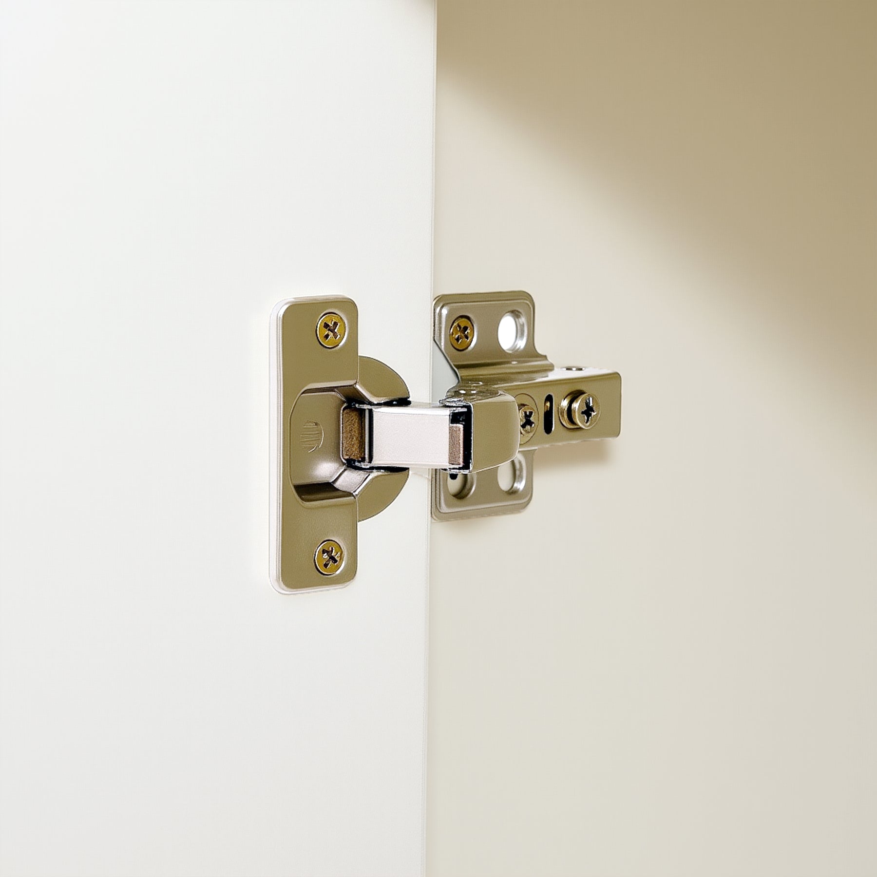 Design moderne et lumineux: Finition blanche élégante avec une façade texturée (rainures verticales) et des accents dorés sophistiqués.