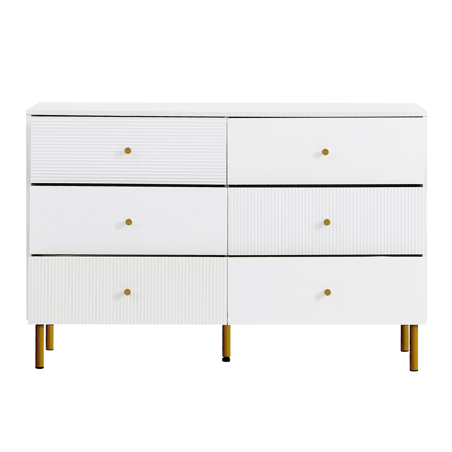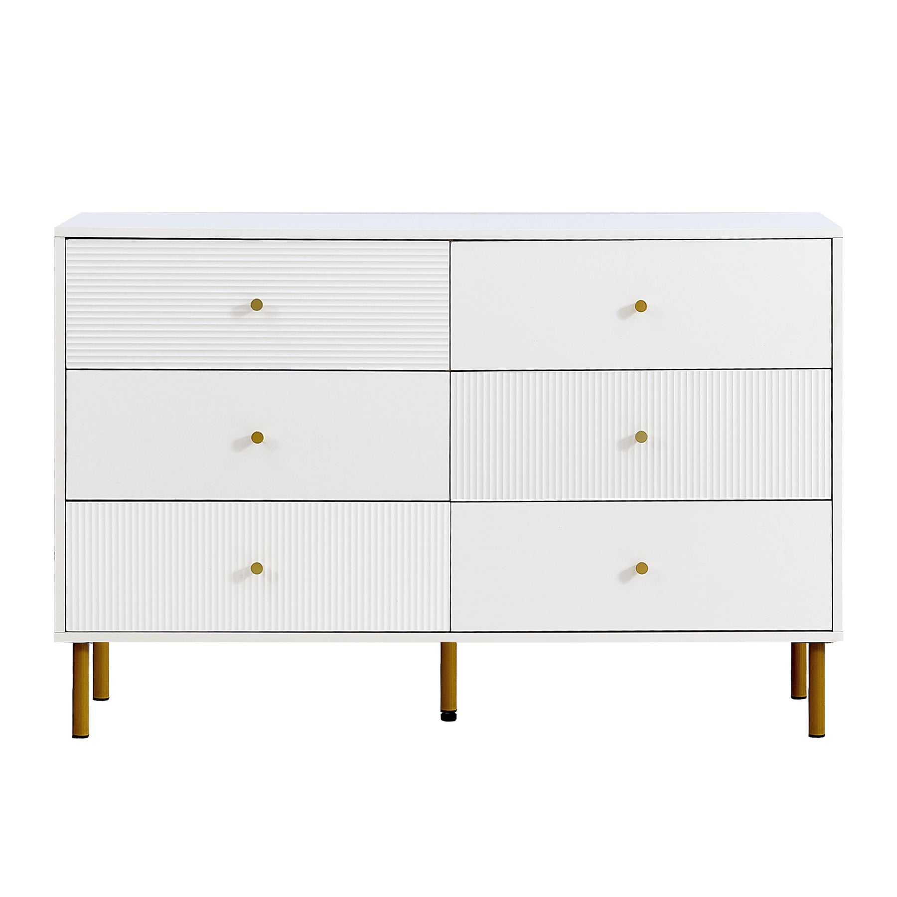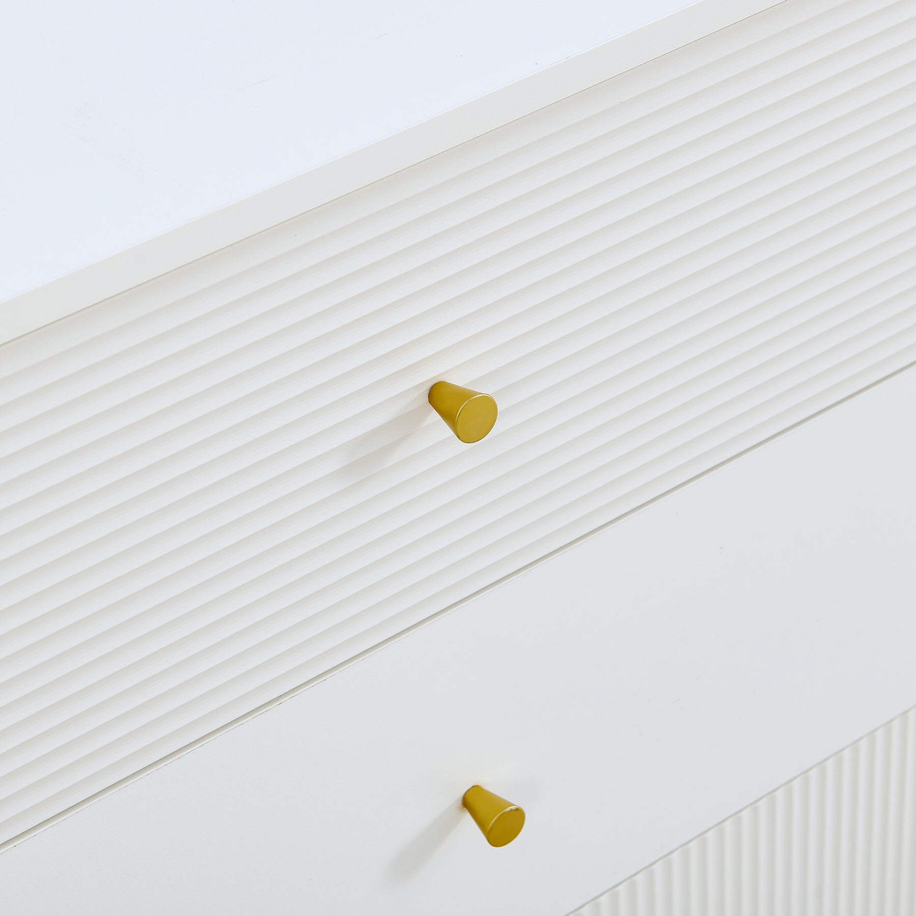 Buffet modern blanc à 6 tiroirs avec façades texturées et poignées dorées CHROMAFLASH