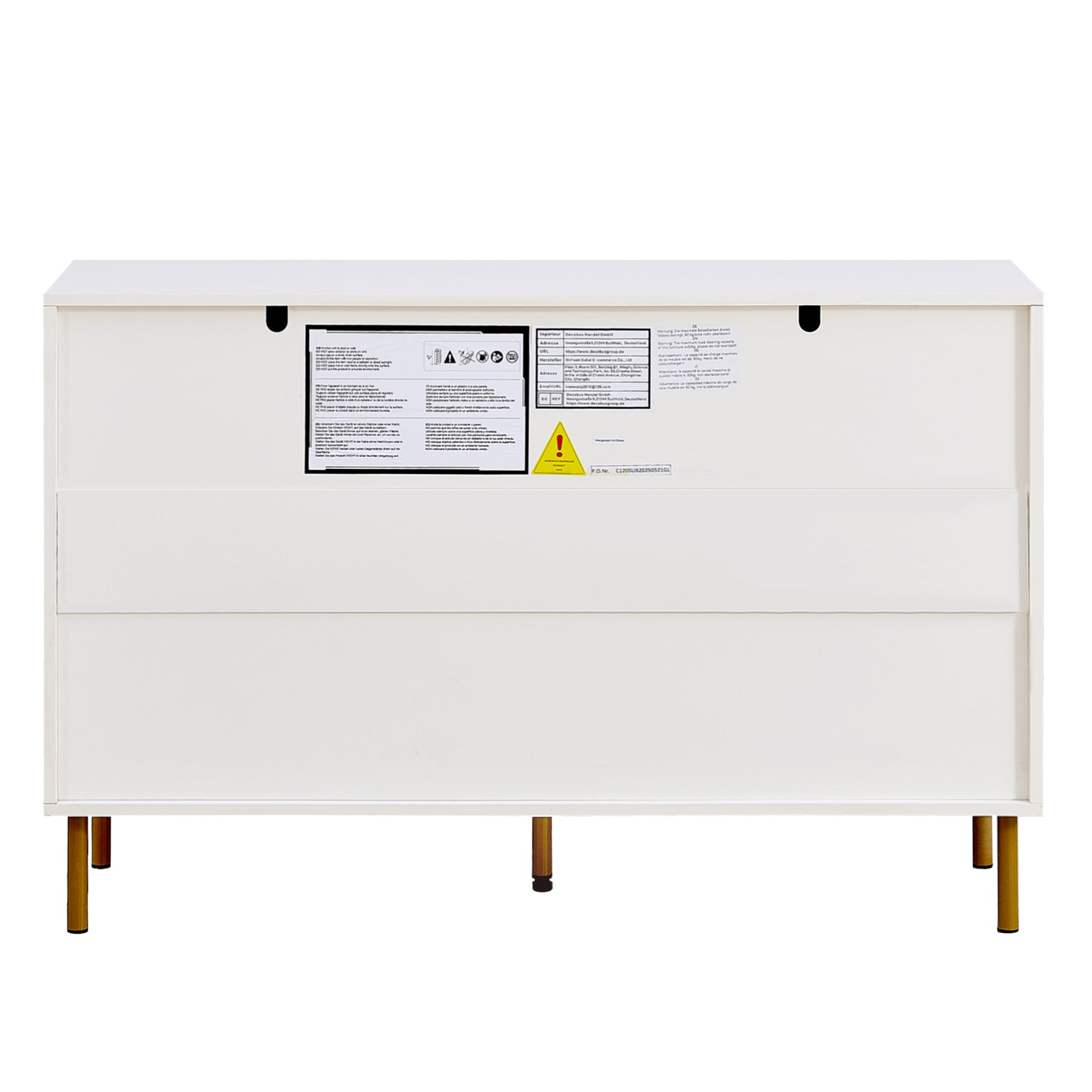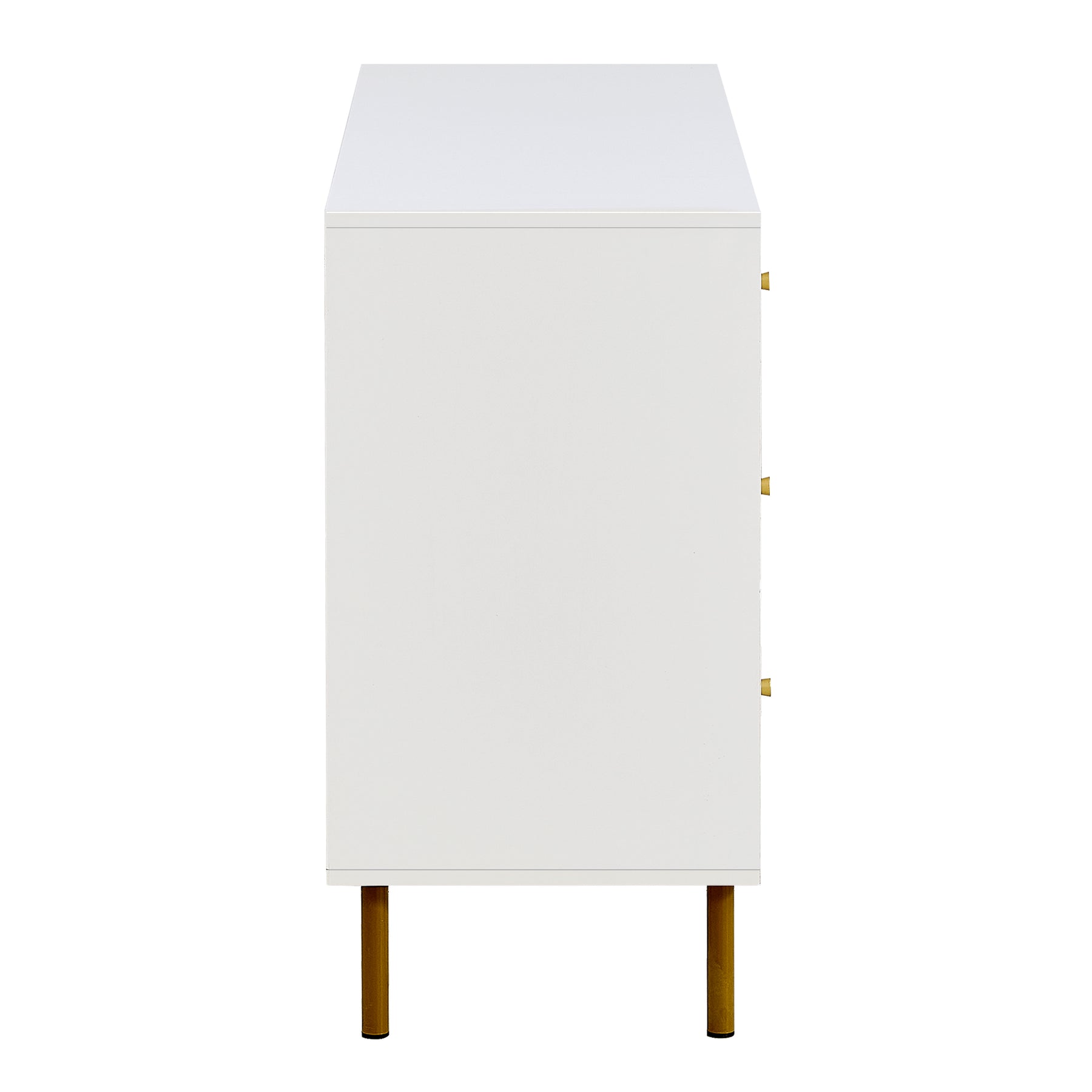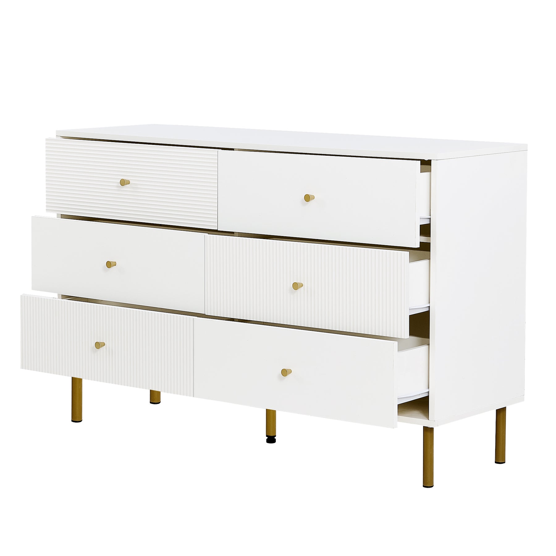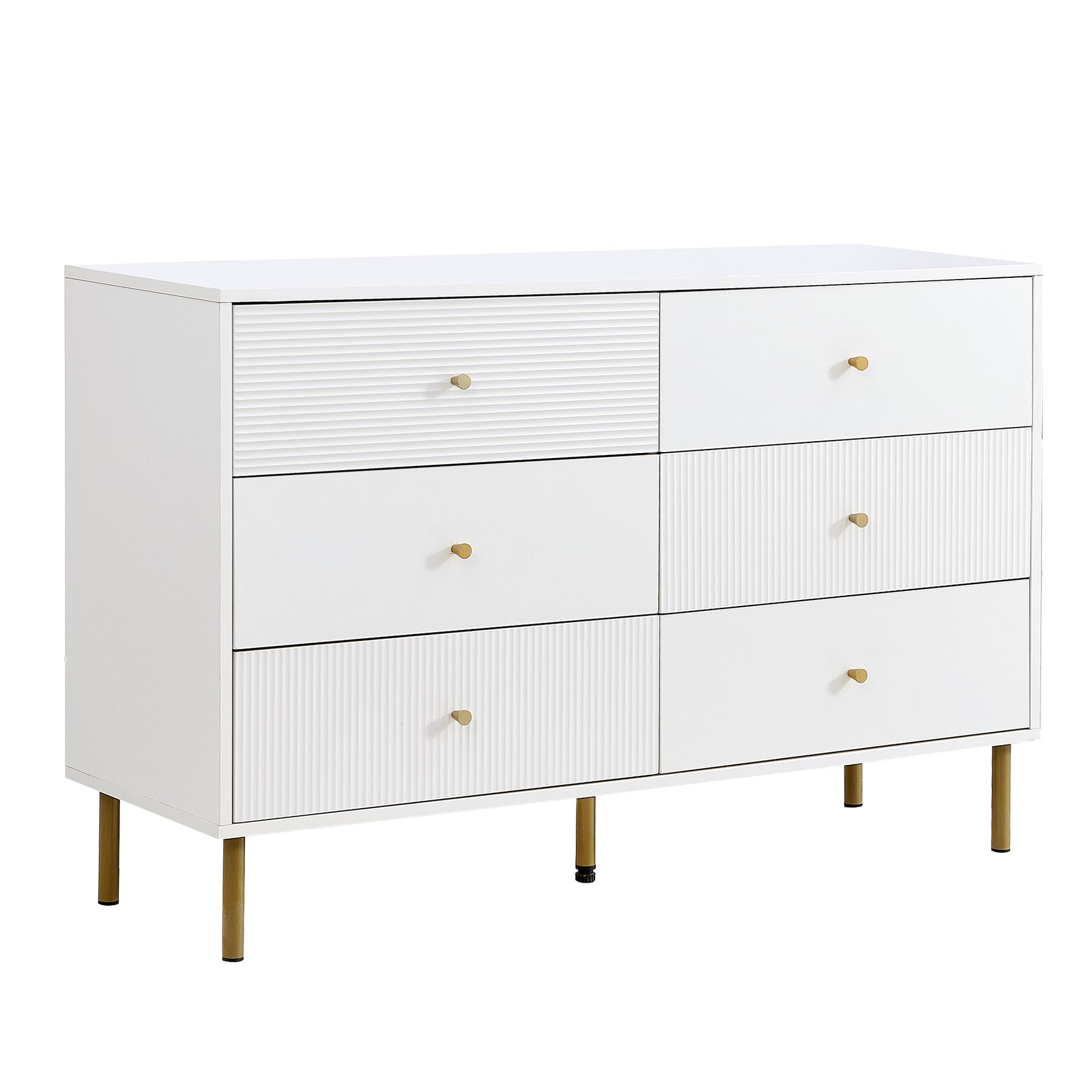 Buffet modern blanc à 6 tiroirs avec façades texturées et poignées dorées CHROMAFLASH