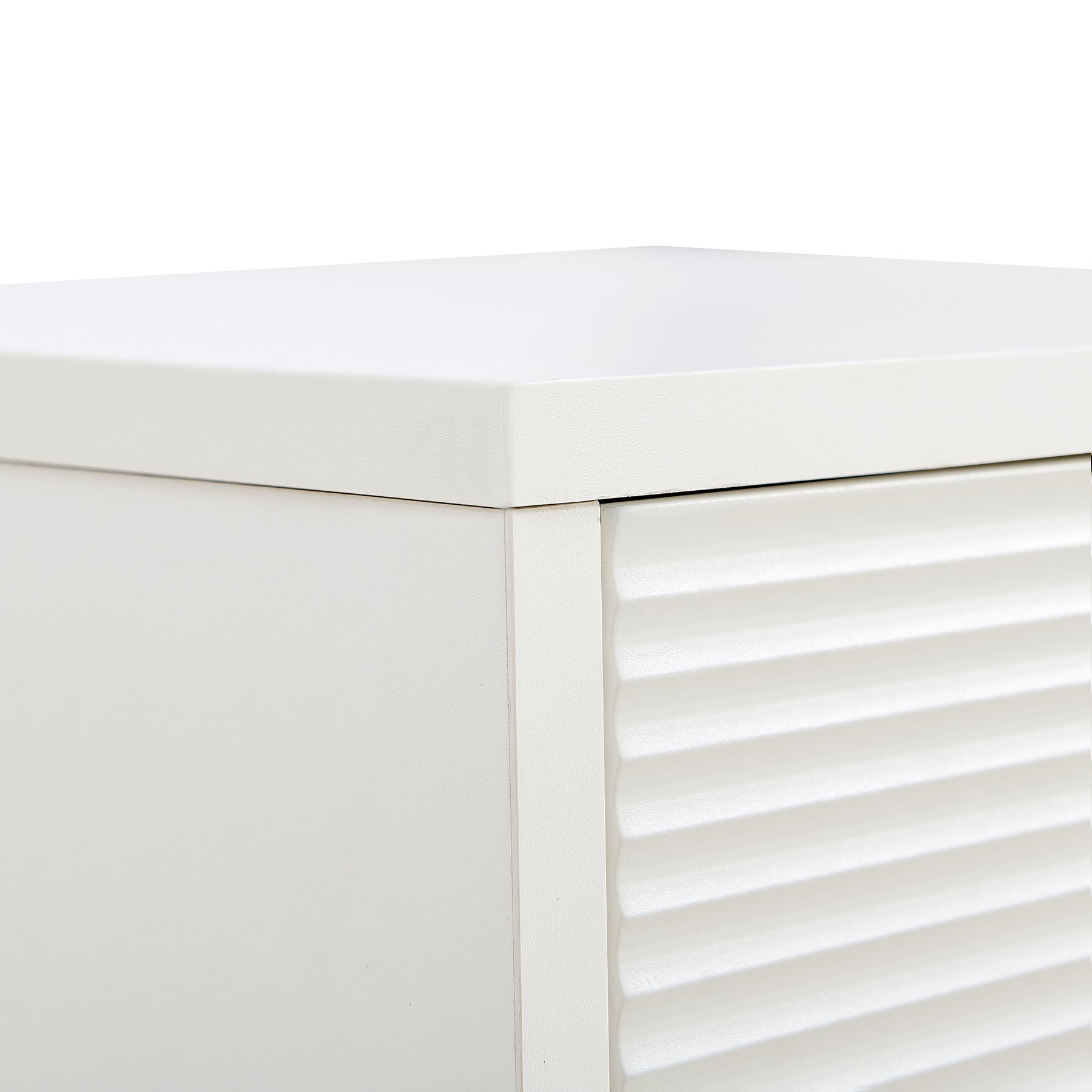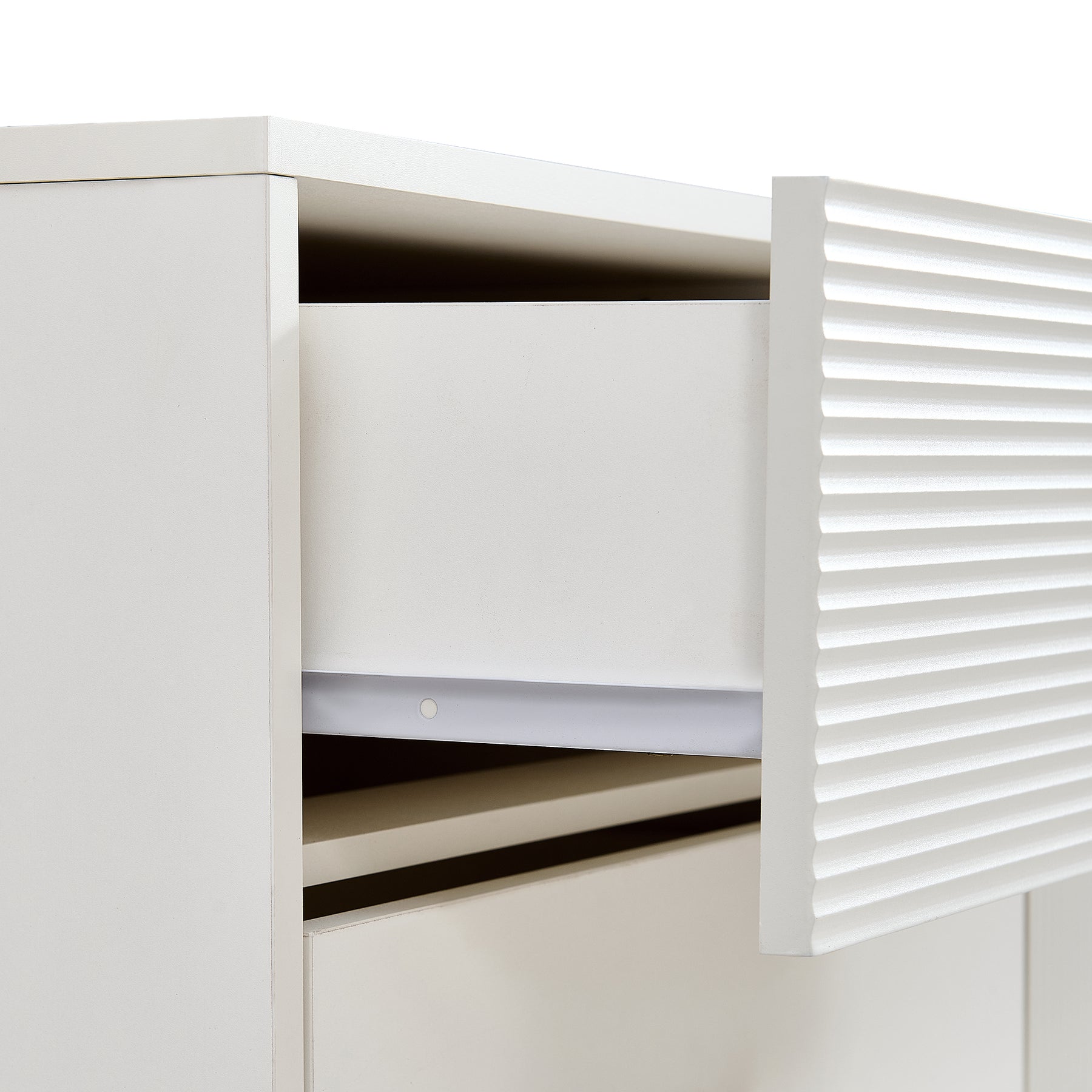 • Design contemporain unique: Finition blanche lumineuse avec des façades de tiroirs aux motifs texturés variés pour un look moderne.