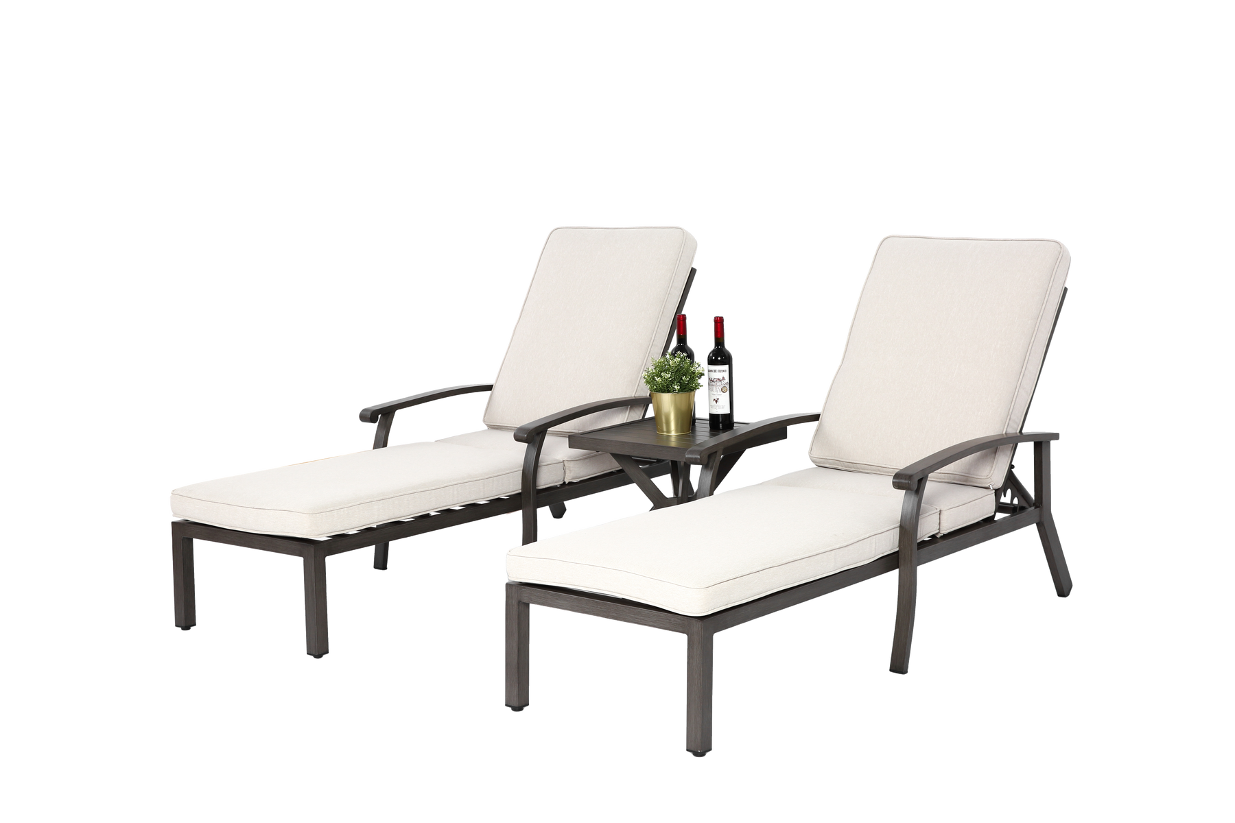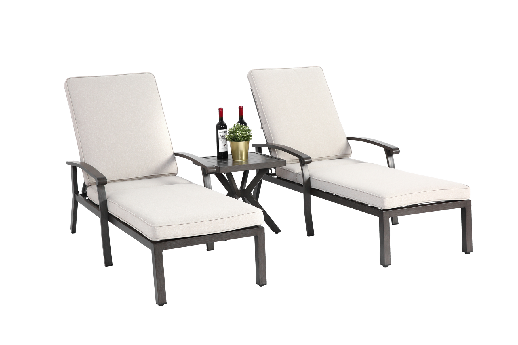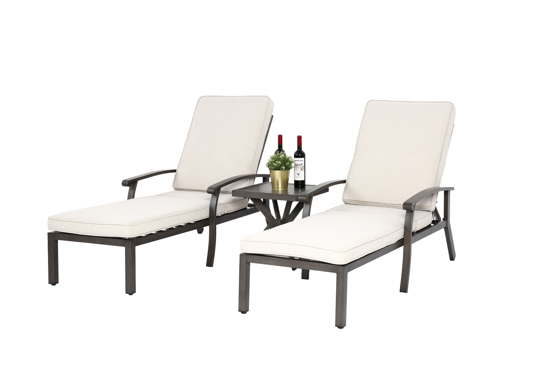 - Chaise longue de jardin aluminium : Structure robuste en aluminium avec finition bronze antique, résistante à la corrosion et aux intempéries, idéale pour une utilisation extérieure durable.