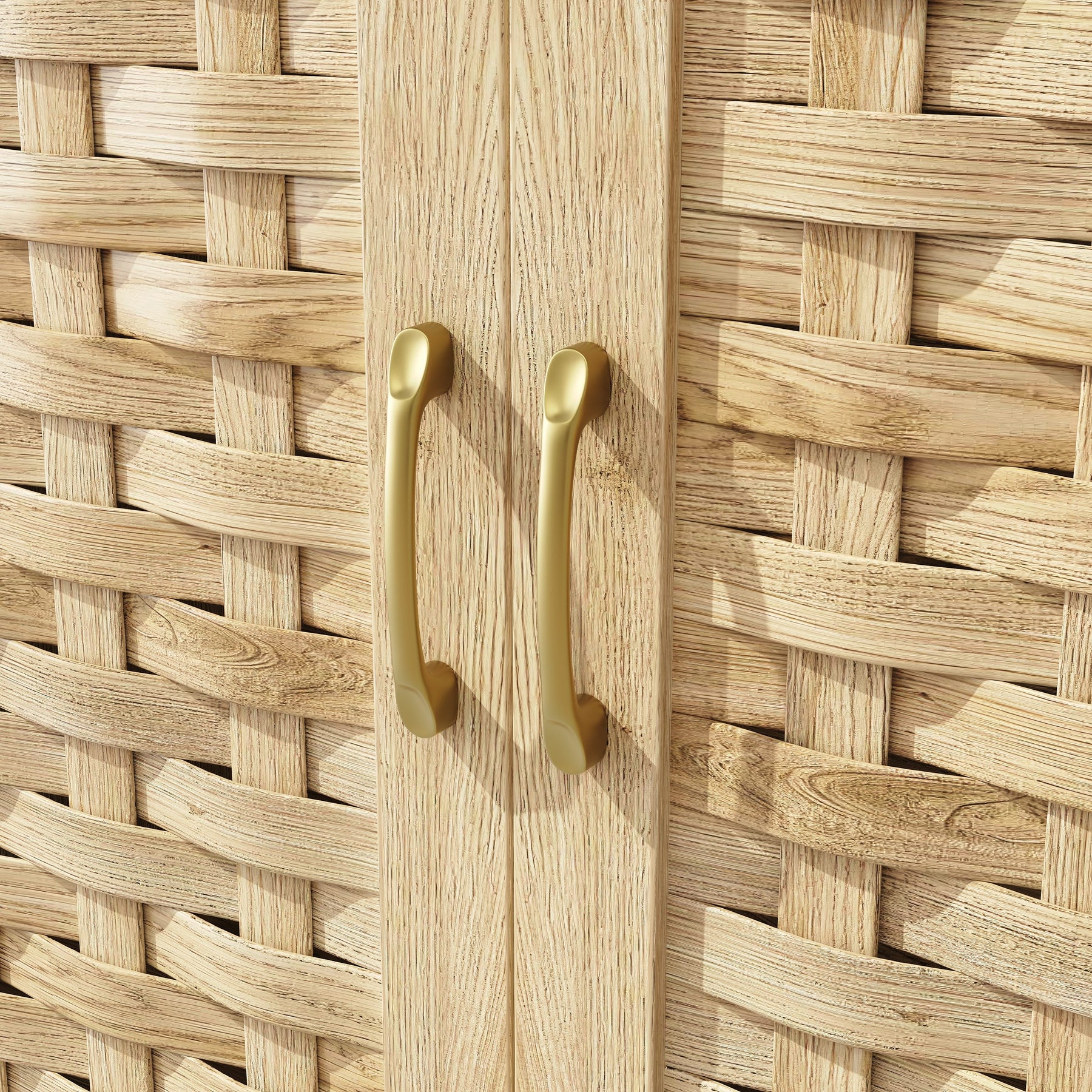 • Portes au design tressé unique : les façades des armoires imitent le tressage du rotin (en mdf avec verre), ajoutant une esthétique artisanale et luxueuse.