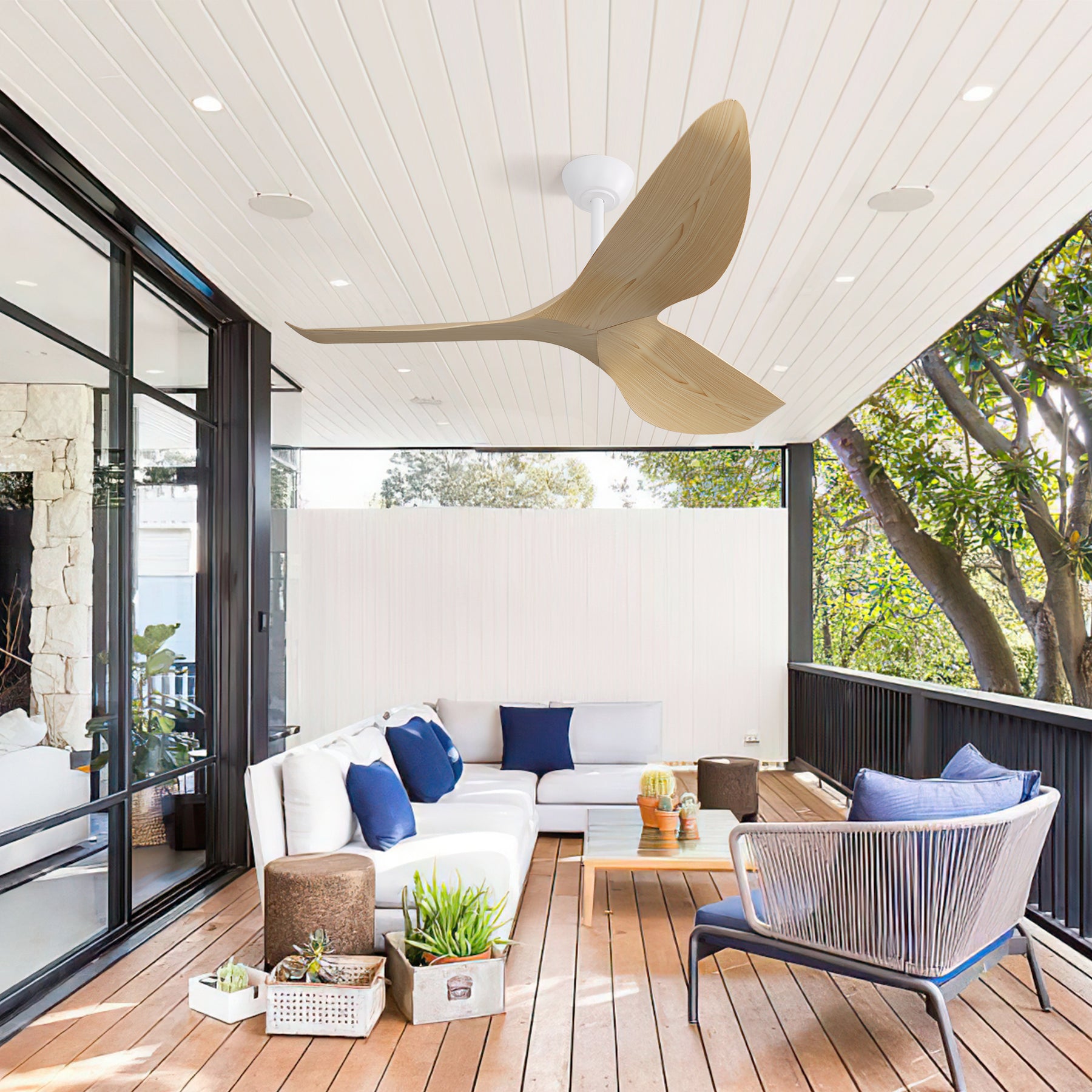 Ventilateur de plafond 132 cm blanc, 3 pales ABS, moteur DC 6 vitesses, télécommande RIDGESKY