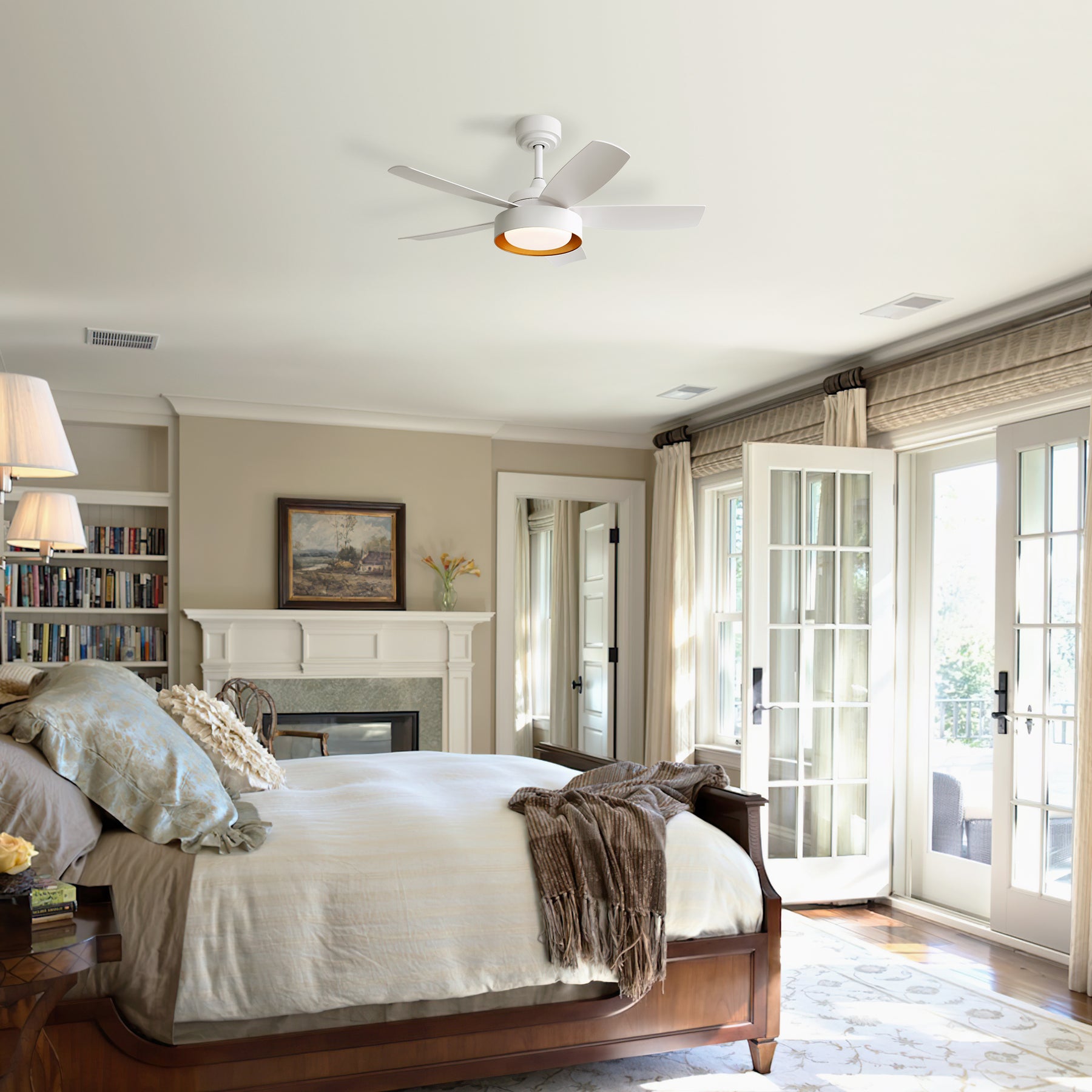Ventilateur de plafond blanc 42 pouces avec éclairage LED, télécommande, moteur DC réversible BRIARSTREAM