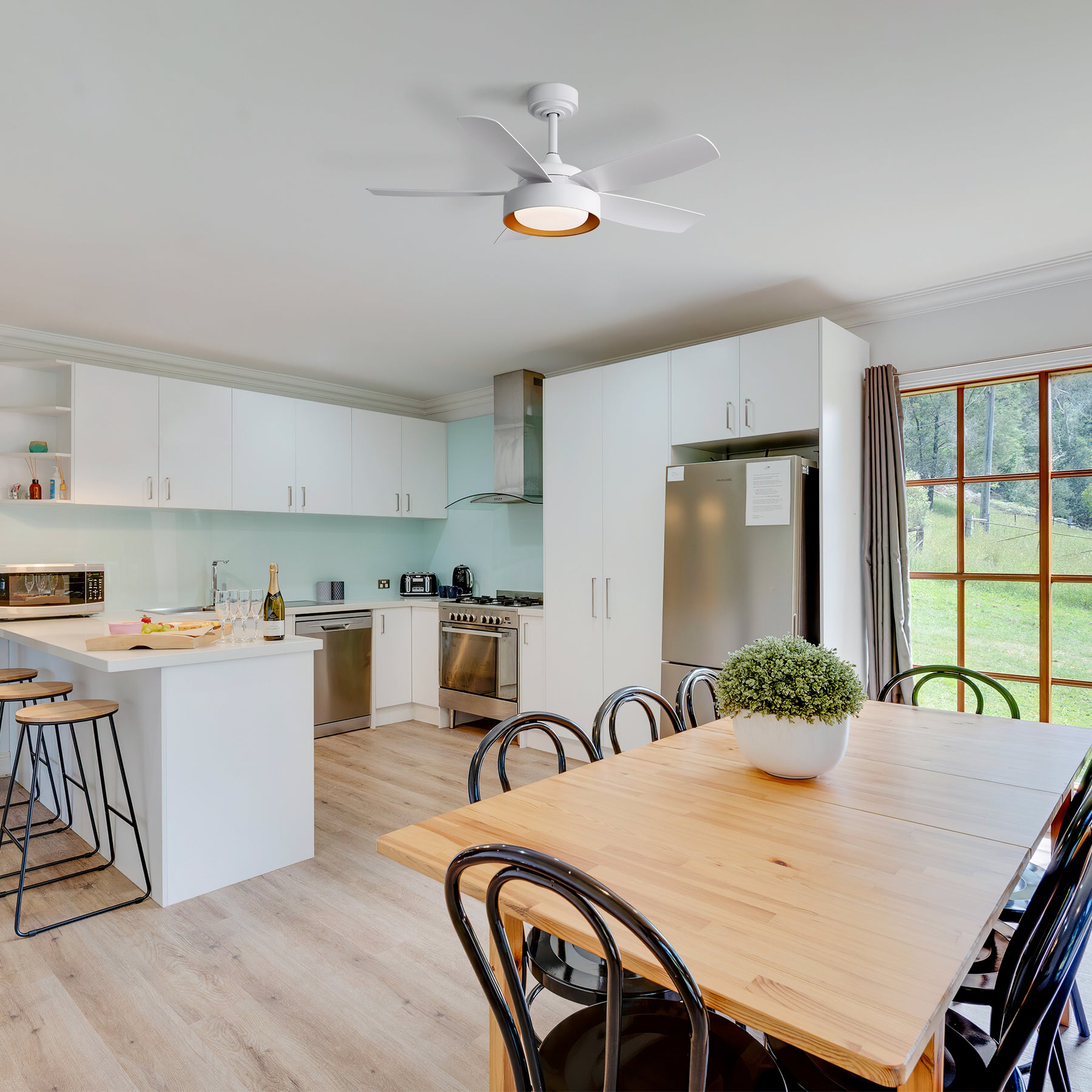 Imaginez une soirée estivale paisible dans votre chambre, où l'air circule doucement grâce à ce ventilateur de plafond silencieux. Avec sa lumière LED réglable, créez l'ambiance parfaite pour lire ou vous détendre. Pendant l'hiver, inversez simplement le sens de rotation pour répartir la chaleur de manière homogène et maximiser votre confort. Sa télécommande intuitive vous permet de tout contrôler sans quitter votre canapé. Son design élégant en blanc s'intègre harmonieusement à tous les styles d'intérieur, tandis que le moteur DC économe en énergie garantit des années de performance fiable et silencieuse. Profitez d'une atmosphère agréable toute l'année, dans la chambre, le salon ou le bureau, tout en embellissant votre espace avec une touche contemporaine.