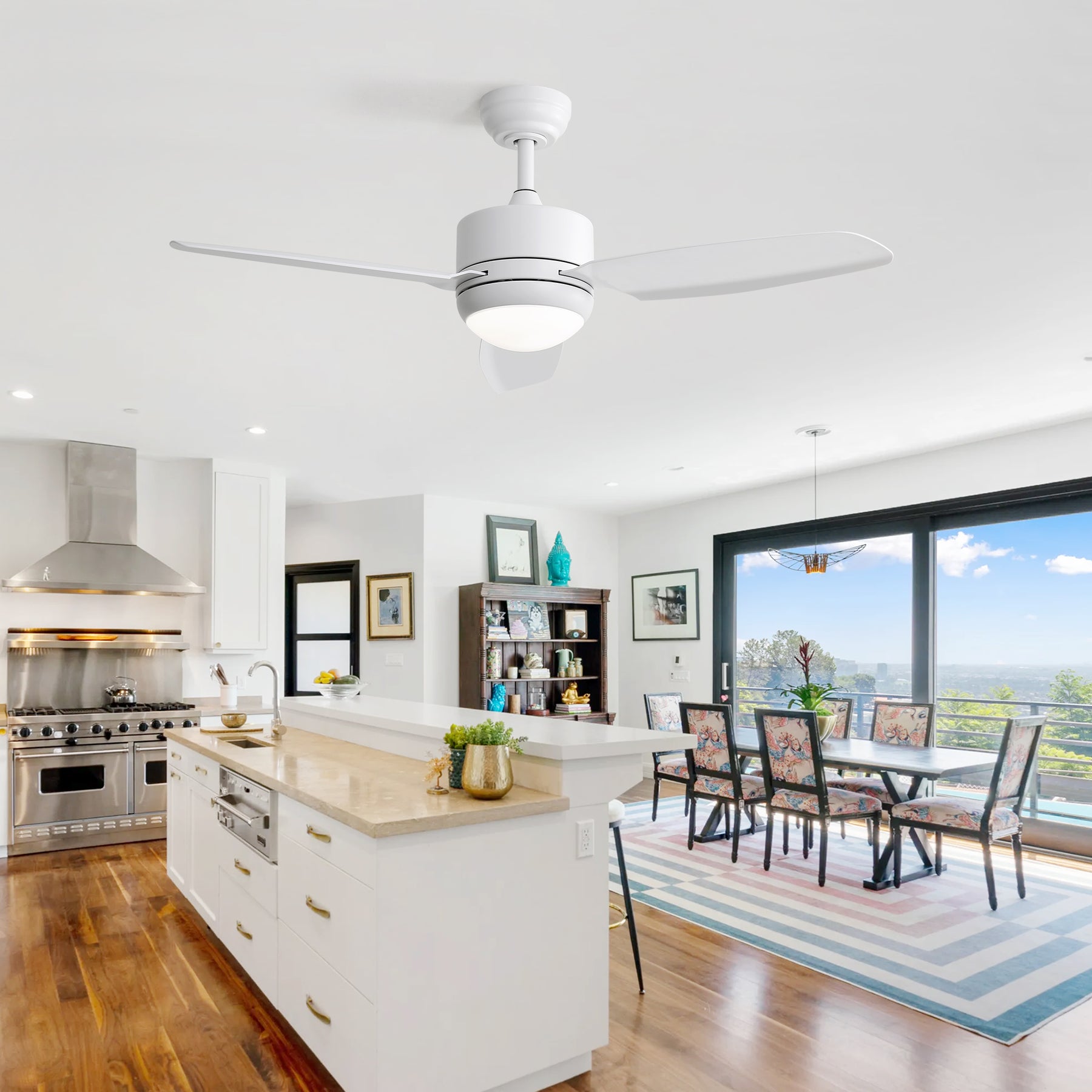 Imaginez une brise douce parcourant votre salon lors d’une chaude journée d’été, ou une chaleur agréablement répartie dans votre chambre en hiver. Grâce à notre ventilateur de plafond LED de 116 cm (46 pouces), chaque instant passé chez vous devient plus confortable et élégant. Son design épuré en blanc, agrémenté de trois pales en ABS haut de gamme, s’intègre harmonieusement dans tous les intérieurs modernes, de la salle à manger à la terrasse couverte.