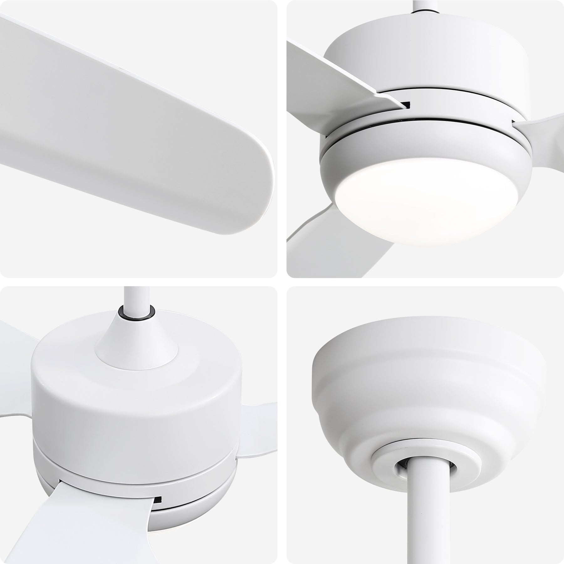 Ventilateur de plafond LED 116 cm blanc, 3 pales ABS, 6 vitesses, moteur DC silencieux, lumière réglable, télécommande PEAKBLOOM