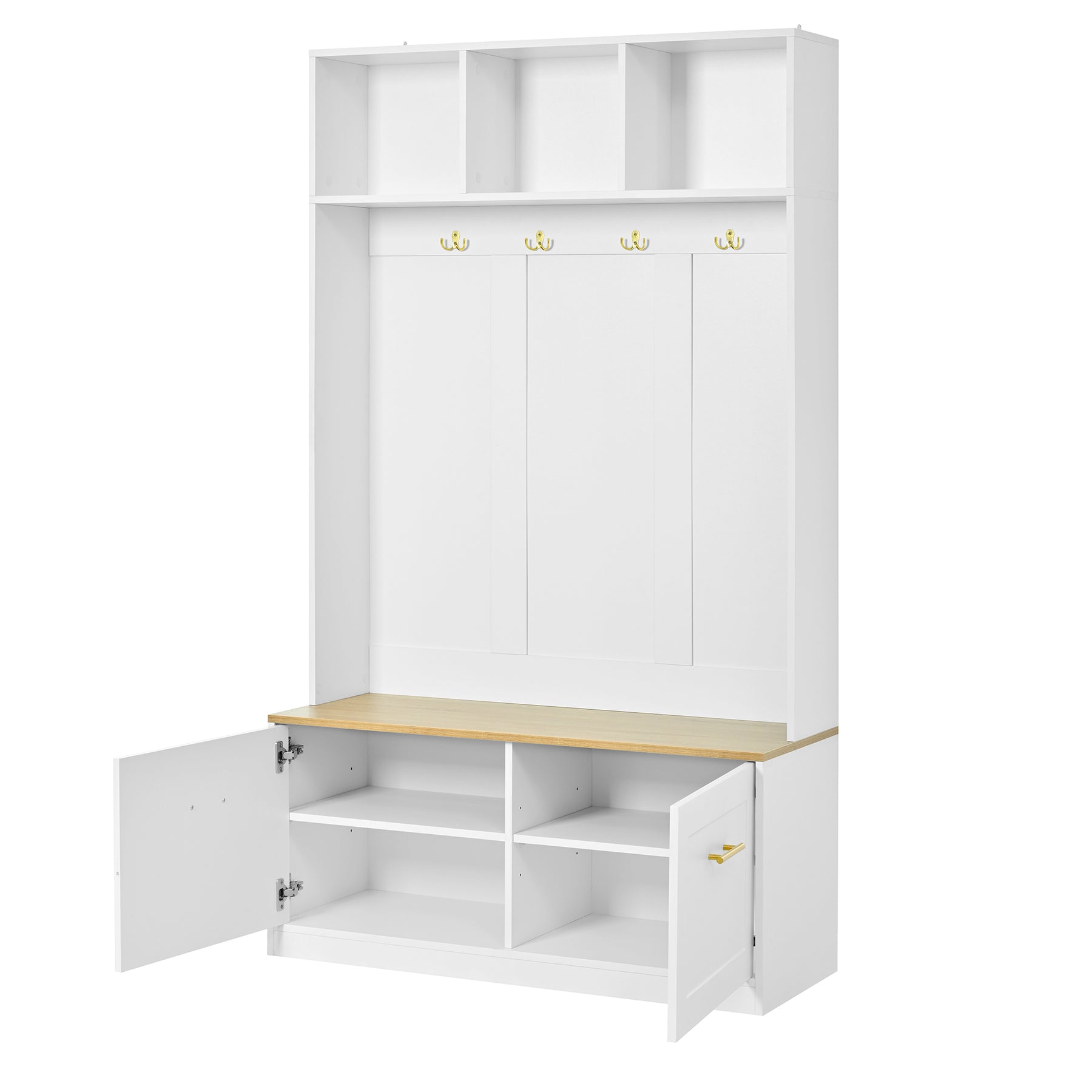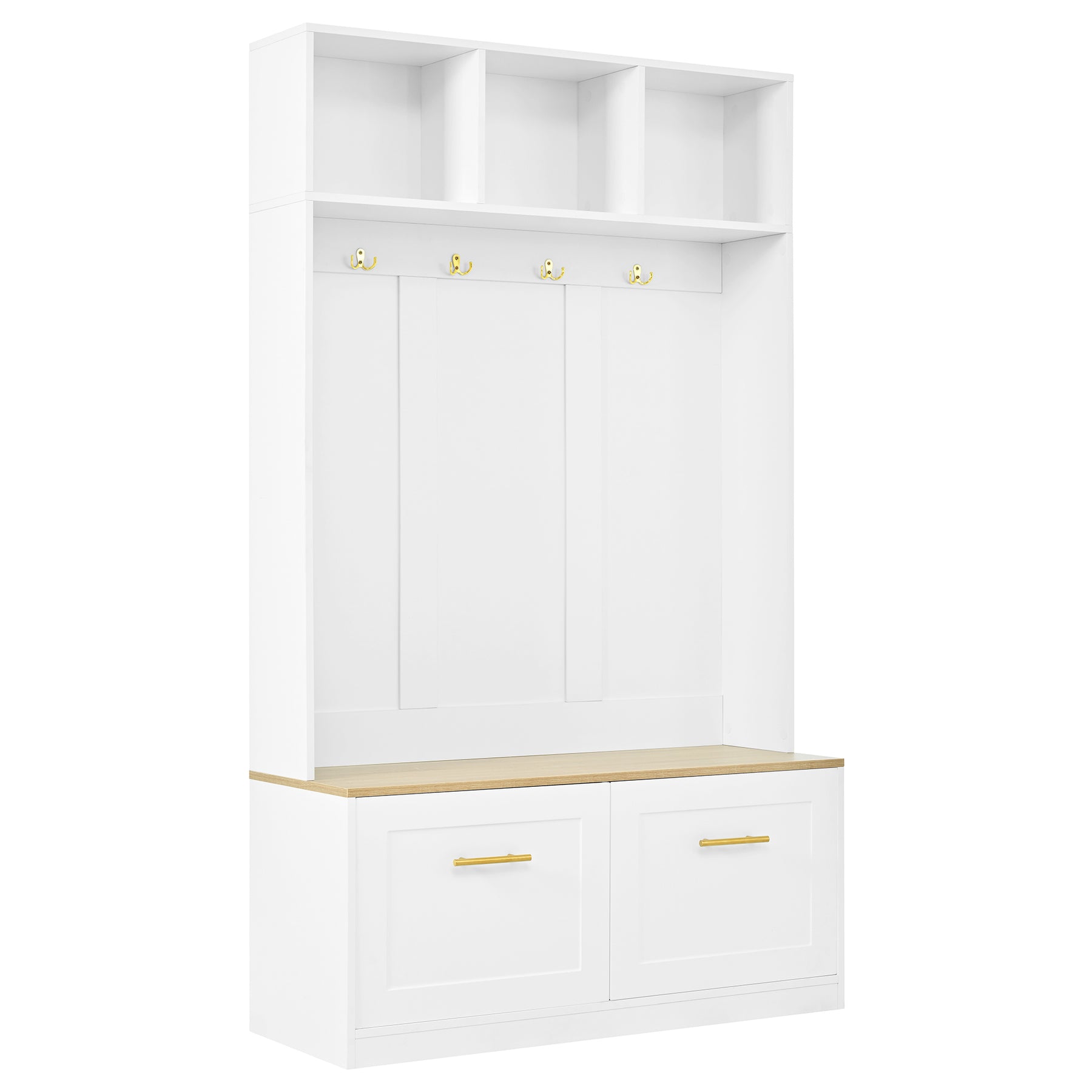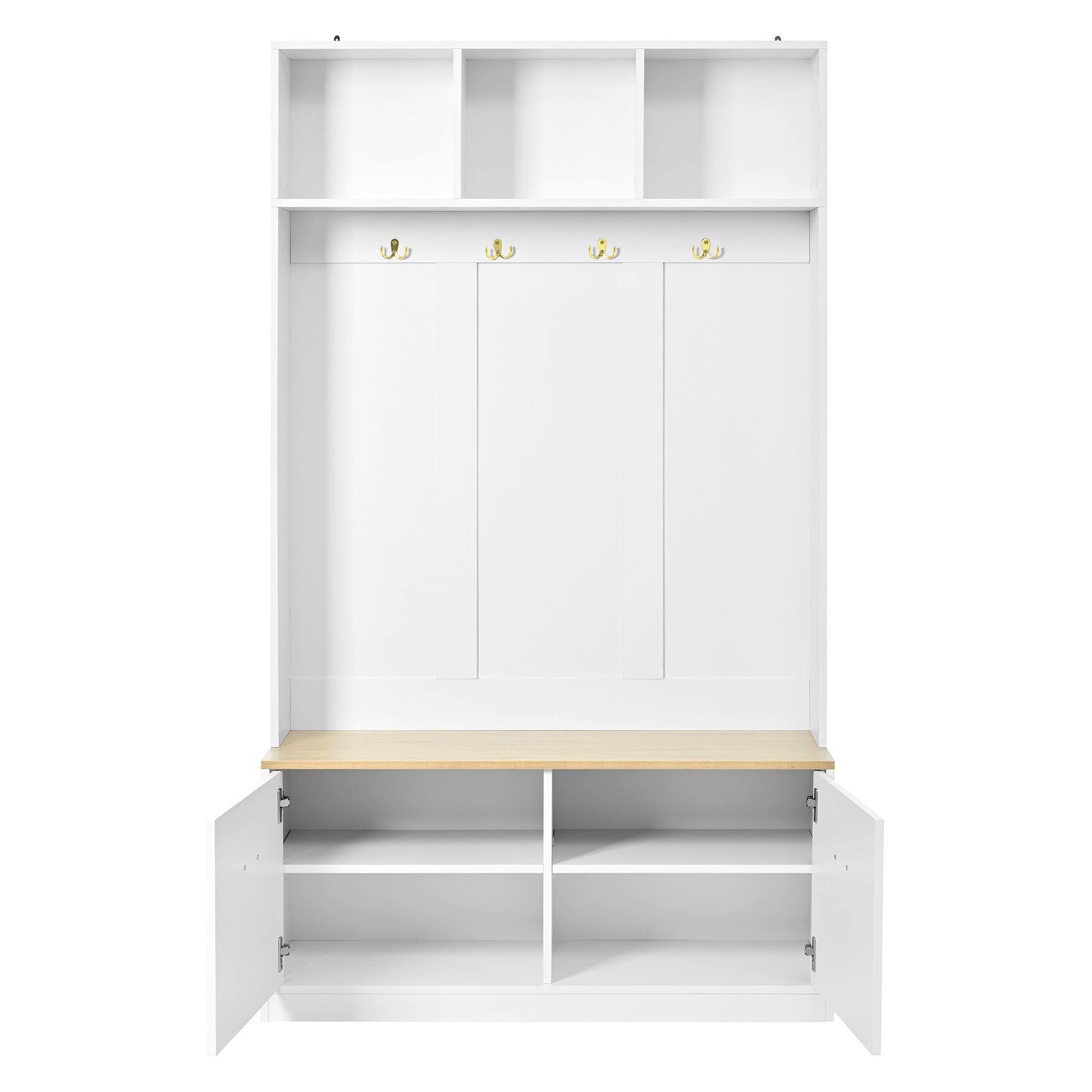 Vestiaire à l'entrée blanc compacte avec banc, rangement ouvert et 2 portes 105x40x180cm