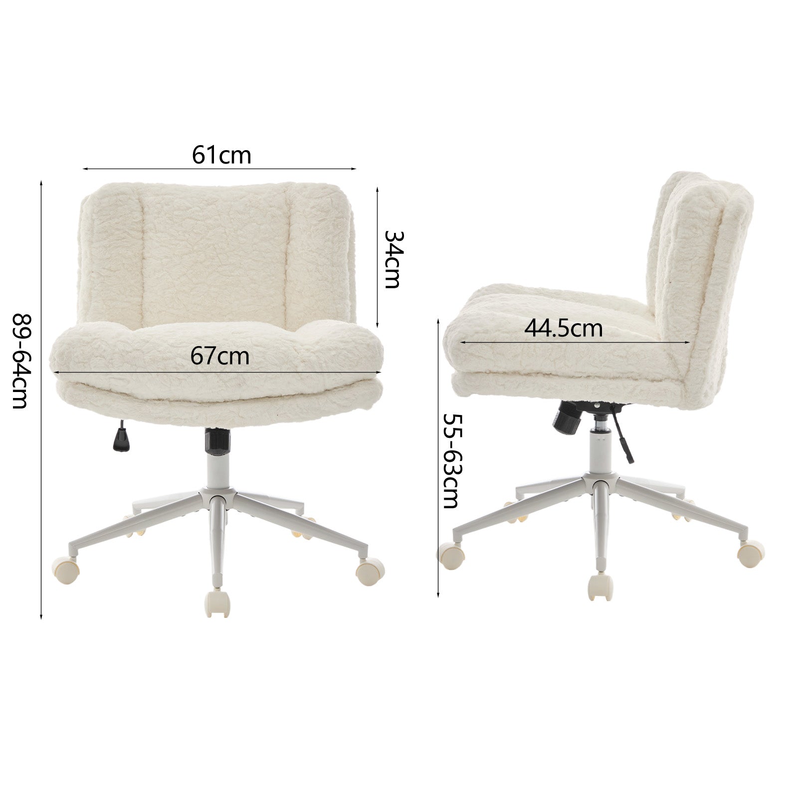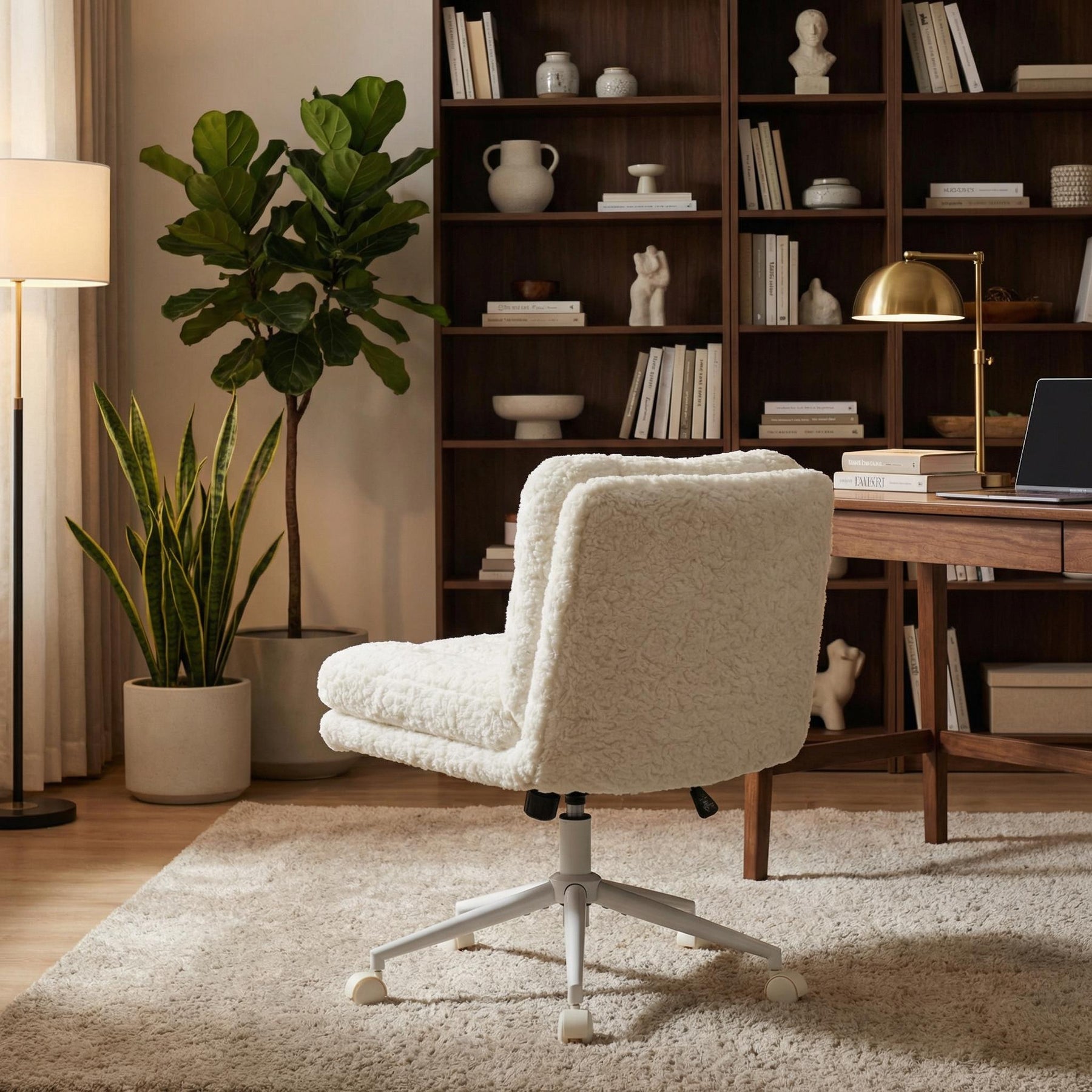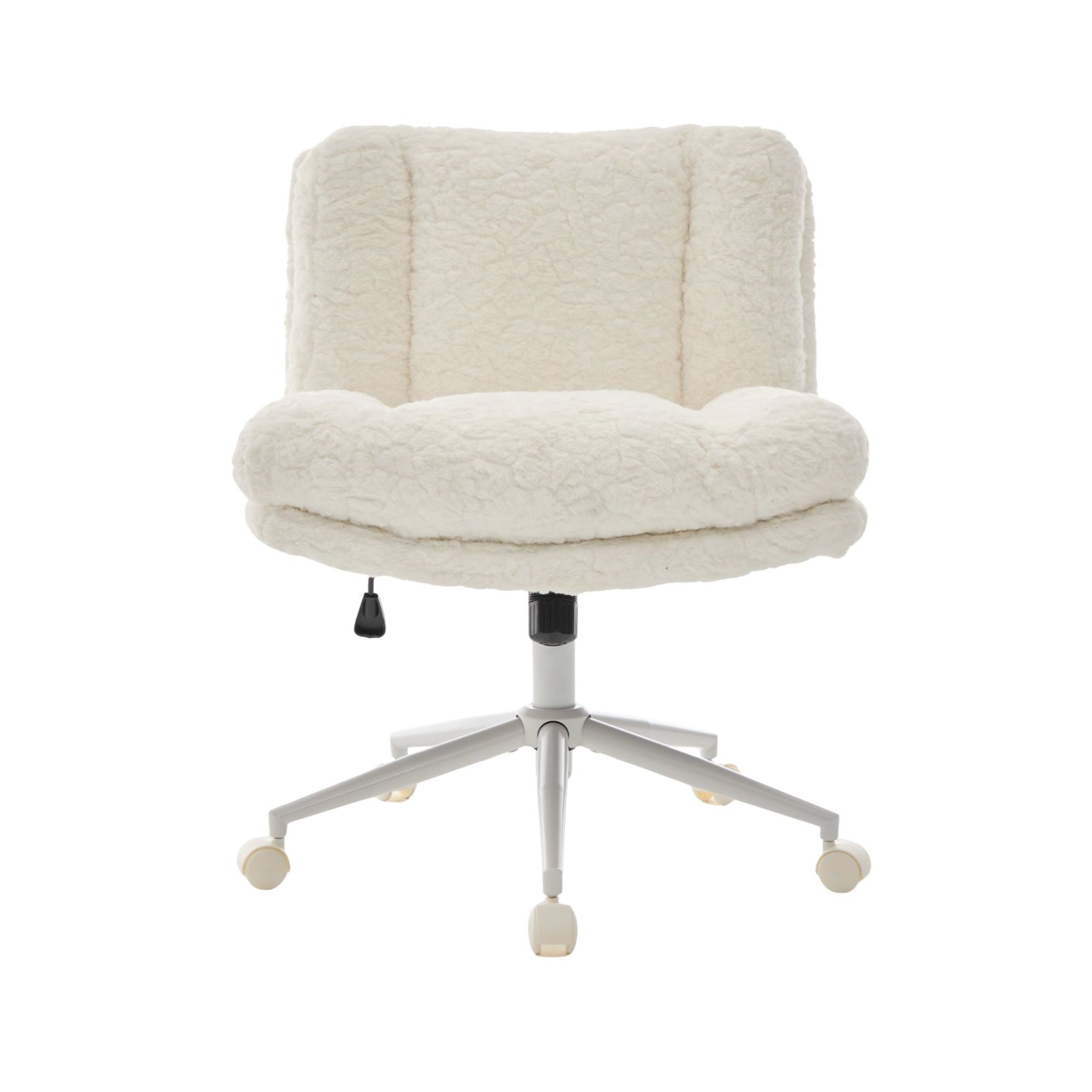 Chaise de bureau large fausse fourrure crème, pivotante et réglable, style cosy